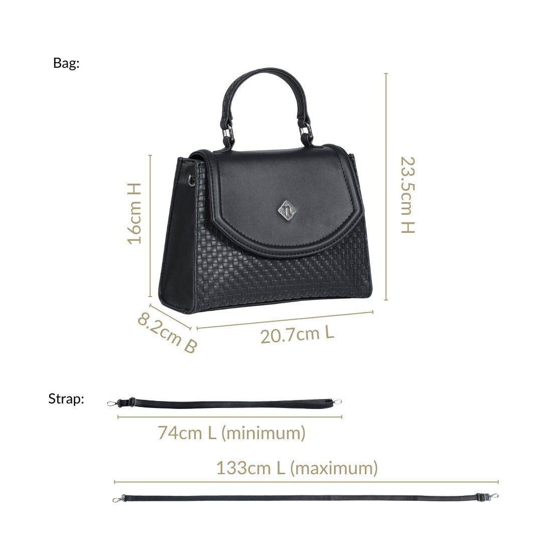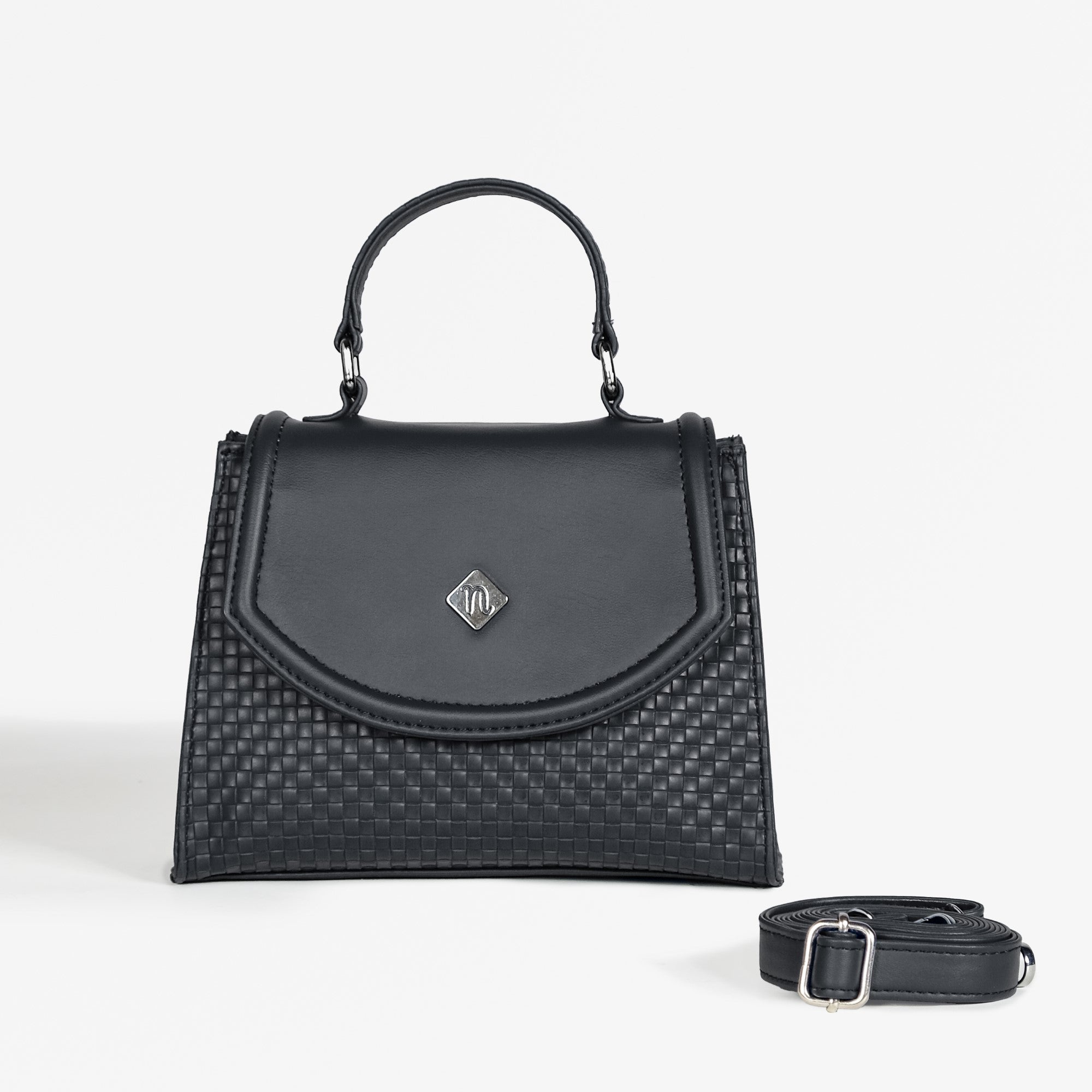 The Soi black handheld bag blends practical design with elegant details, offering a chic solution for both everyday use and special occasions. Crafted with the finest materials, it showcases a unique, textured weave that stands out effortlessly.