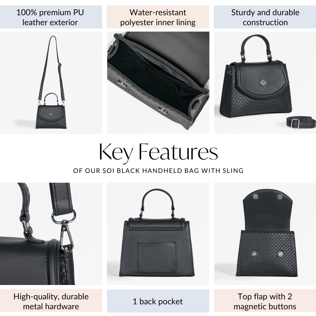 Nestyle: Pair the Soi black handbag with a sleek blazer and tailored pants for a sophisticated office look, or team it with a casual sweater and jeans for a chic weekend outing.