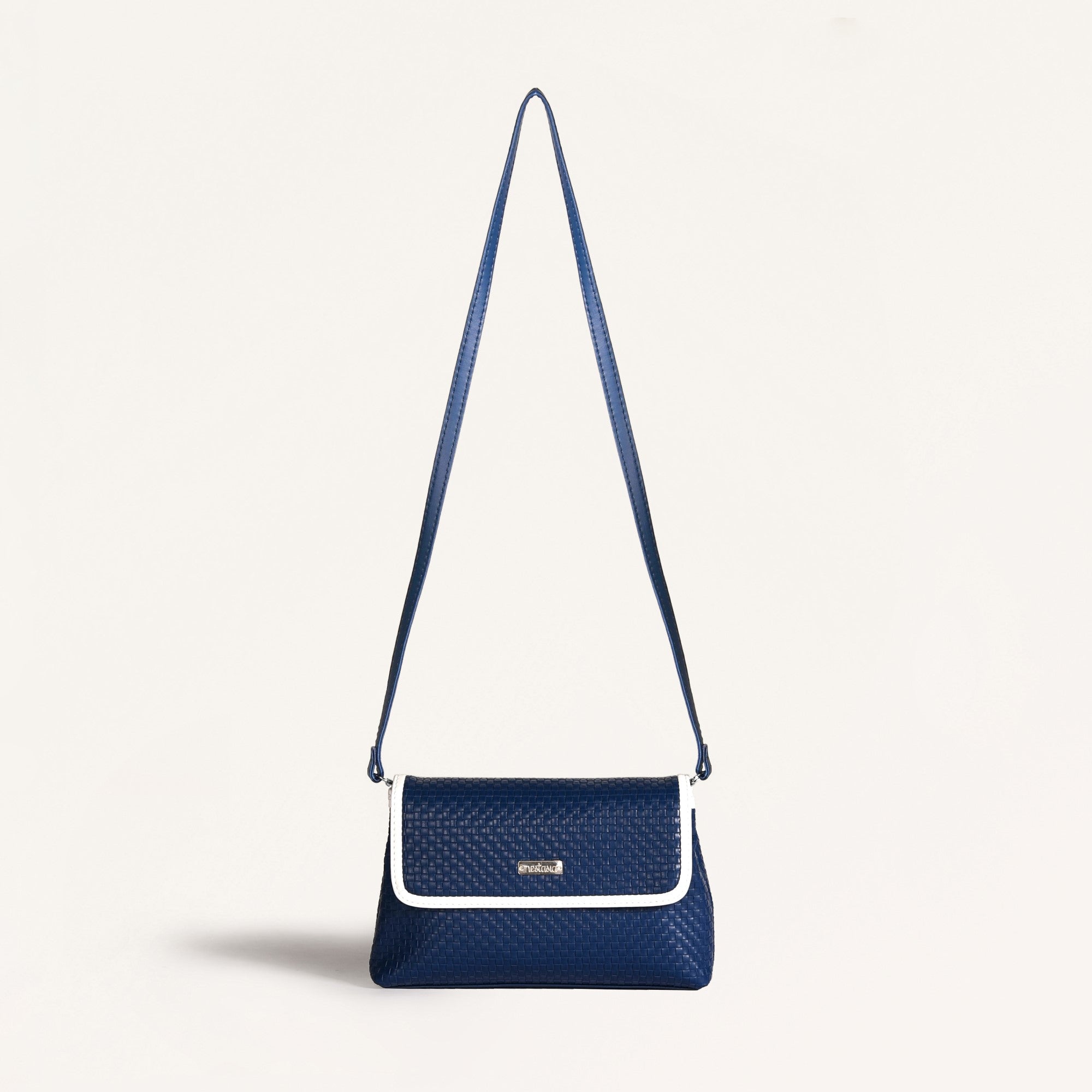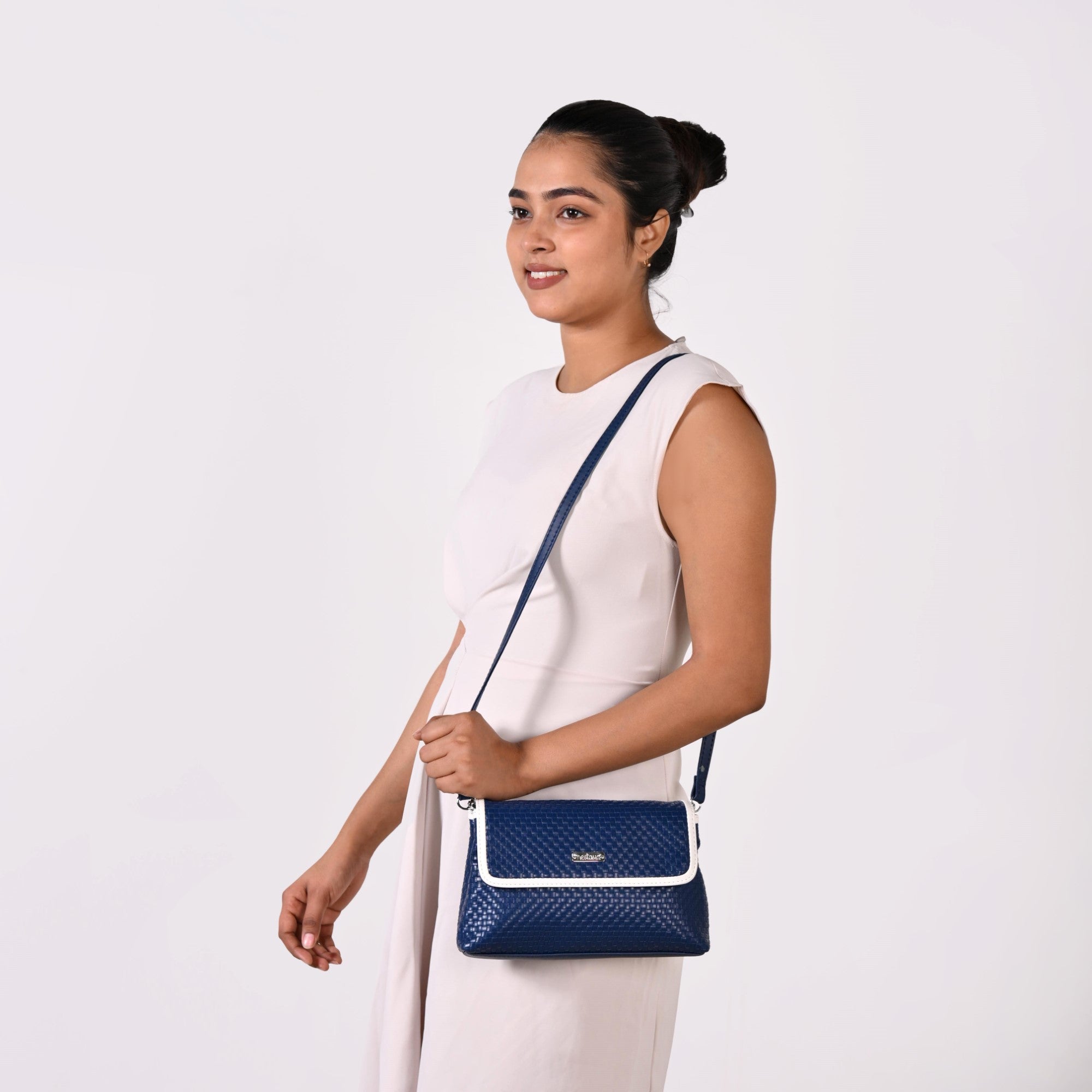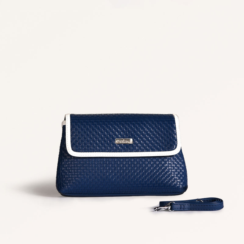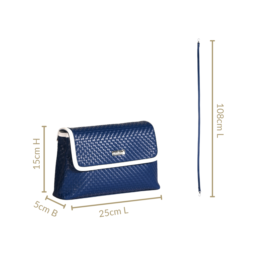 The Soi Lattice sling bag clutch in navy blue is a stylish statement piece that brings a dash of sophistication and a touch of fun to your outfit. Crafted with premium PU leather, it seamlessly blends style and function, making it the perfect accessory for any occasion.