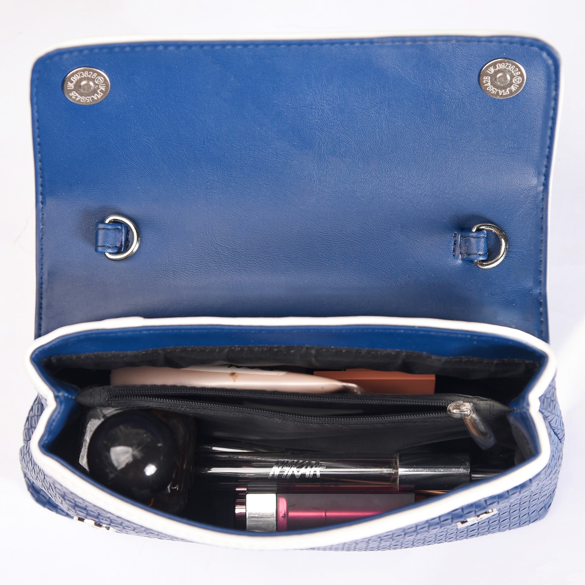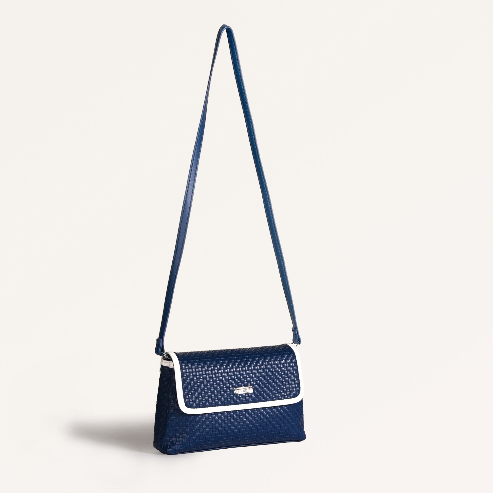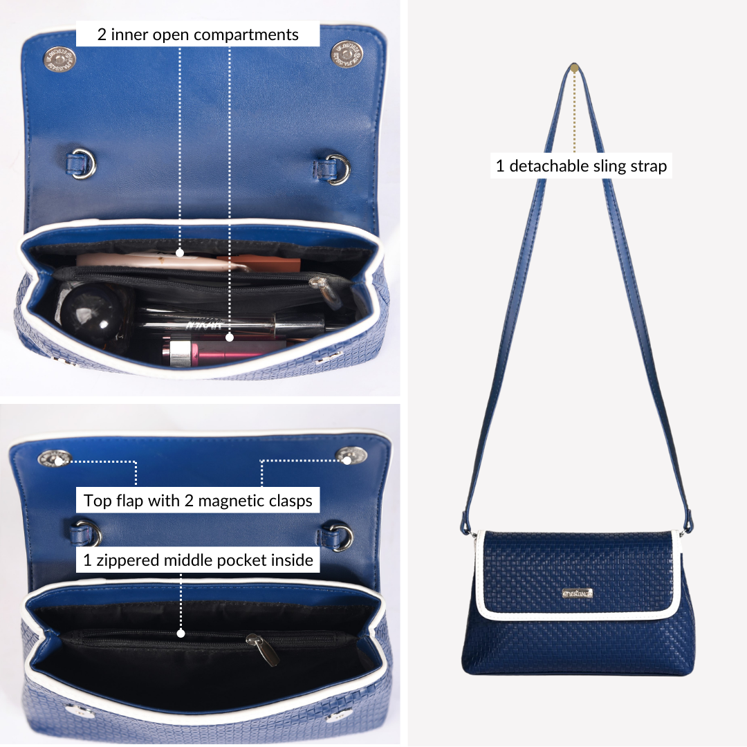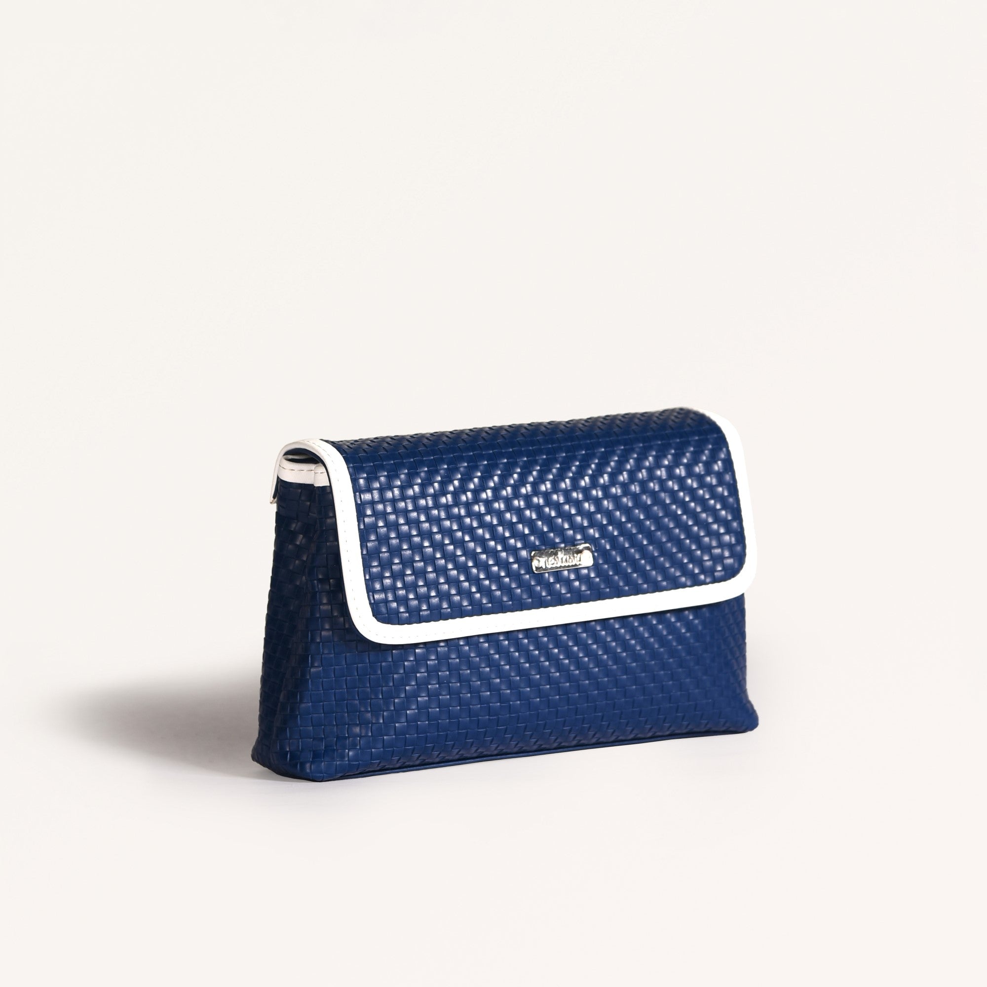 The Soi Lattice sling bag clutch in navy blue is a stylish statement piece that brings a dash of sophistication and a touch of fun to your outfit. Crafted with premium PU leather, it seamlessly blends style and function, making it the perfect accessory for any occasion.