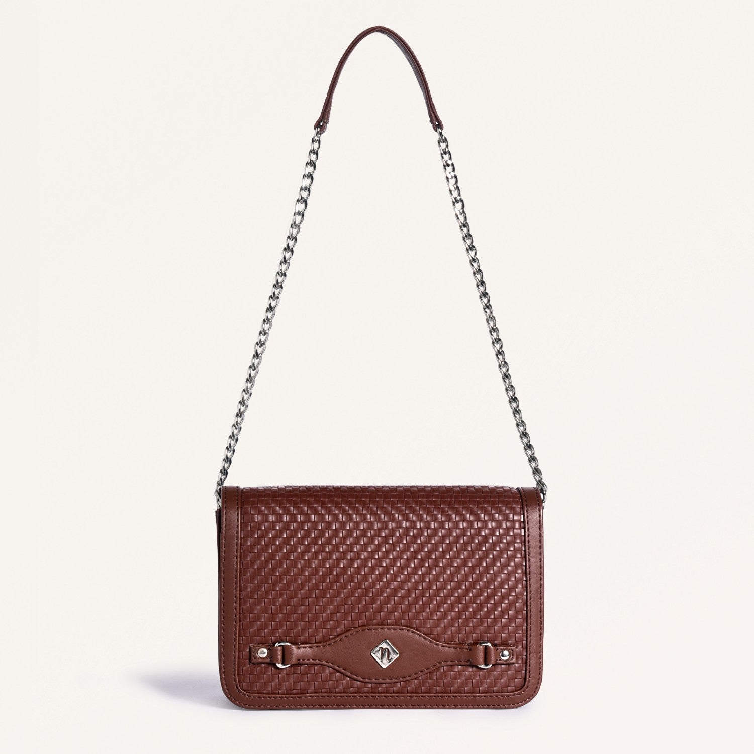 Design: Made from the finest quality PU leather, the Soi Tresse Menue Sling Bag effortlessly combines sophistication with everyday practicality. Its sleek brown hue and intricate Intrecciato weave create a luxurious texture that stands out, while the polished silver metal accents and horse-bit detail add an equestrian-inspired elegance.