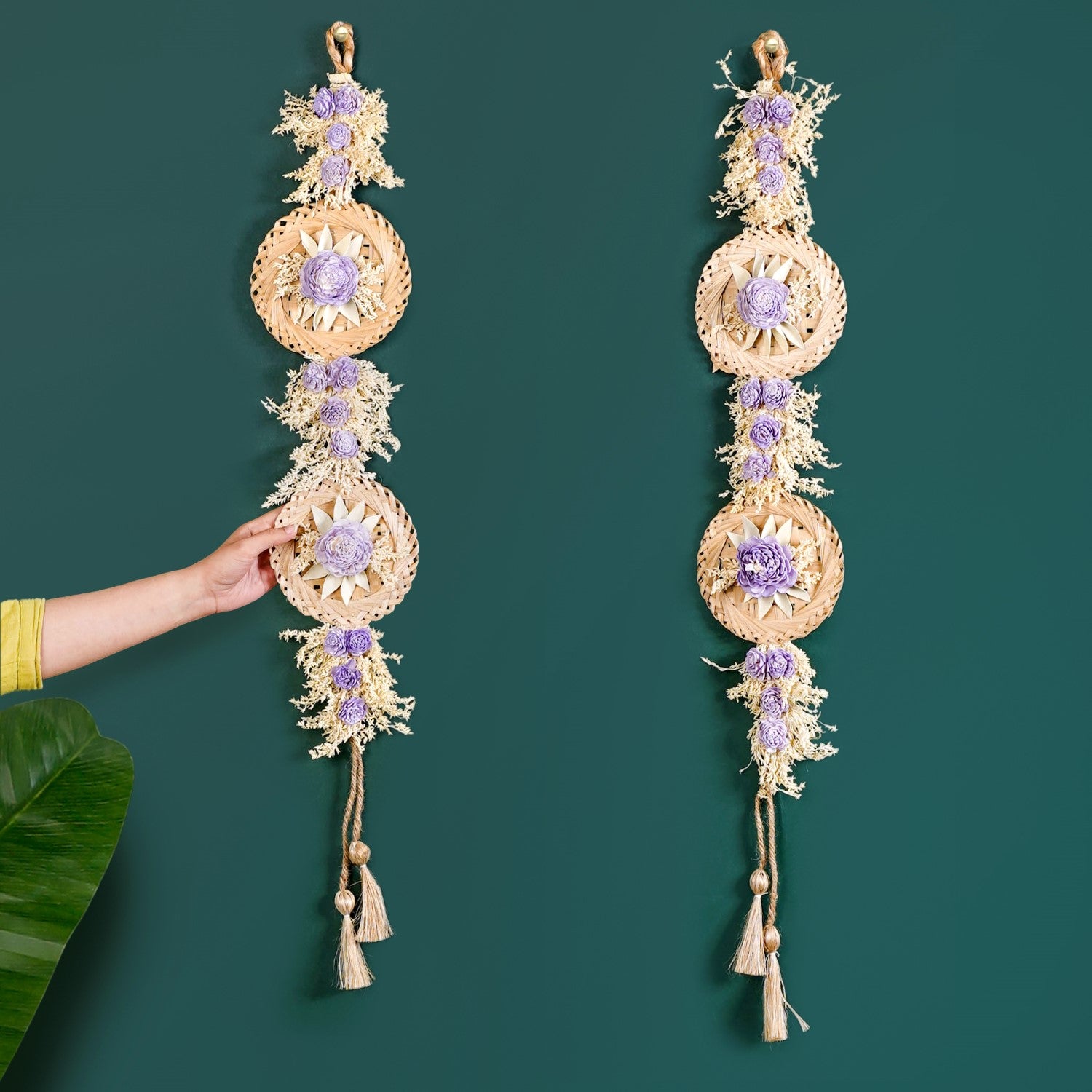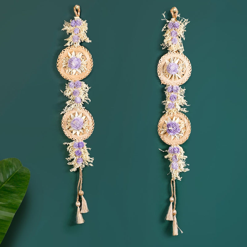 Unveil a statement of serene sophistication with this handmade, sustainable wall decor set. This exquisite jute wall hanging, adorned with soft lavender sola flowers, infuses your home with calm, natural beauty.
