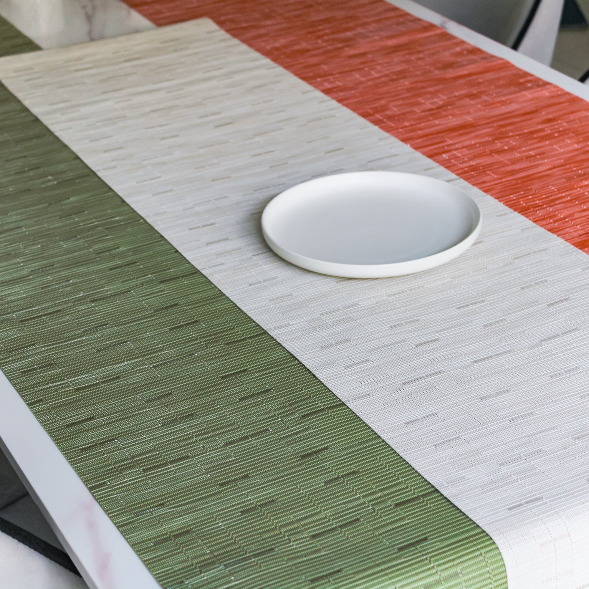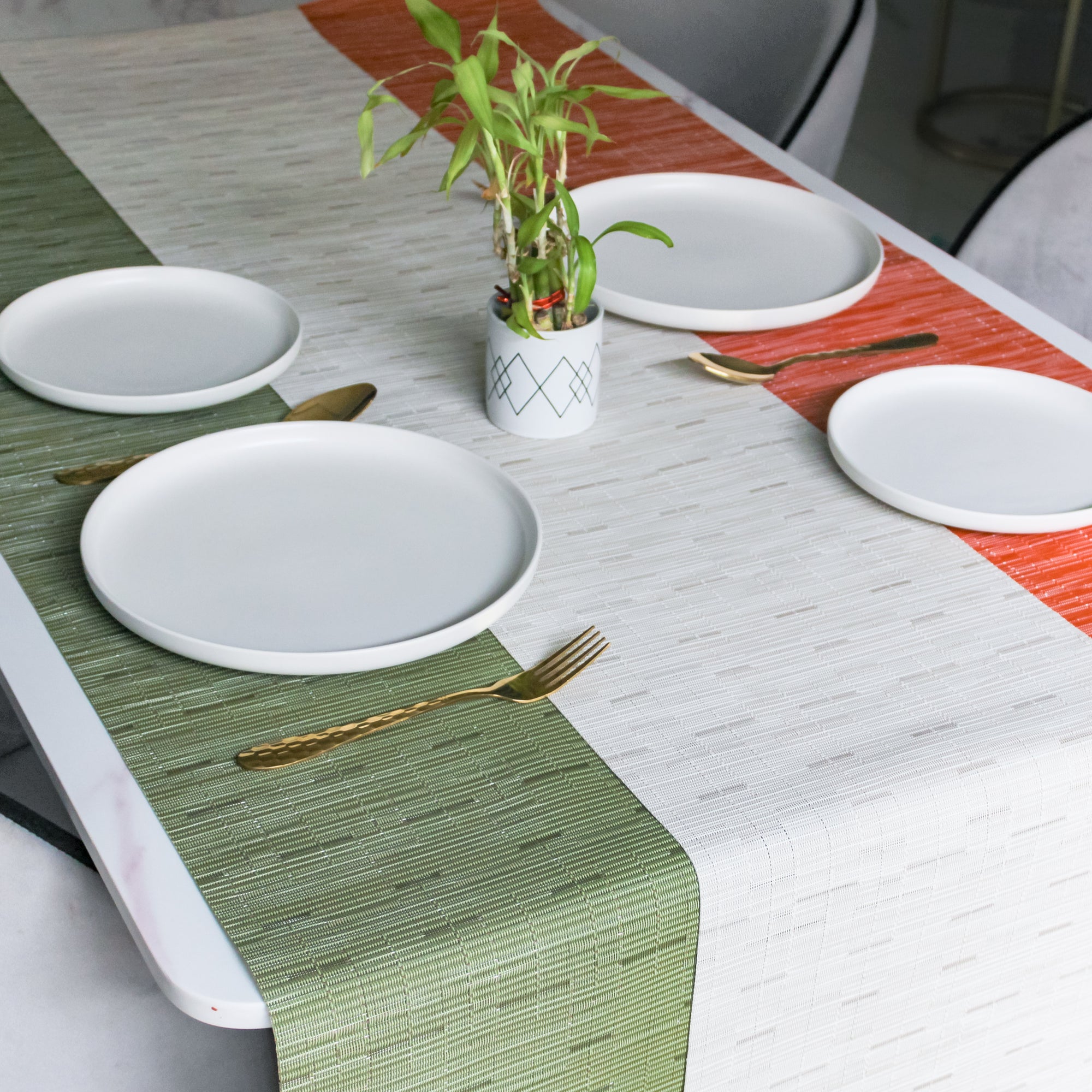 The exquisite solid colored table runner will not only protect the dining table from heat, scratches, and stains, but will also liven up the dining room's decor settings. The dining table runner comes in a variety of colours and is extremely simple to set, pick, clean, and store. Organise the dinner table using solid coloured centre runners to give the table a sense of order and structure. Pair similar or contrasting coloured placemats with the runner to make the table set up look chic and sophisticated.