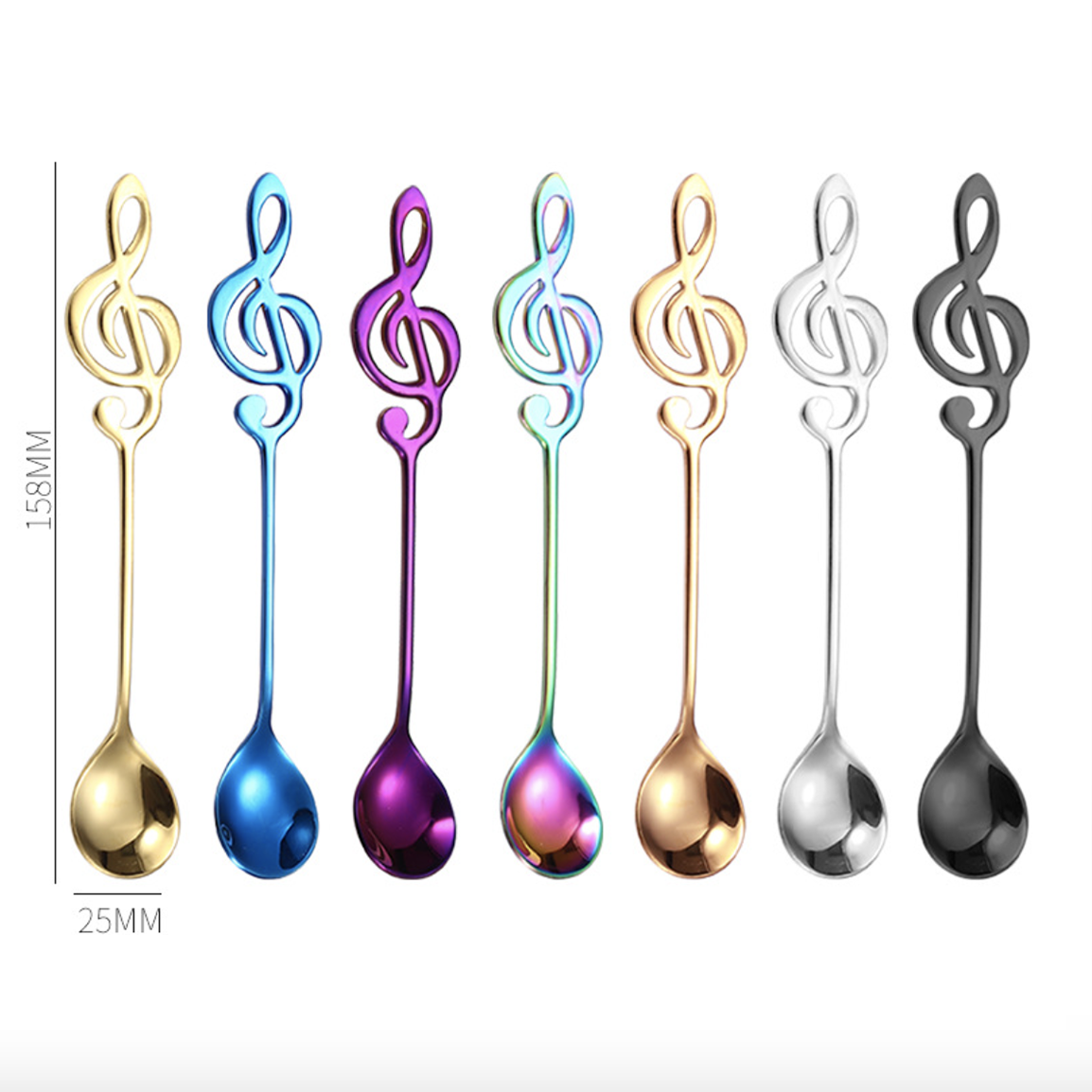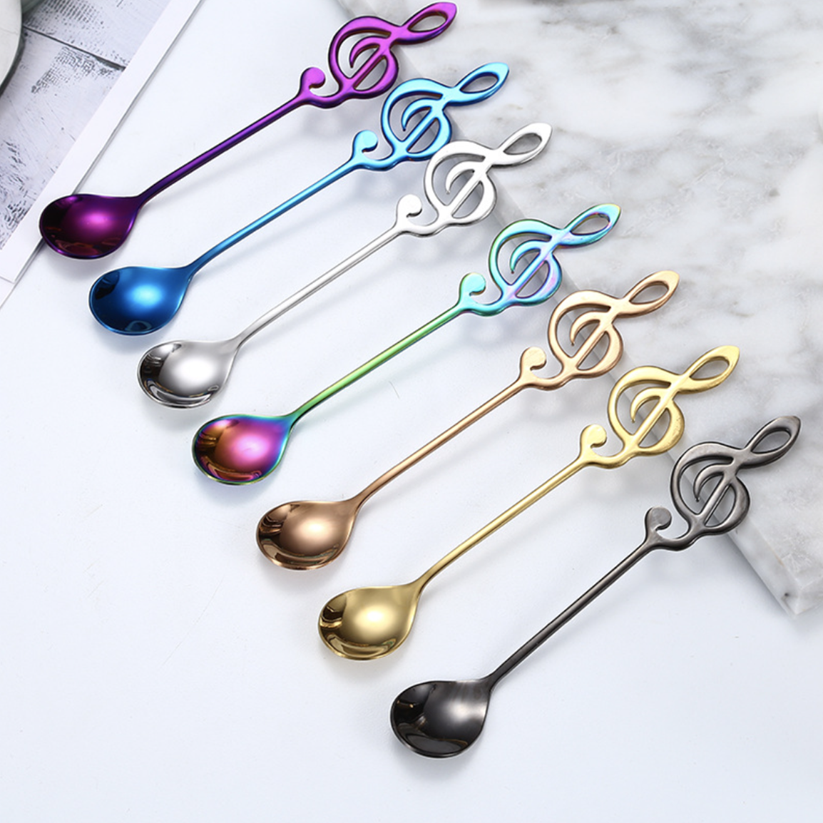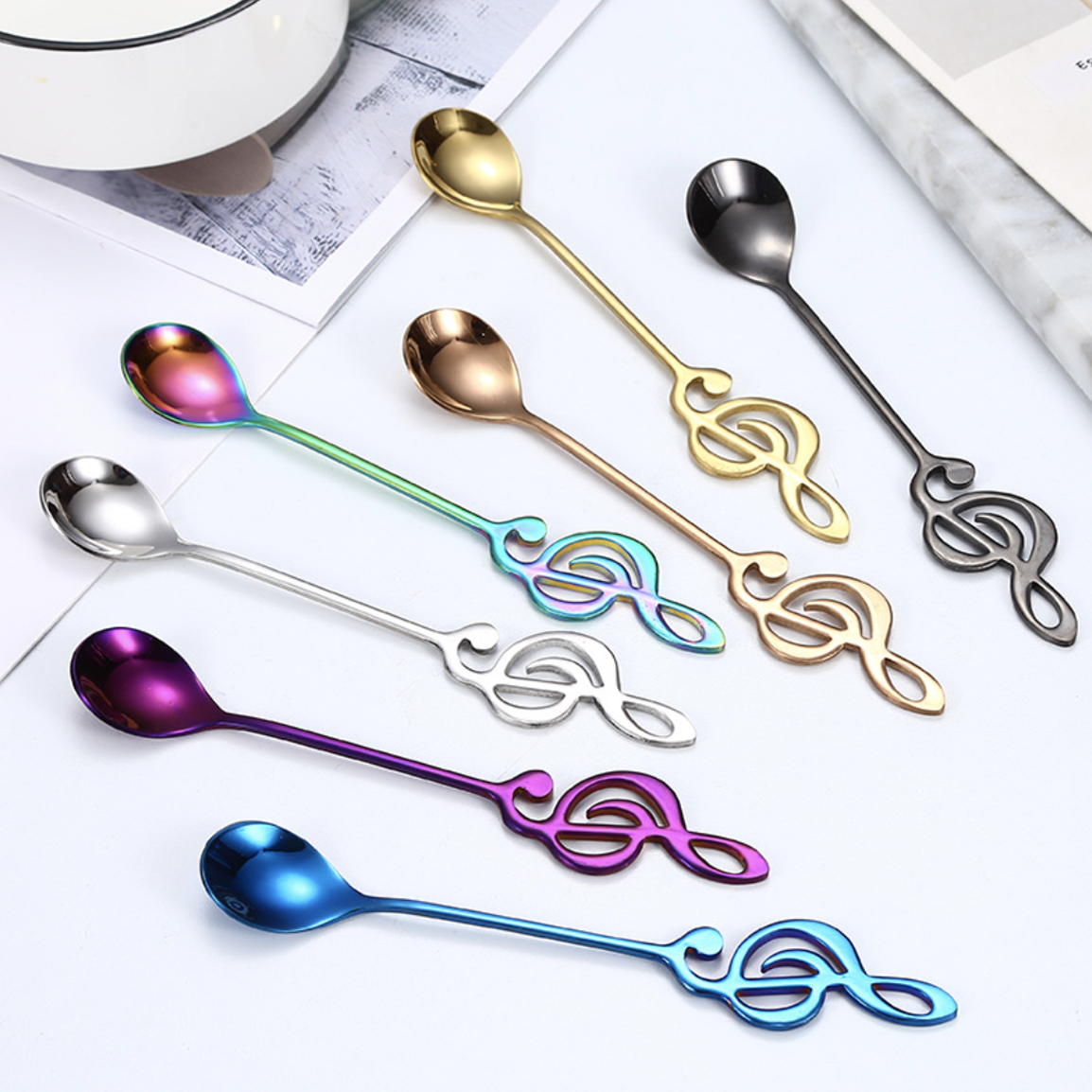 The spoon with a musical symbol on the head is made of stainless steel. Corrosion-resistant and durable, the spoon is reusable, practical, and eco-friendly for everyday use or special occasions. The stainless steel stir spoons are suitable for almost any size cup. They make the perfect addition for the bar, home, kitchen, cafe, and restaurant. The design of the spoon is luxurious and elegant, and the polish is smooth.