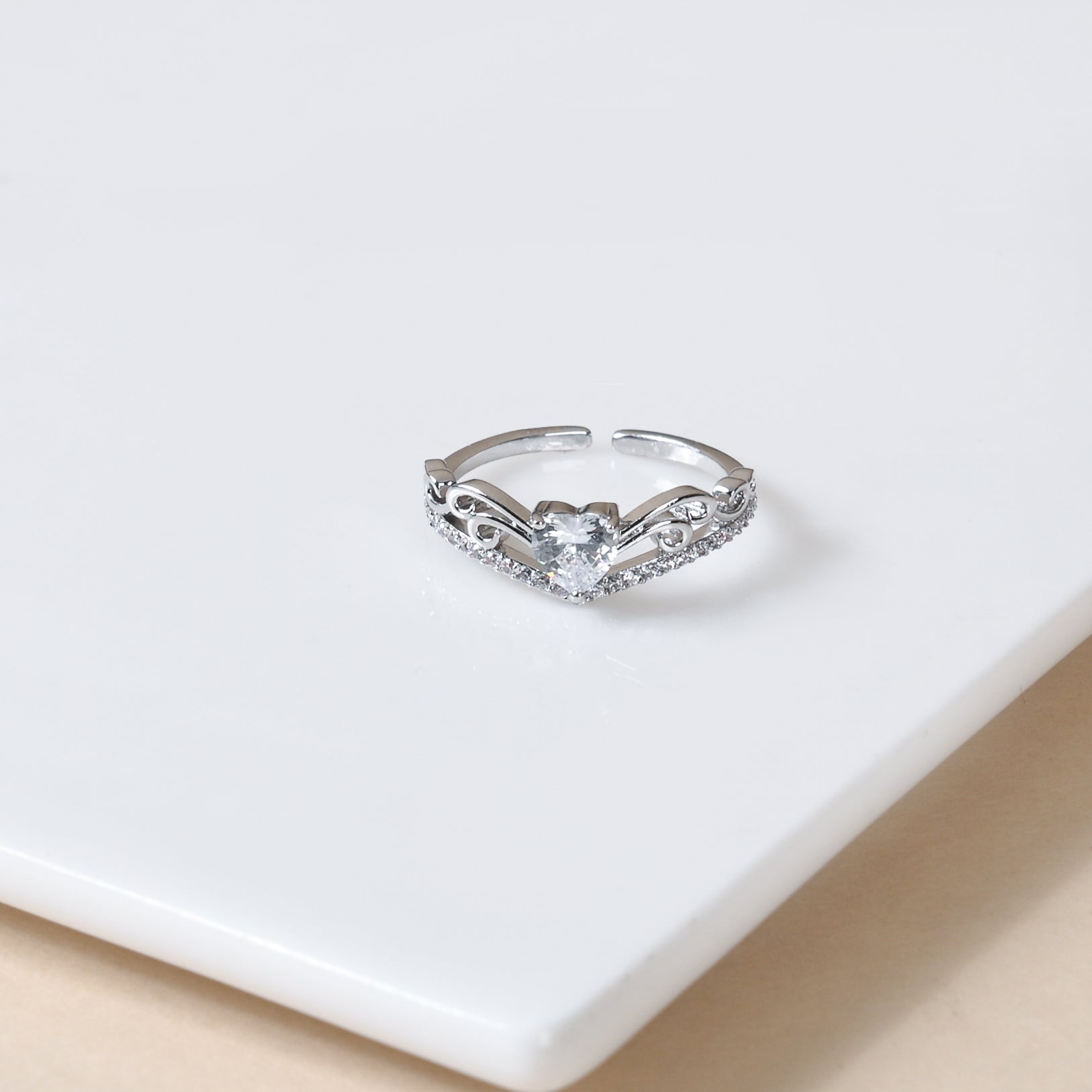 A ring fit for royalty! This silver crown ring is a masterpiece of elegance, featuring intricate silver patterns shaped like a crown. At its center, a stunning heart-shaped stone sparkles brilliantly, framed by a delicate silver border. Whether you're embracing your inner queen or gifting a loved one a touch of royal charm, this ring is the perfect blend of sophistication and romance.