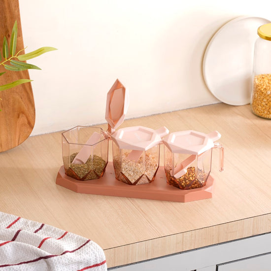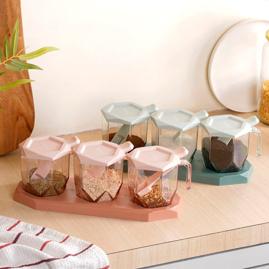 Elevate your culinary experience with our exquisite set of 3 spice containers, a pinnacle of sophistication and functionality. Crafted with precision using non-toxic, BPA-free materials, these small spice containers ensure the utmost purity for your prized spices. The seamless blend of an elegant design, easy-grab handle, and flip-top lid offers unmatched convenience. Complete with a spoon for precision seasoning and labels for effortless identification, these spice jars redefine kitchen organisation. Nestled within a robust base tray, their portability and chic aesthetics make them an unrivalled choice.