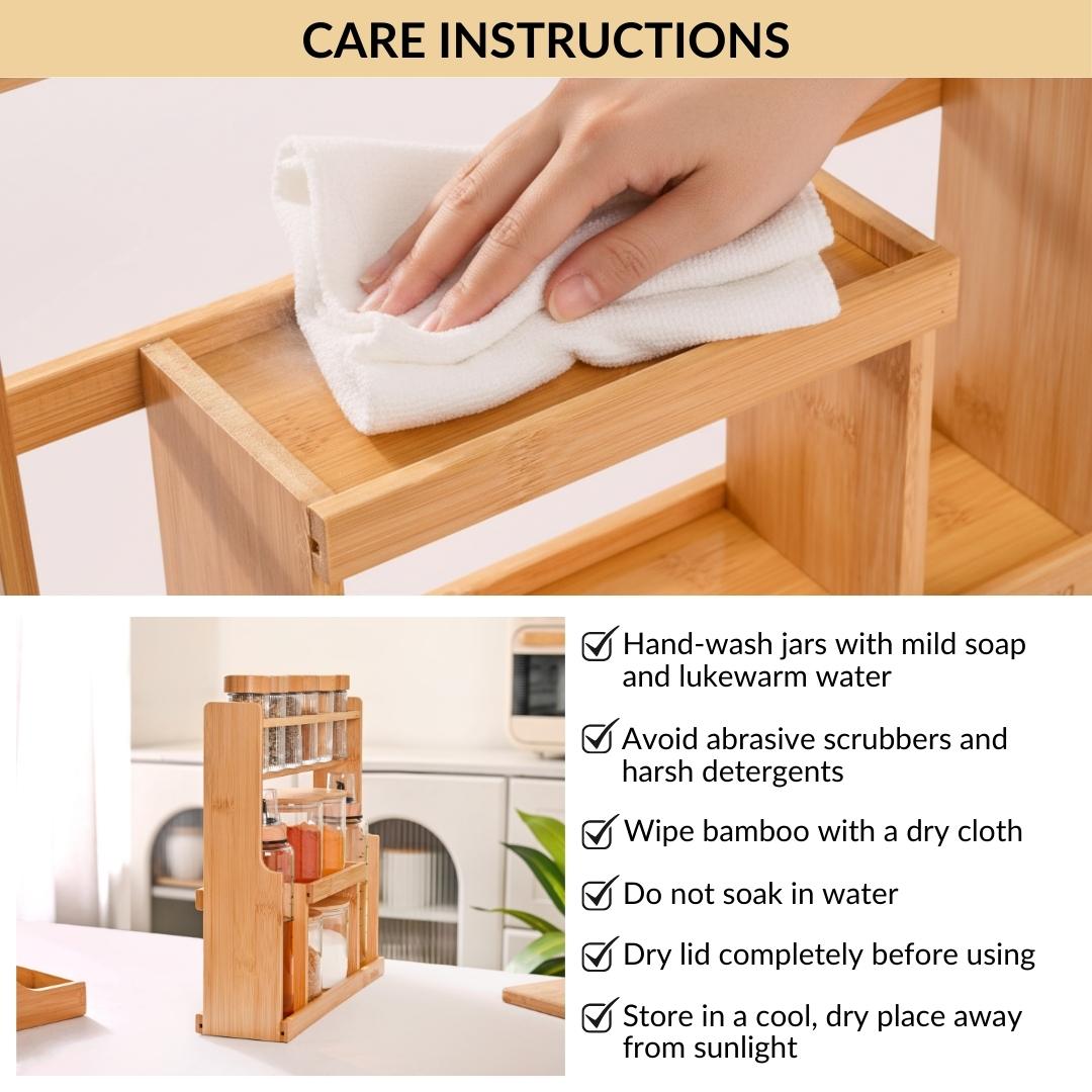 **Note: Make sure to completely dry the stand and jars after washing to maintain quality.