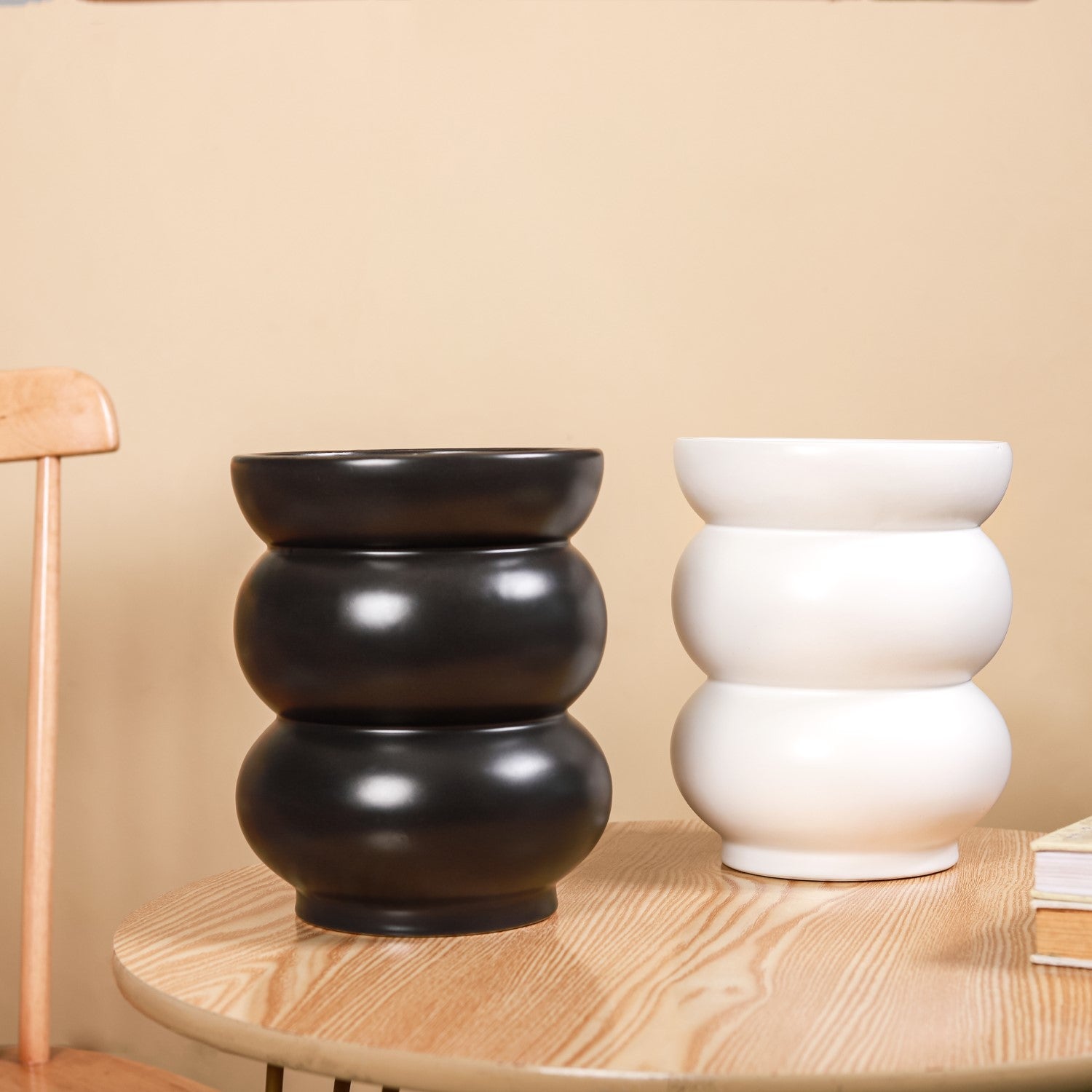 The spiral ceramic flower vase in two contrasting shades of black and white will look ravishing when placed as a pair on either side of a console table or television stand or entrance door to the hallway with fresh indoor plants. Lift up the mood of dull and boring shelves by placing a bunch of fresh flowers or any ornamental plant in the vase.