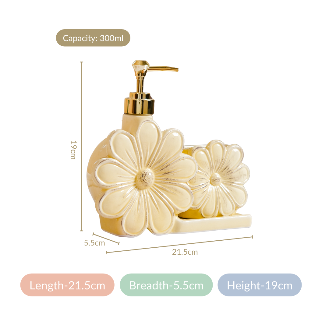 Absolutely! Our soap dispenser is intentionally designed for hassle-free maintenance. The durable ceramic material ensures longevity, while the smooth gloss finish adds an extra layer of simplicity to the cleaning process. Just wipe the surface with a damp cloth, and it will maintain its elegant appearance. The inclusion of a basin to hold scrubbers provides added convenience, making it easier for you to keep both the dispenser and your bathroom essentials organized.