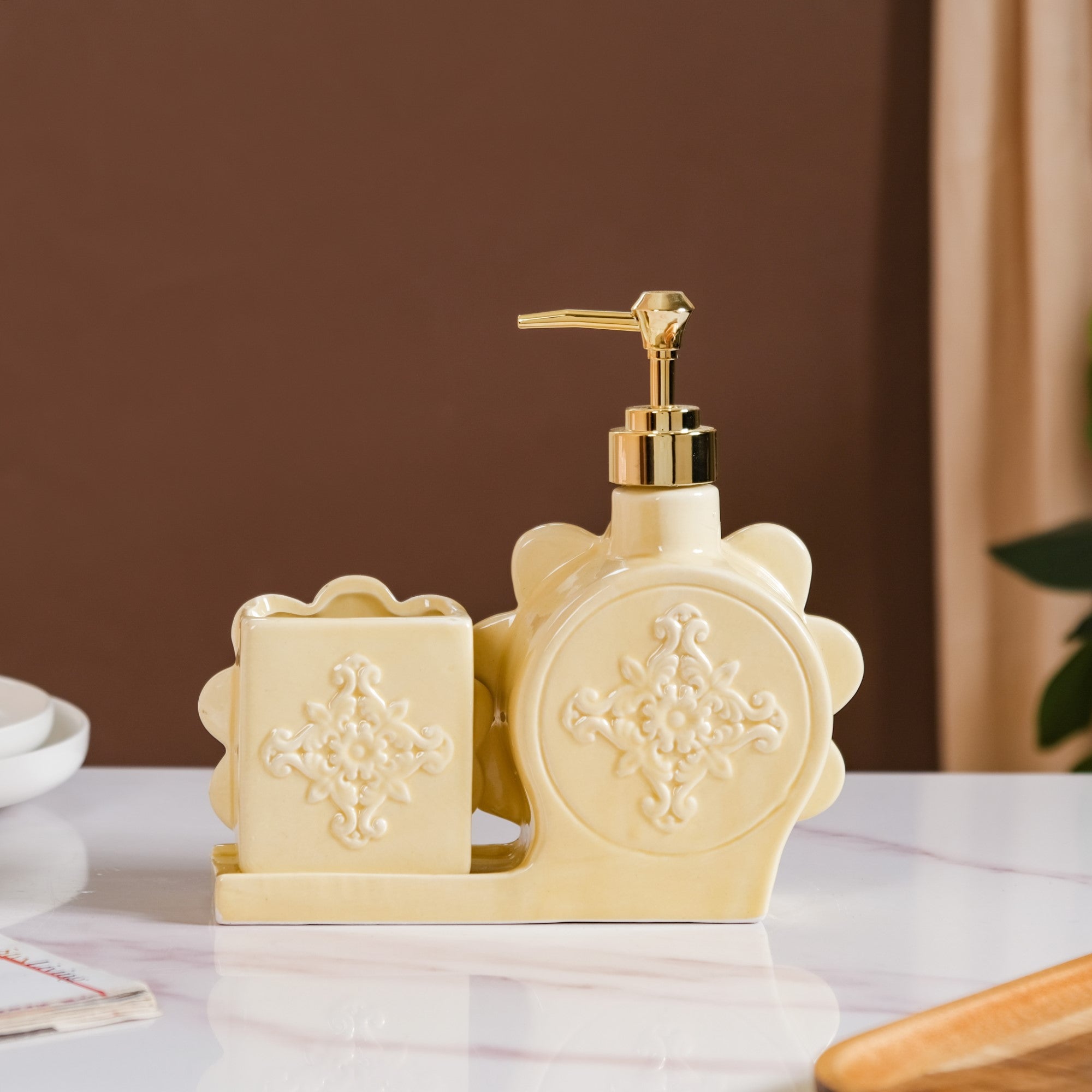 Discover a new level of refinement in your bathroom with our premium ceramic soap dispenser. It's not just a practical accessory; it's a statement of your commitment to quality, style, and an organized living space. Redefine your daily rituals with a touch of sophistication in every pump. Say goodbye to bathroom clutter. Our soap dispenser is purposefully designed to integrate seamlessly into your space, contributing to a clutter-free environment.