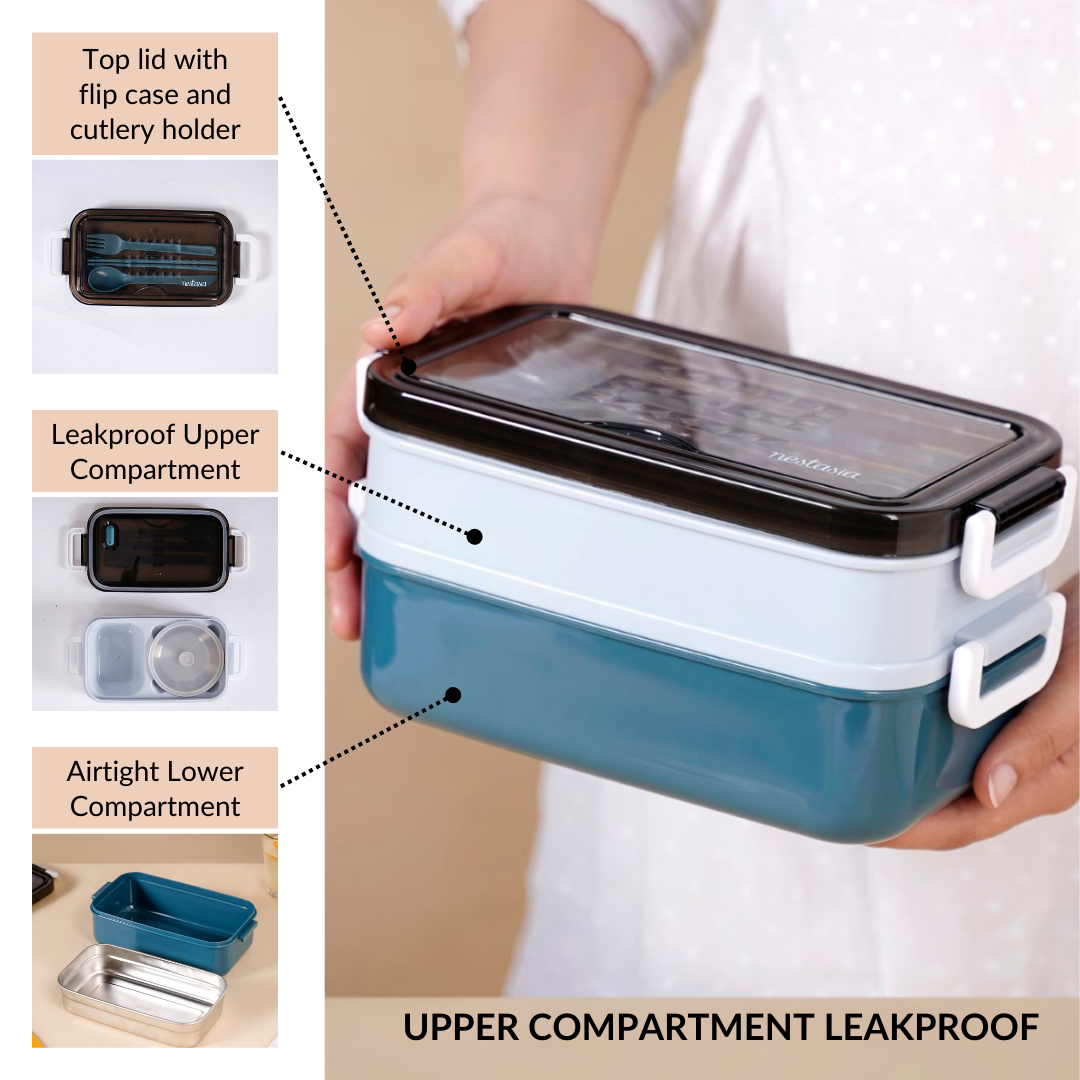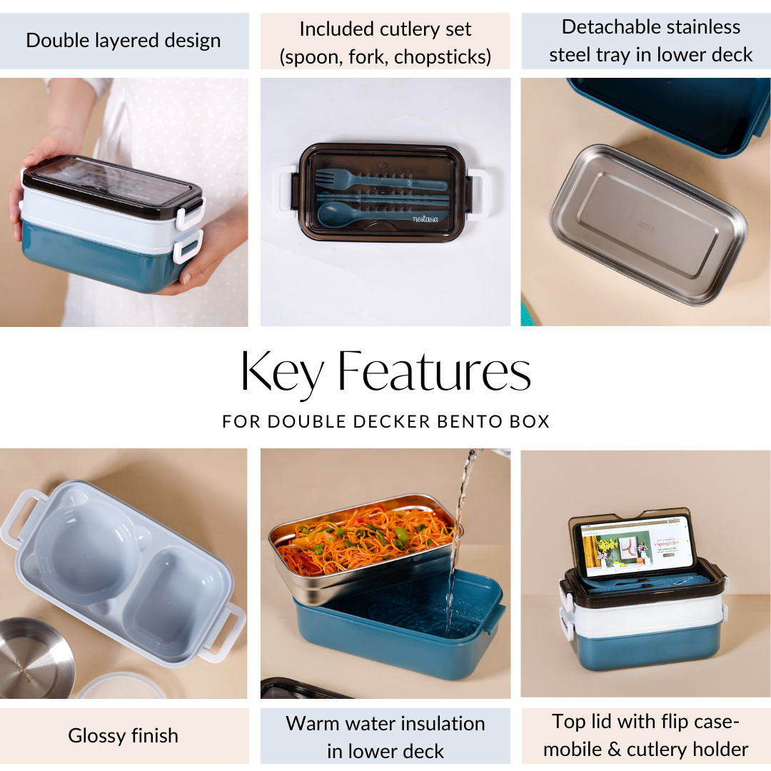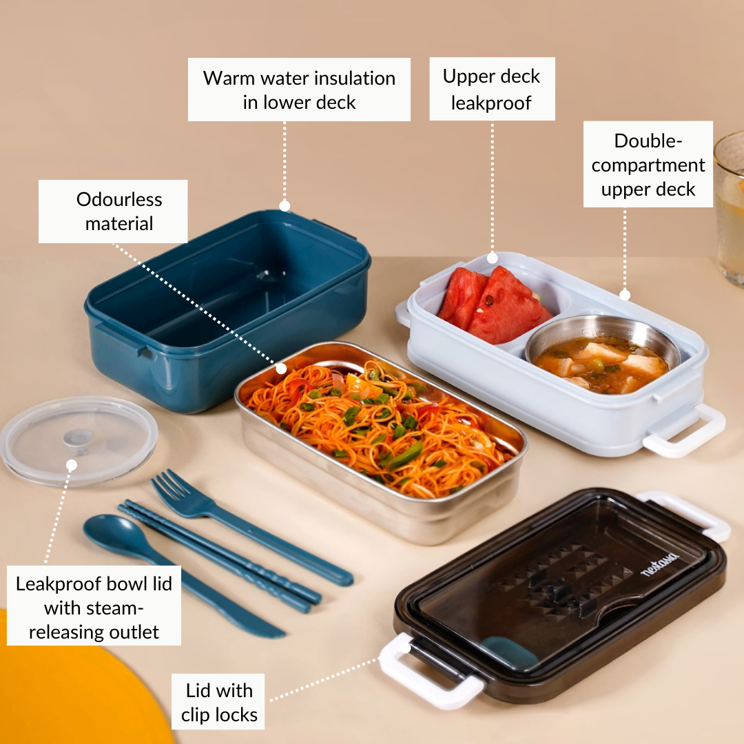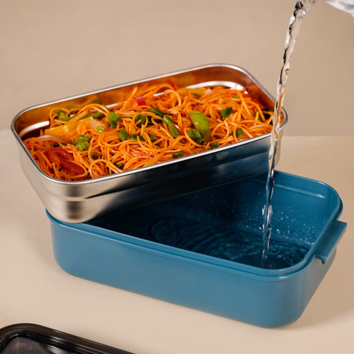 The double-decker lunch box is designed with versatility in mind. The stackable lunch boxes provide separate compartments, allowing you to pack a variety of dishes without any mixing of the flavours.