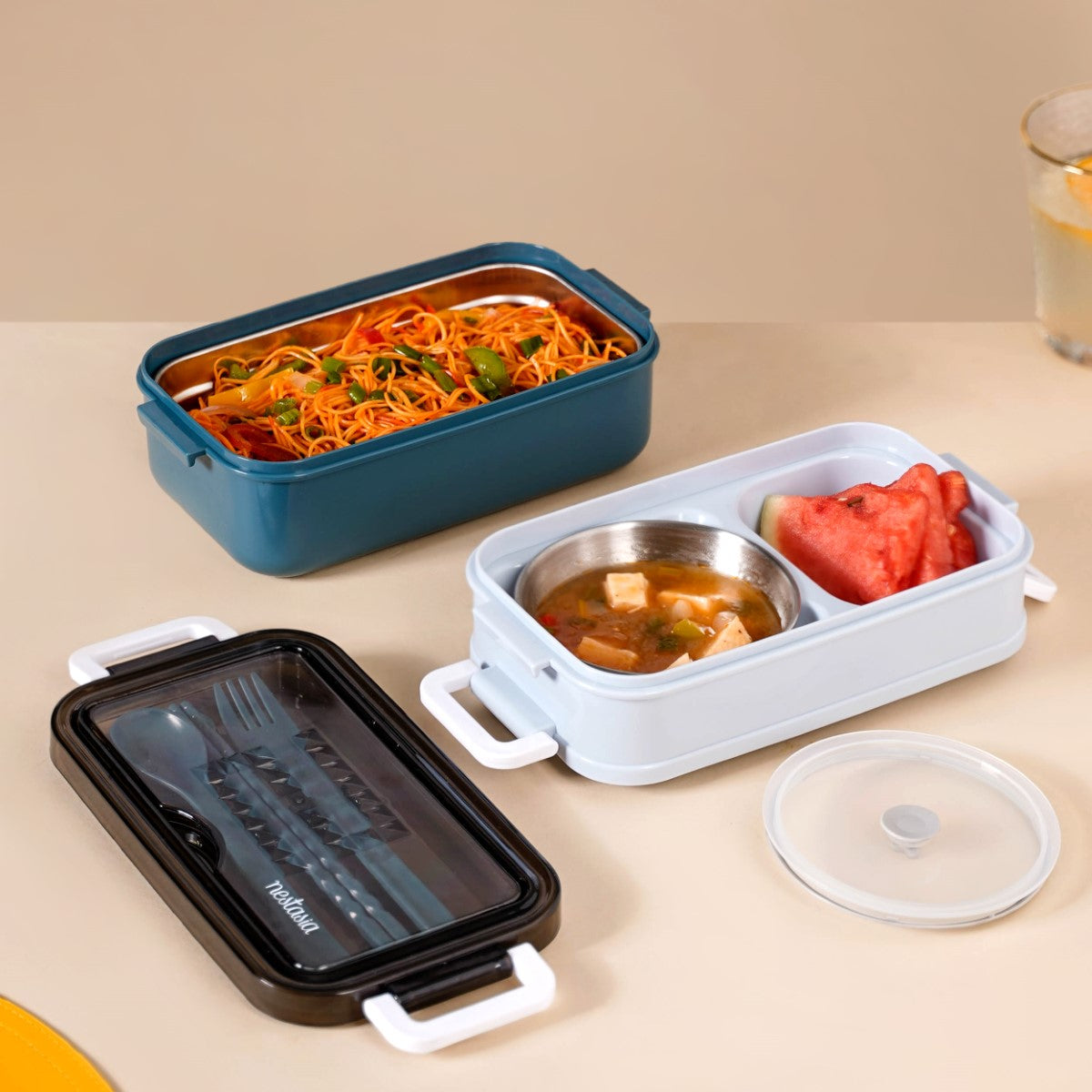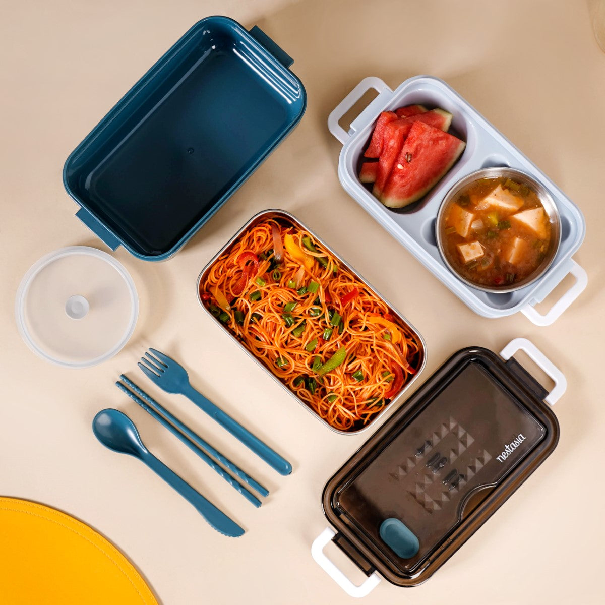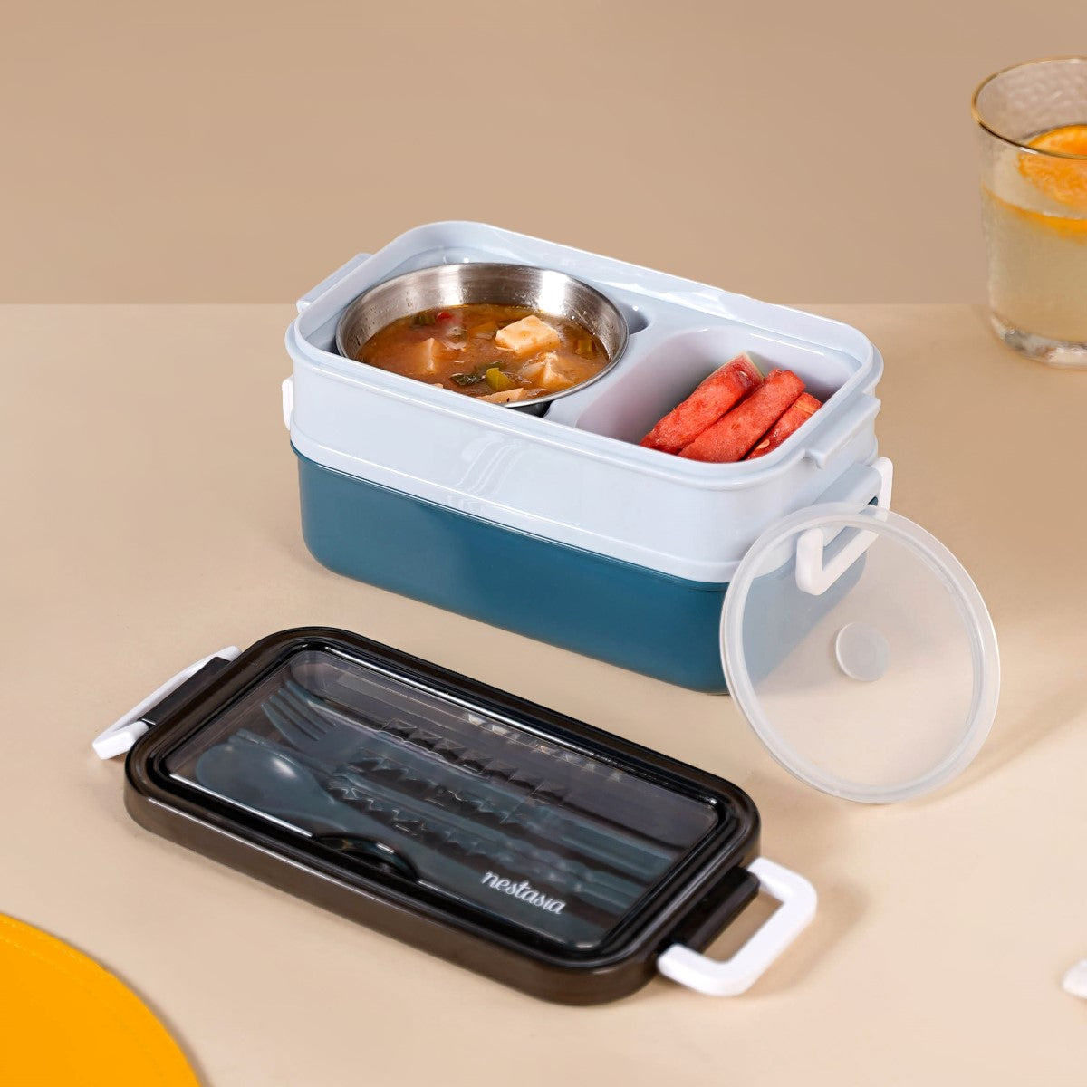 The double-decker lunch box is designed with versatility in mind. The stackable lunch boxes provide separate compartments, allowing you to pack a variety of dishes without any mixing of the flavours.
