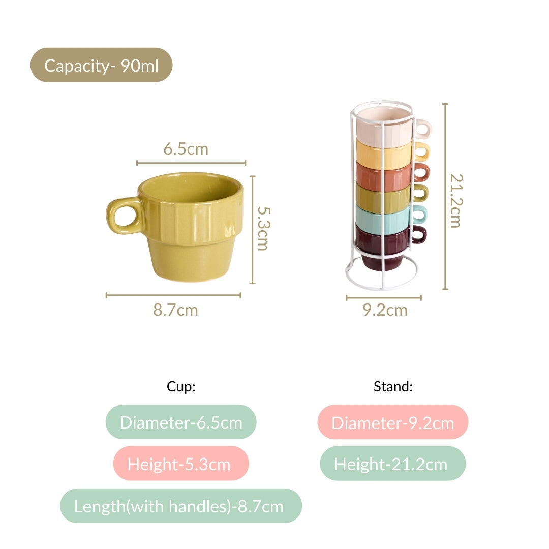 Stackable Mini Tea Cup Set Of 6 Kaori Sunset Hues 90ml