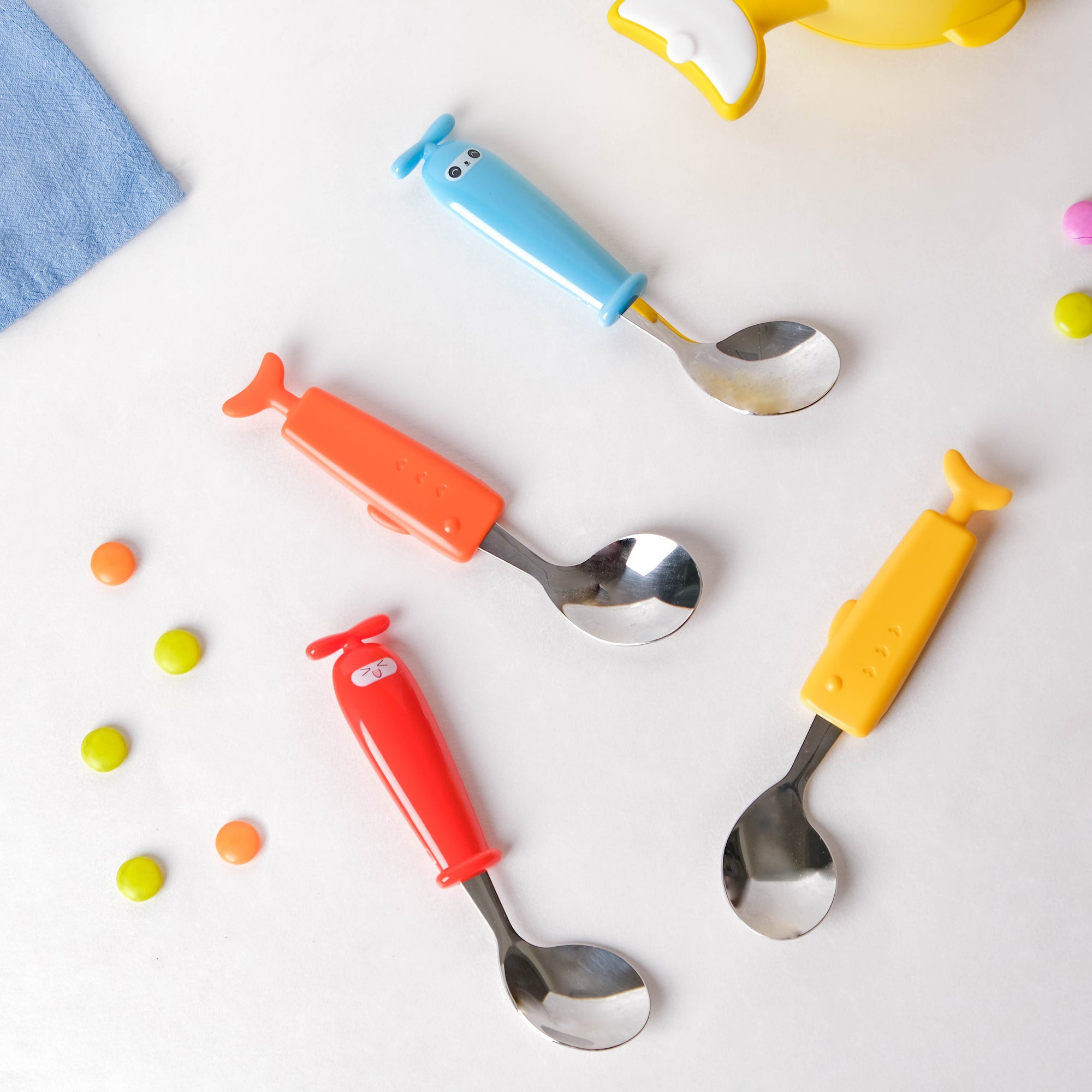The bright orange stainless steel spoon is ideal for kids to enjoy a fun and frolic snack time. The broad handle of the spoon is designed to fit in the kid's tiny hands and to improve grip. One can have mashed food, rice, soup, stew, steamed veggies, porridge, and a lot more with this kid's spoon.