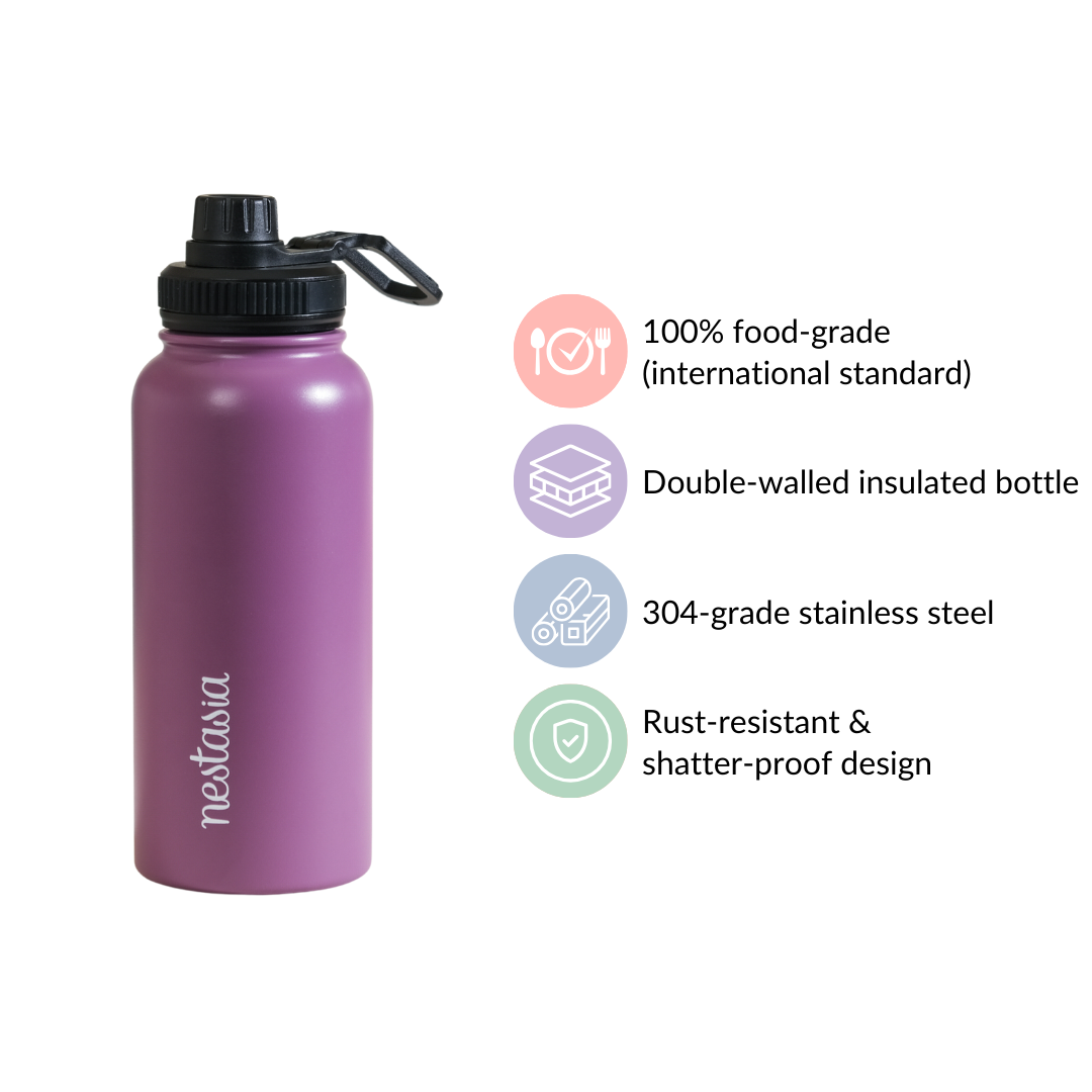 This bottle, meticulously crafted from 304 stainless steel, goes beyond being merely food-grade quality; it's double-walled and insulated to perfection, ensuring your beverages stay refreshingly cold or delightfully hot for hours on end. The BPA-free PP lid guarantees an airtight and leakproof seal, granting you the freedom to take your favourite drinks on any adventure, while the ingeniously designed drinking spout promises a smooth, spill-free sip every time. With its wide opening, cleaning and refilling this bottle is a breeze.
