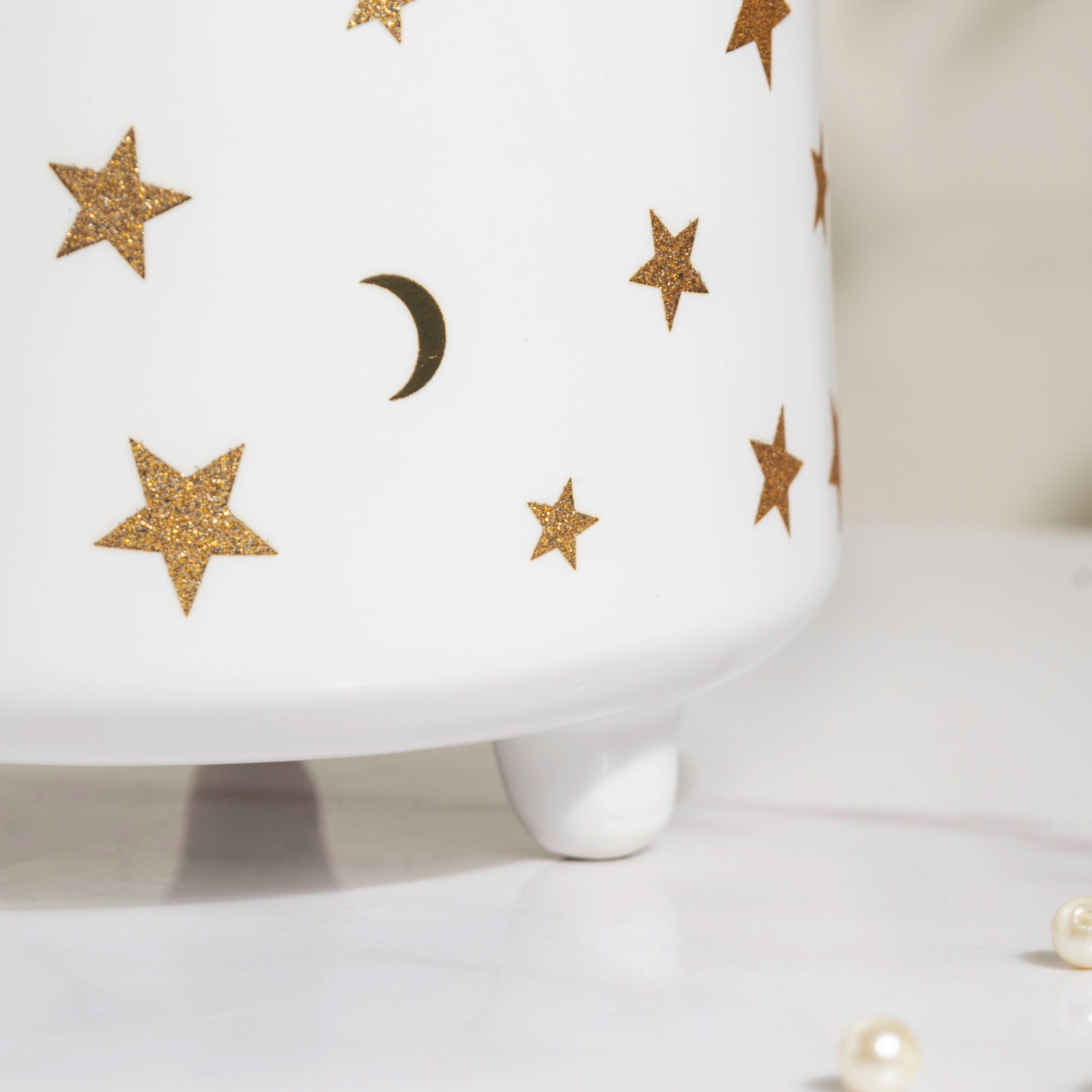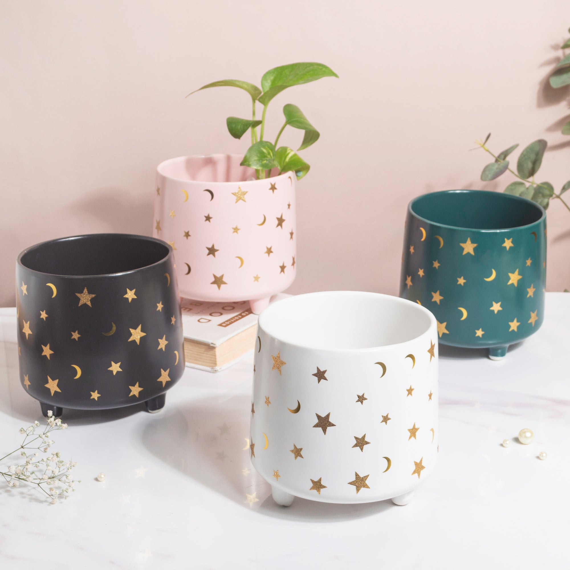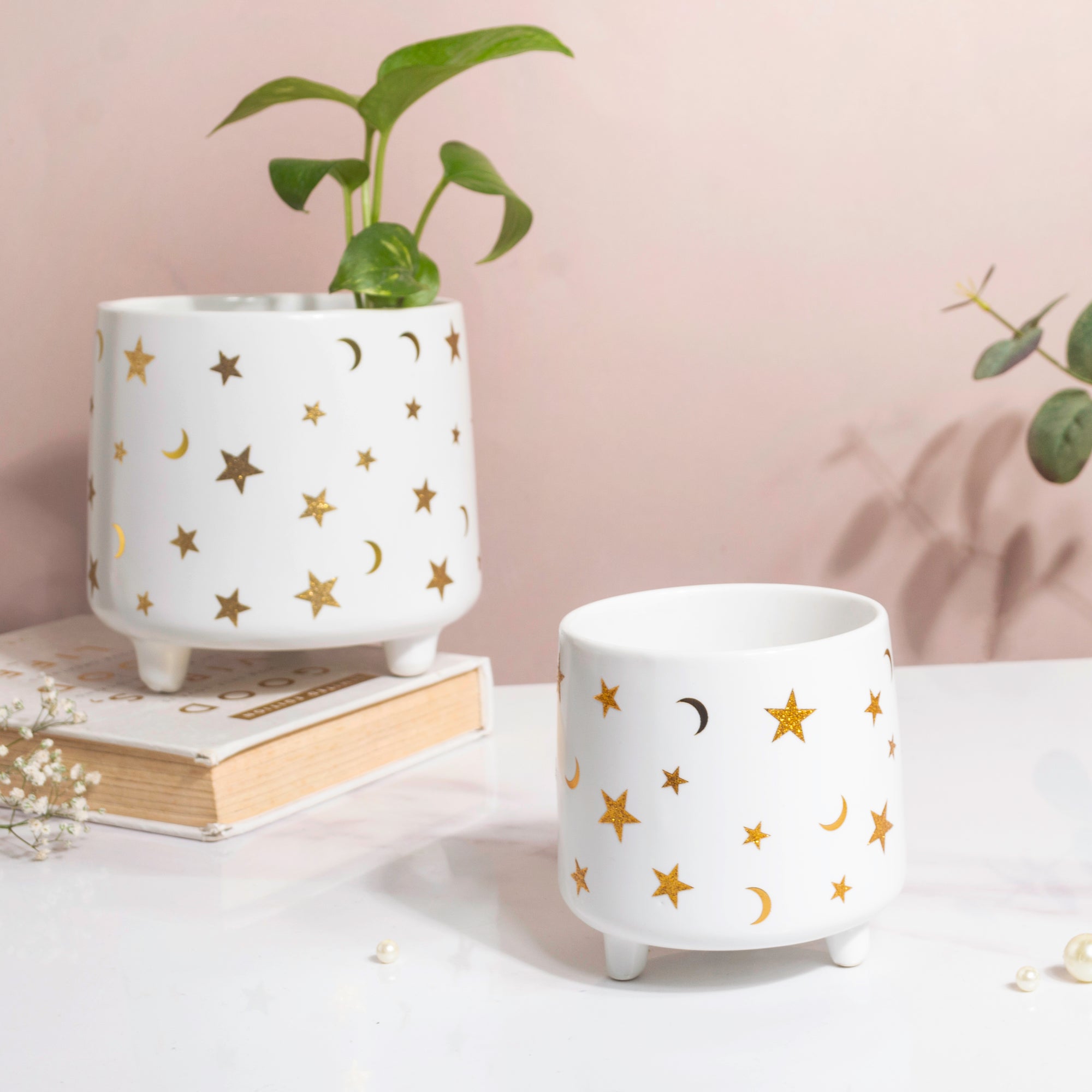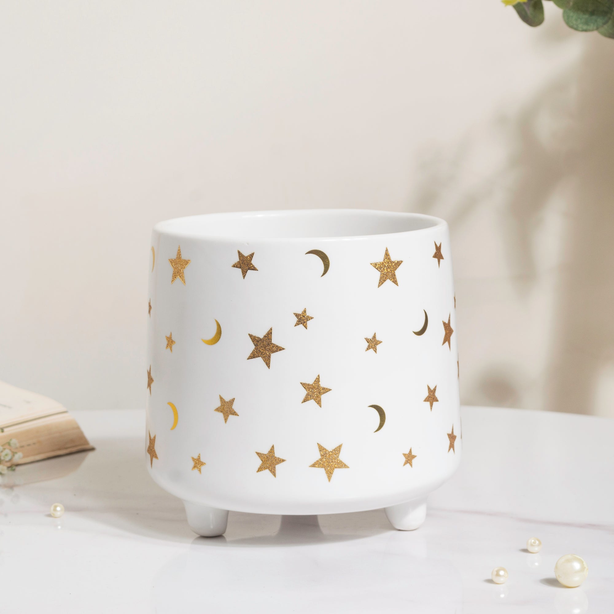 Place fresh greens into the exquisitely designed white planter to brighten up the living space. The white ceramic surface of the planter has lustrous gold patterns that brighten up the design of the planter in totality. Place the planter on a tabletop or amid the foliage of one's own personal garden for adding a luxe element. The planter does not have a drainage hole, hence, it's advisable to not pour excess water in the soil while nurturing greens.