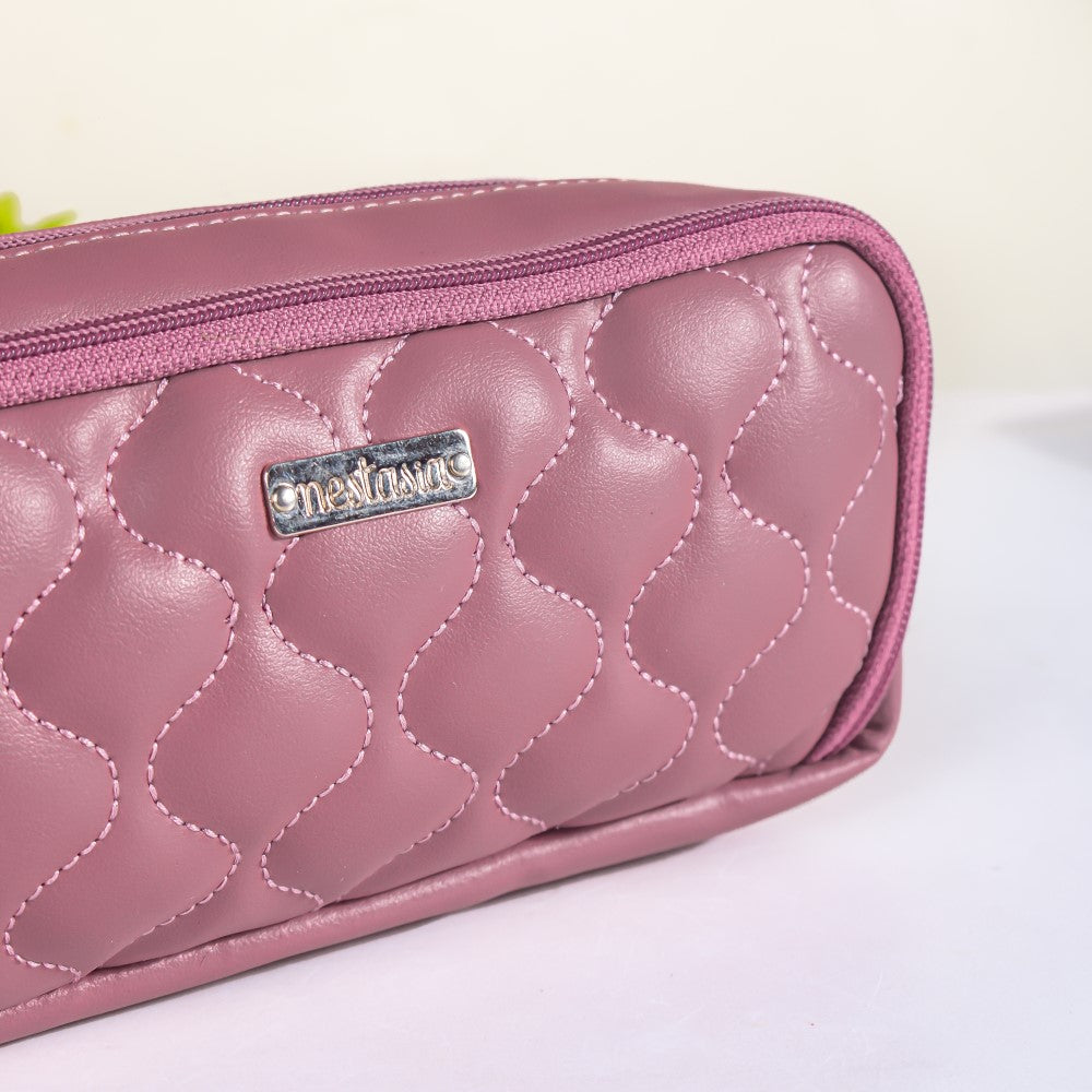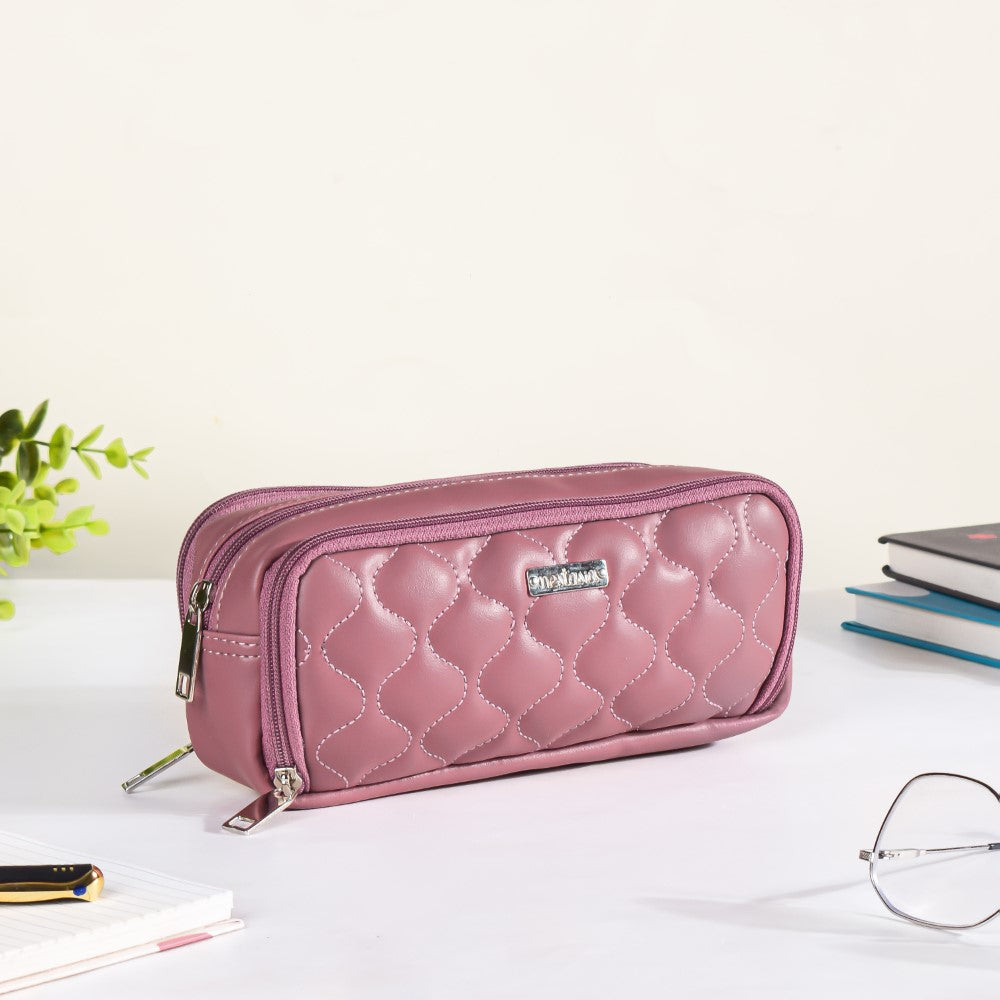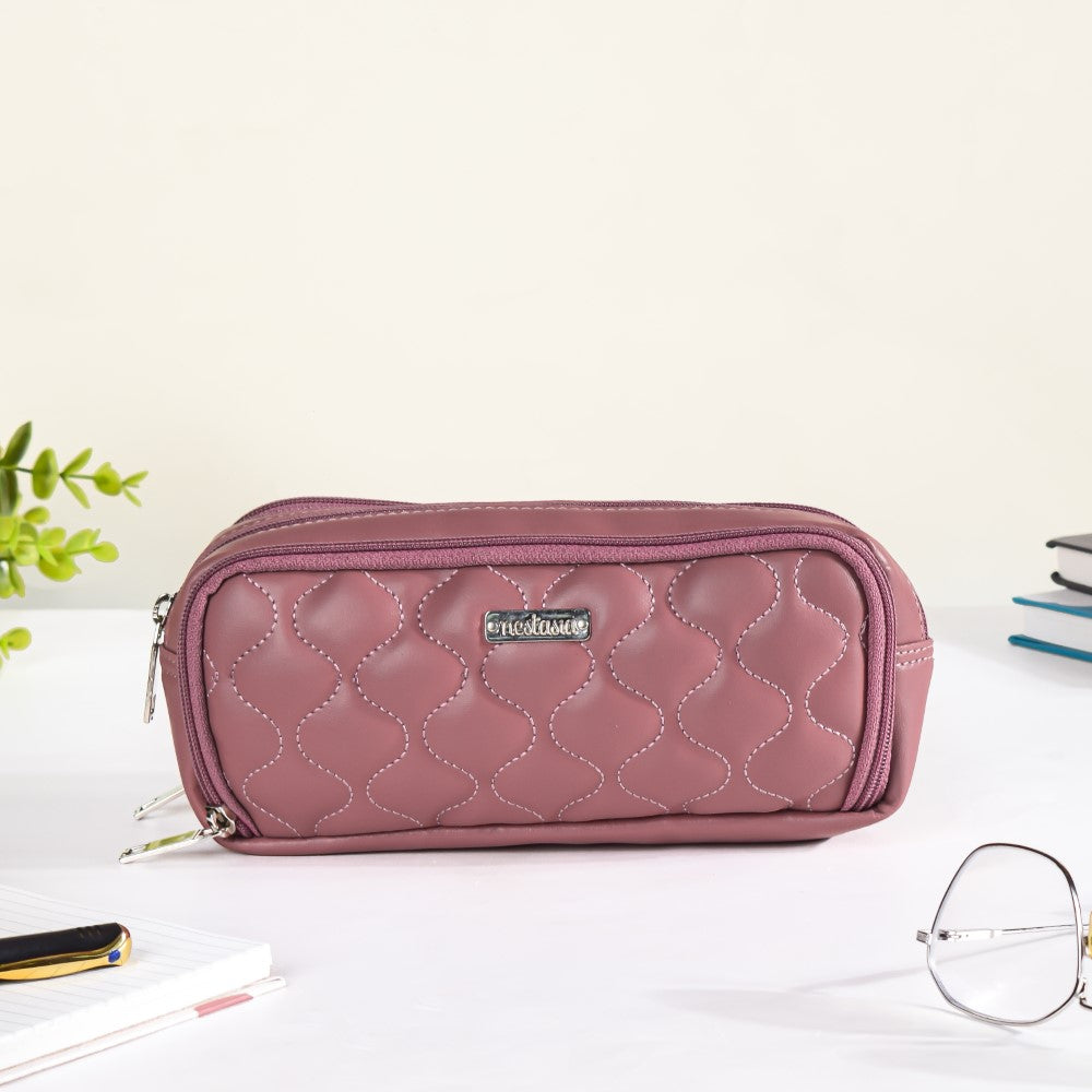 A pink pouch is a must when carrying a pink tote bag! Because of this, the selector's preferred product is Nestasia's vegan leather pink-coloured bag. This three-compartment storage pouch is made by our in-house artisans with the colour winning the hearts of most of fashion enthusiasts - pink. Eco-friendly, long-lasting material has been employed to produce the pencil case and pen organiser. The pencil case pouch's wavy design definitely makes it a stylish pencil case. The pink pencil case has three compartments: one with an elastic loop for pencils, pens, or other study tools, one area in the middle, and a mesh container for smaller items in the last compartment. Its contemporary and classy exterior, which is solid coloured and cushioned, makes it ideal for giving on special occasions like birthdays, celebrations, parties, or as a gift of congratulations after graduation or a new job, as it's a great desk organiser.