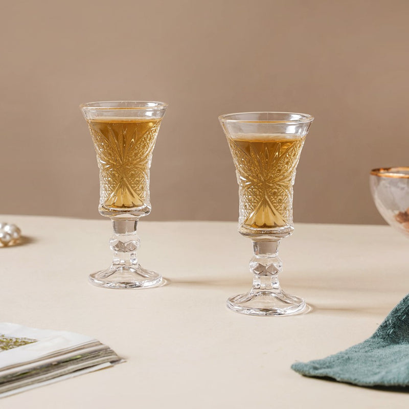 It's time to relax and enjoy one's favourite wine with the elegant textured stemmed glasses. The aesthetically pleasing glasses have a lovely silhouette and are a must-have. The wine glasses are made of sturdy glass, which is scratch-resistant and has a long-lasting glaze and transparency. The glasses are constructed to provide the wine with the ideal surface area, improving its fragrance and taste as one takes each sip. The glass features a cut-glass texture that elevates one's glassware collection.