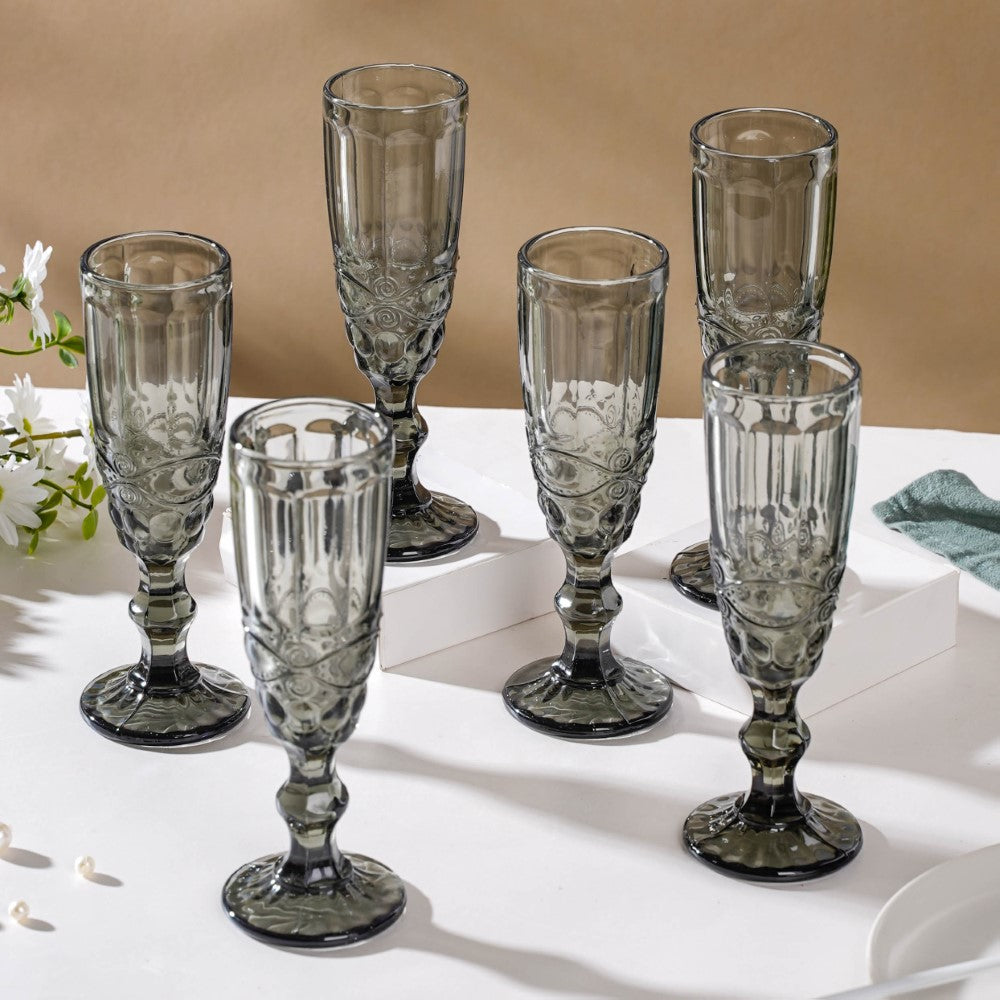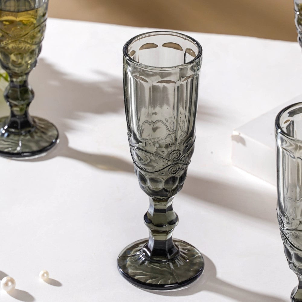 These champagne glasses are highly versatile and can be used for serving various beverages beyond champagne or sparkling wine. They can be suitable for cocktails, wine, or even non-alcoholic drinks. The ash-grey colour adds a unique touch, enhancing the visual appeal of any beverage served in them.