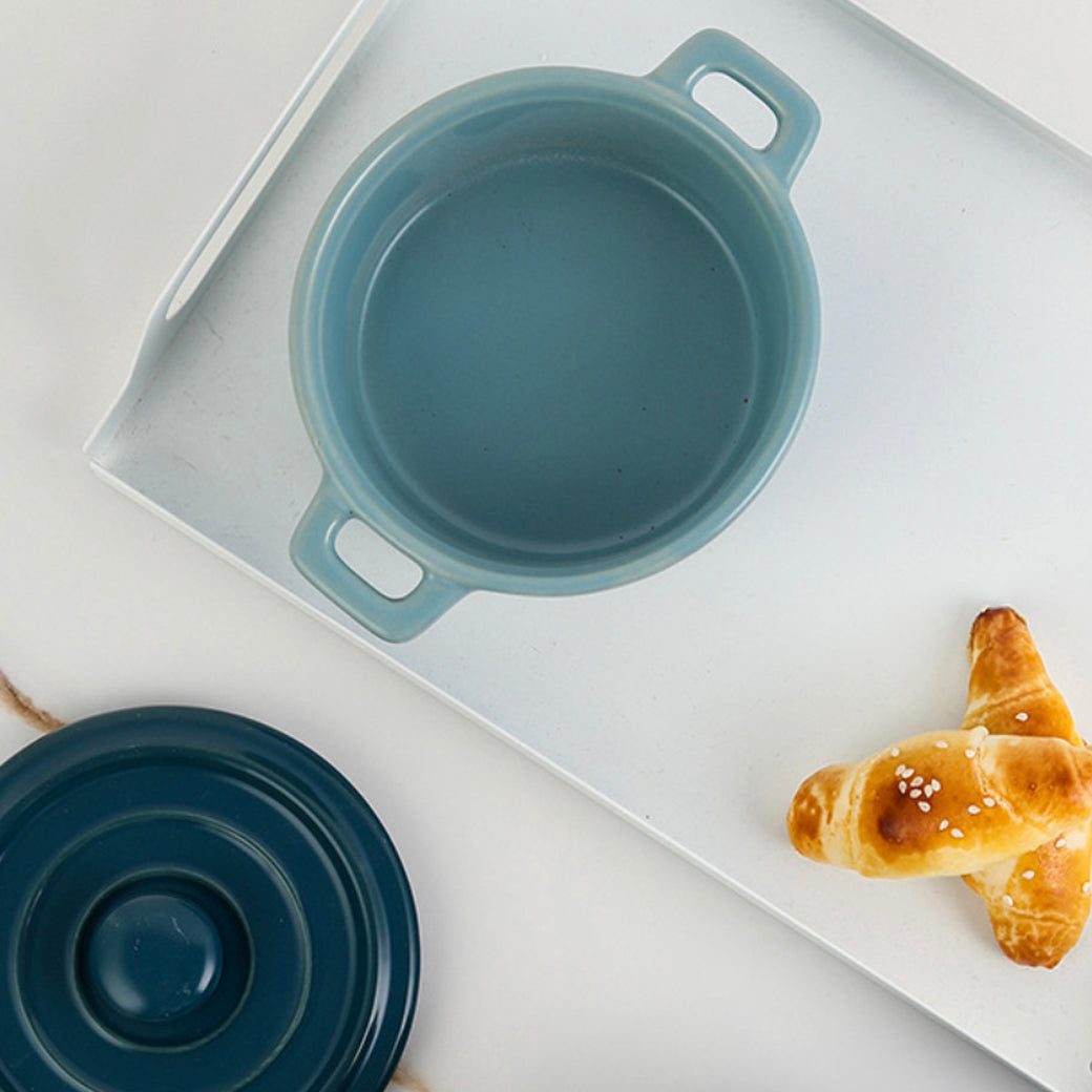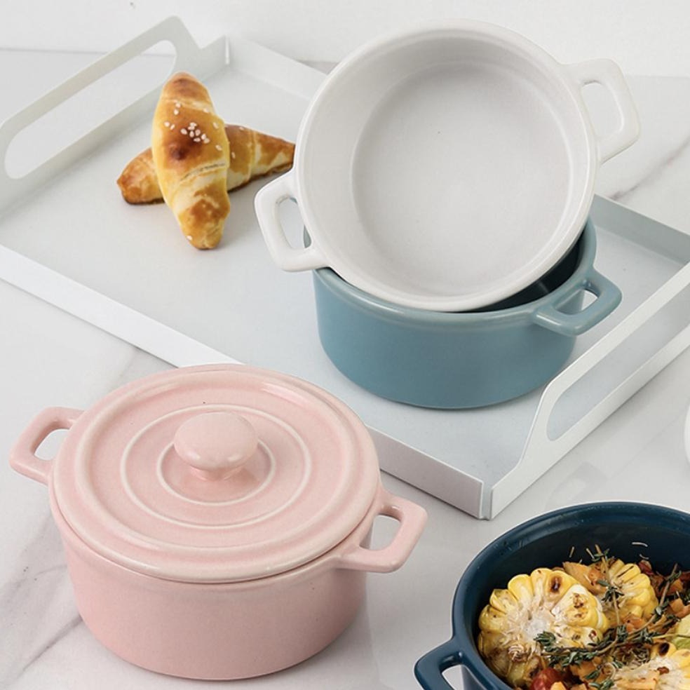 Mini stock pots with lid that come in 6 colour variants to choose from. The casseroles come with two handles and a lid with fine lines that can keep the food warm. The stew pots can be used to serve individual portions of curry, lentils, snacks or rice and biryani. The bowls with handles and lid look elegant yet stylish that are easy to serve and clean. The dishes are safe to bake in the microwave.