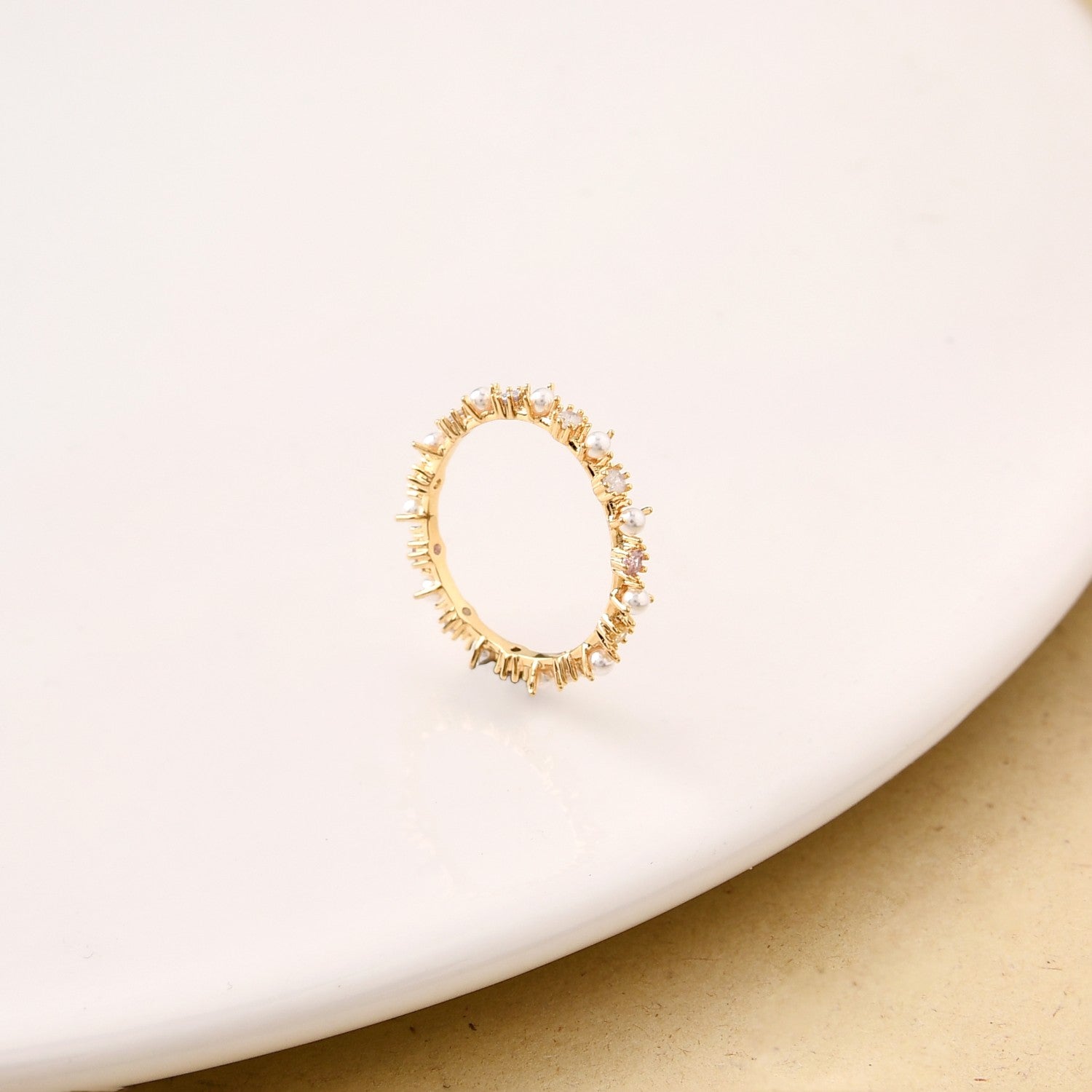 The kind of gold ring that’s subtle enough for everyday wear but special enough to turn heads! With delicate pearls and multicoloured iridescent stones, this dainty ring strikes the perfect balance between minimal and statement. Whether you're dressing up or keeping it casual, it adds just the right amount of sparkle. A perfect pick for gifting or treating yourself!