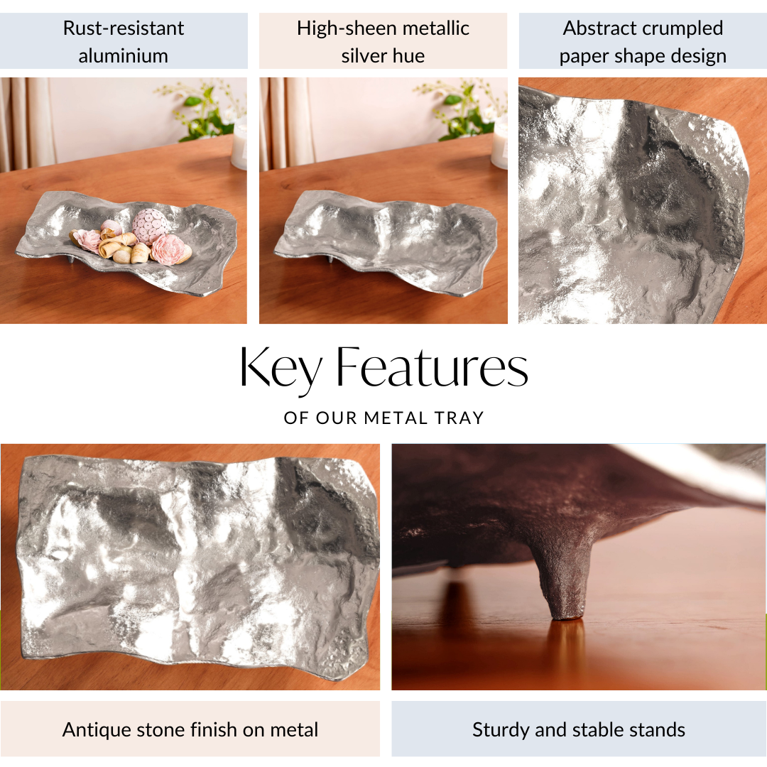 The metal tray can add a unique touch to your bathroom or vanity area. Use it to organise items that fit into its uneven surface, such as makeup brushes, combs, or rolled washcloths.