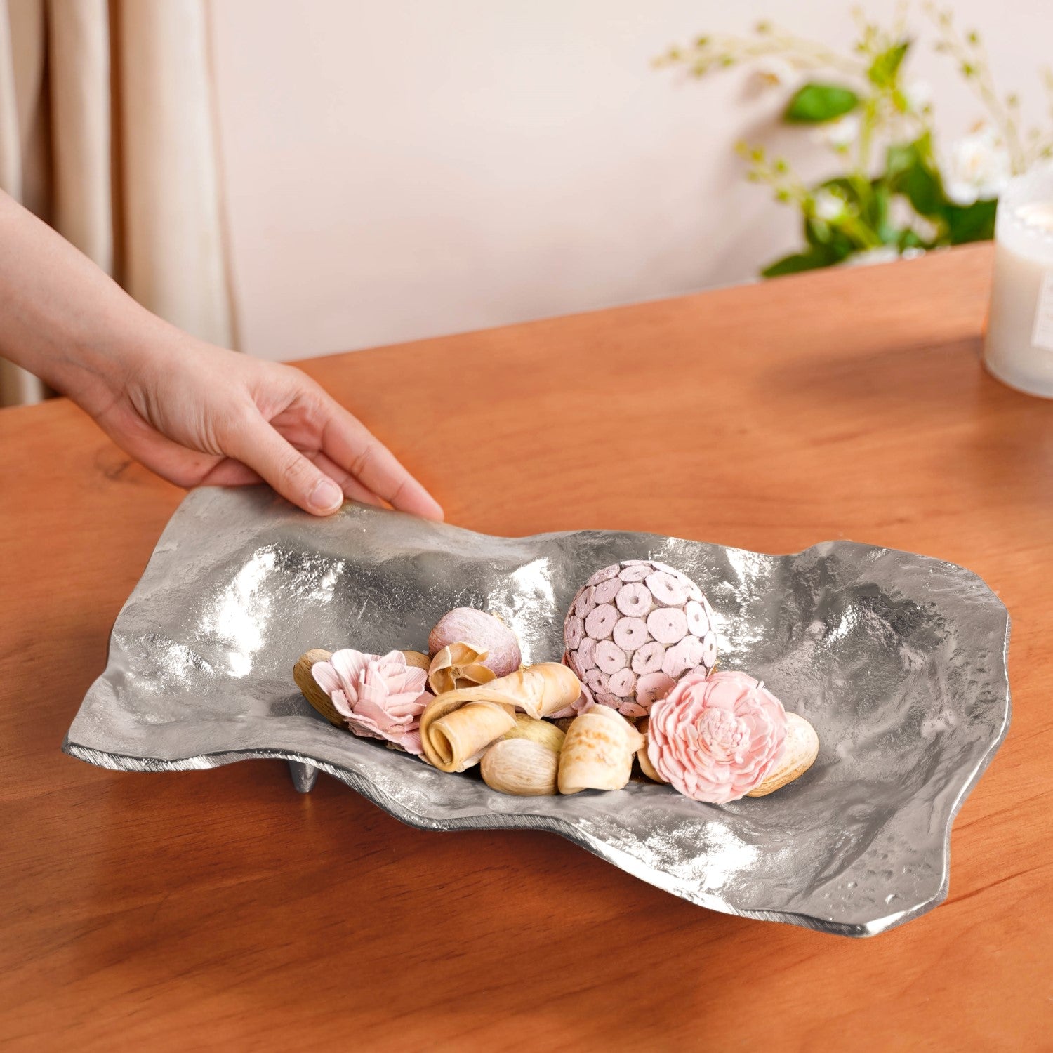 To create a striking centrepiece, use items that can fit securely into the deep, narrow grooves of the tray. Consider decorative fillers like dried flowers, potpourri, or small decorative stones.