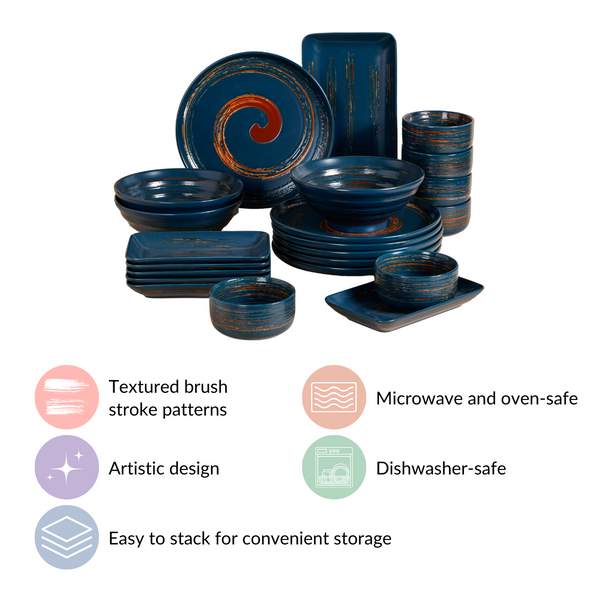Relish the convenience of odorless, microwave and oven-safe dinnerware that easily withstands the demands of your kitchen. With a complete 28-piece set designed for 6 diners, they are perfect for all types of meals, from everyday family dinners to grand feasts. And, when it comes to gifting, these sets are the ideal choice, ensuring your loved ones can savor every meal with quality and style.