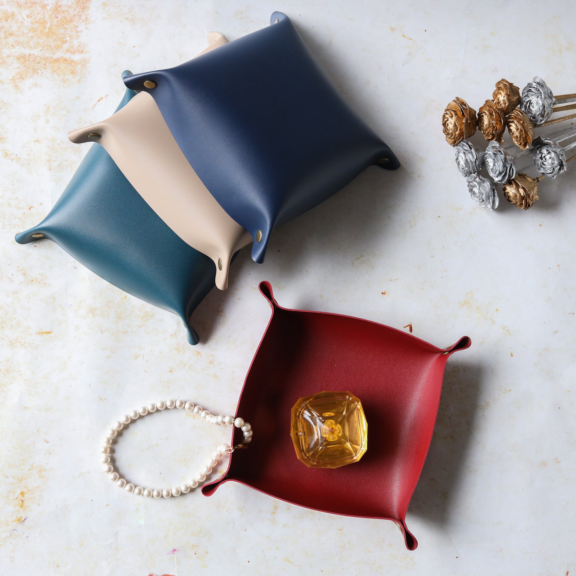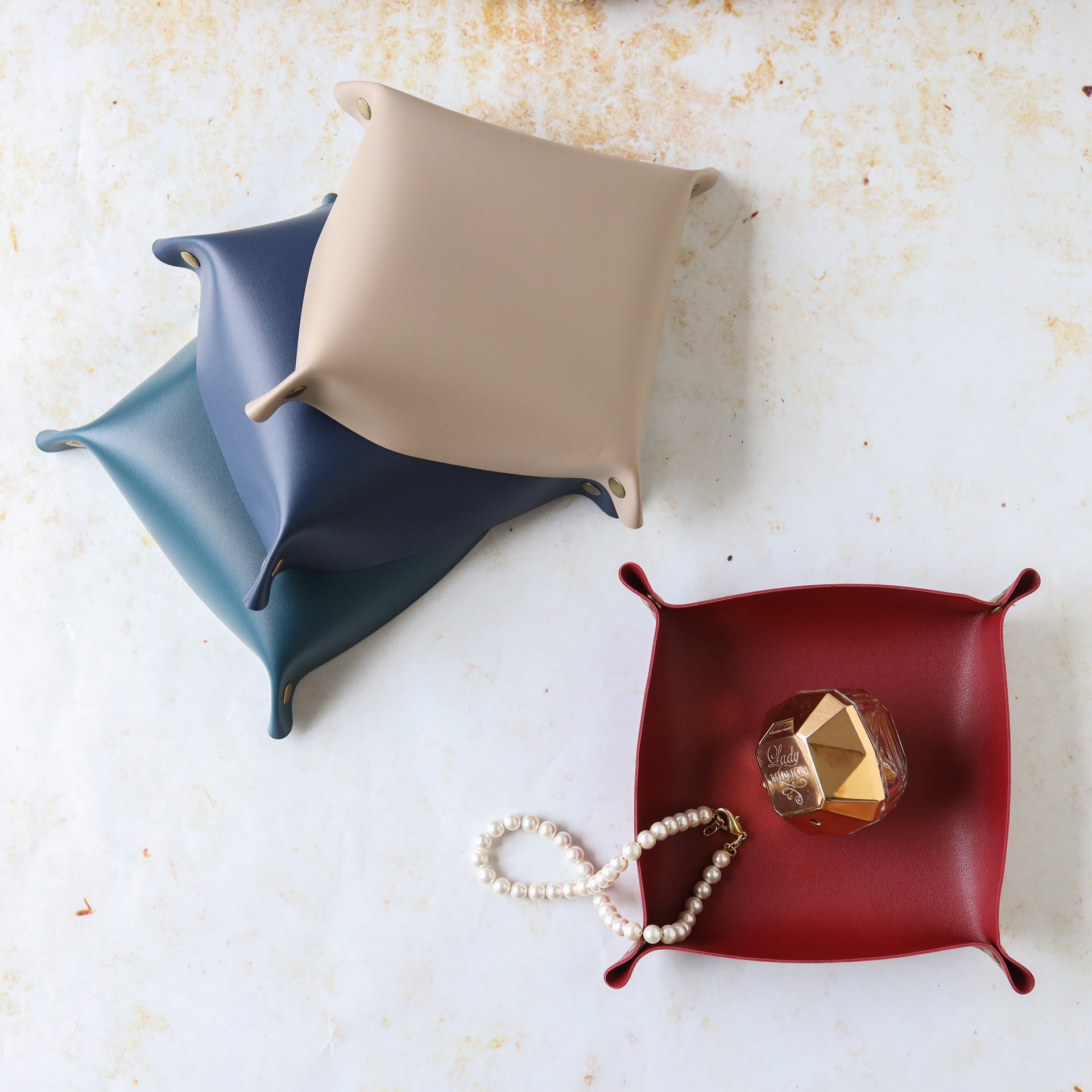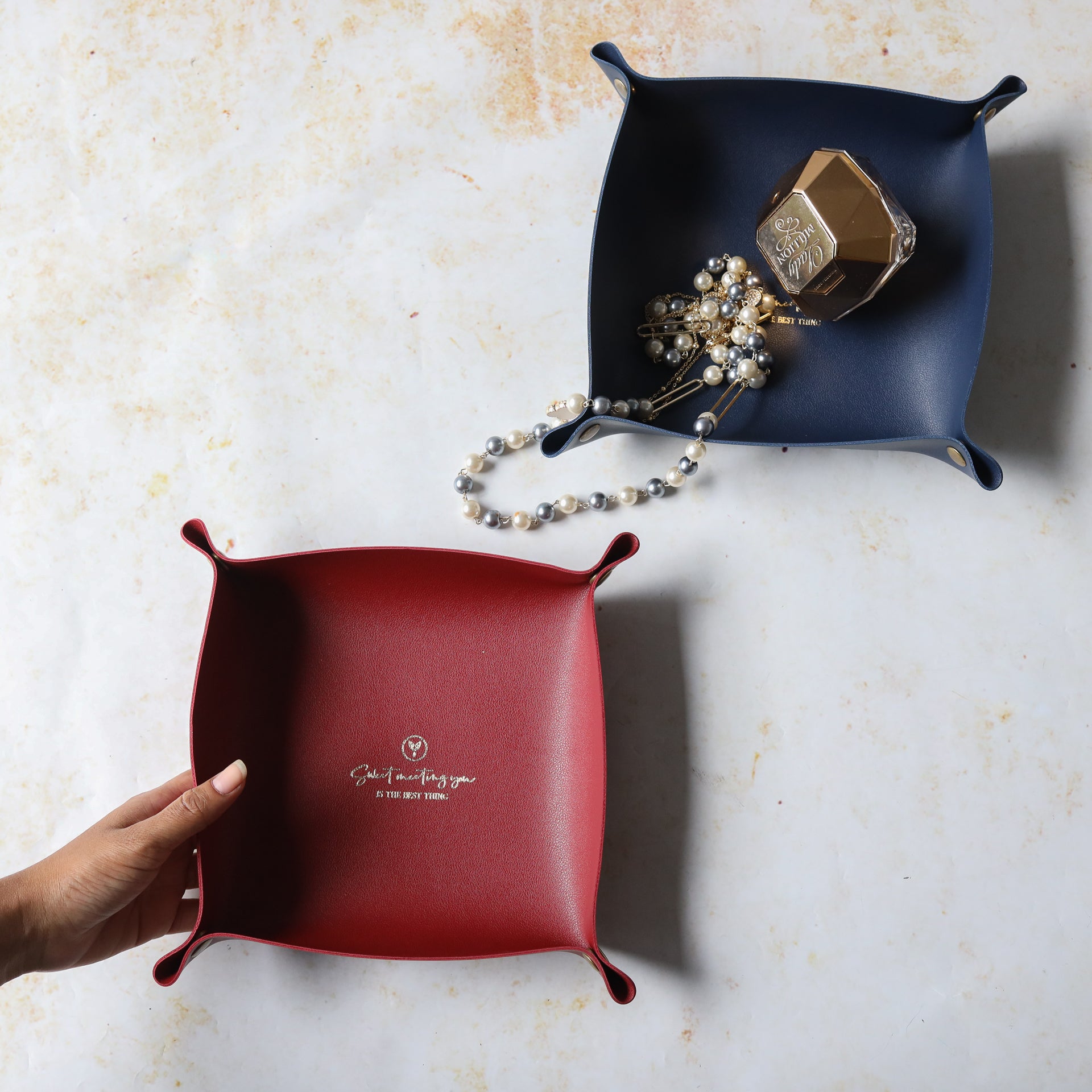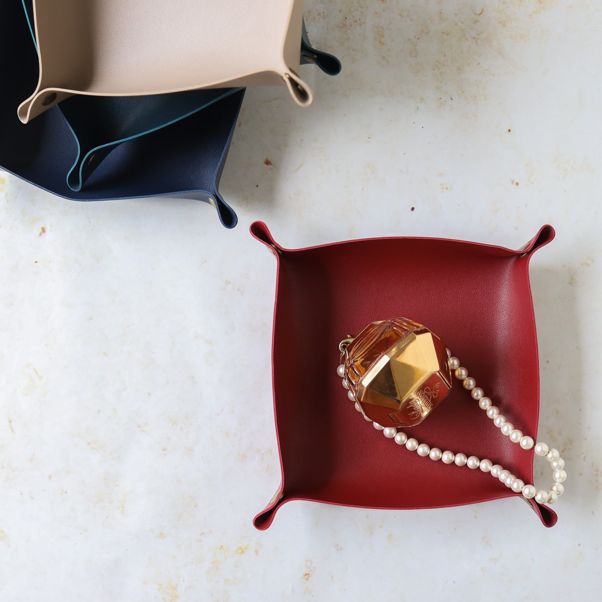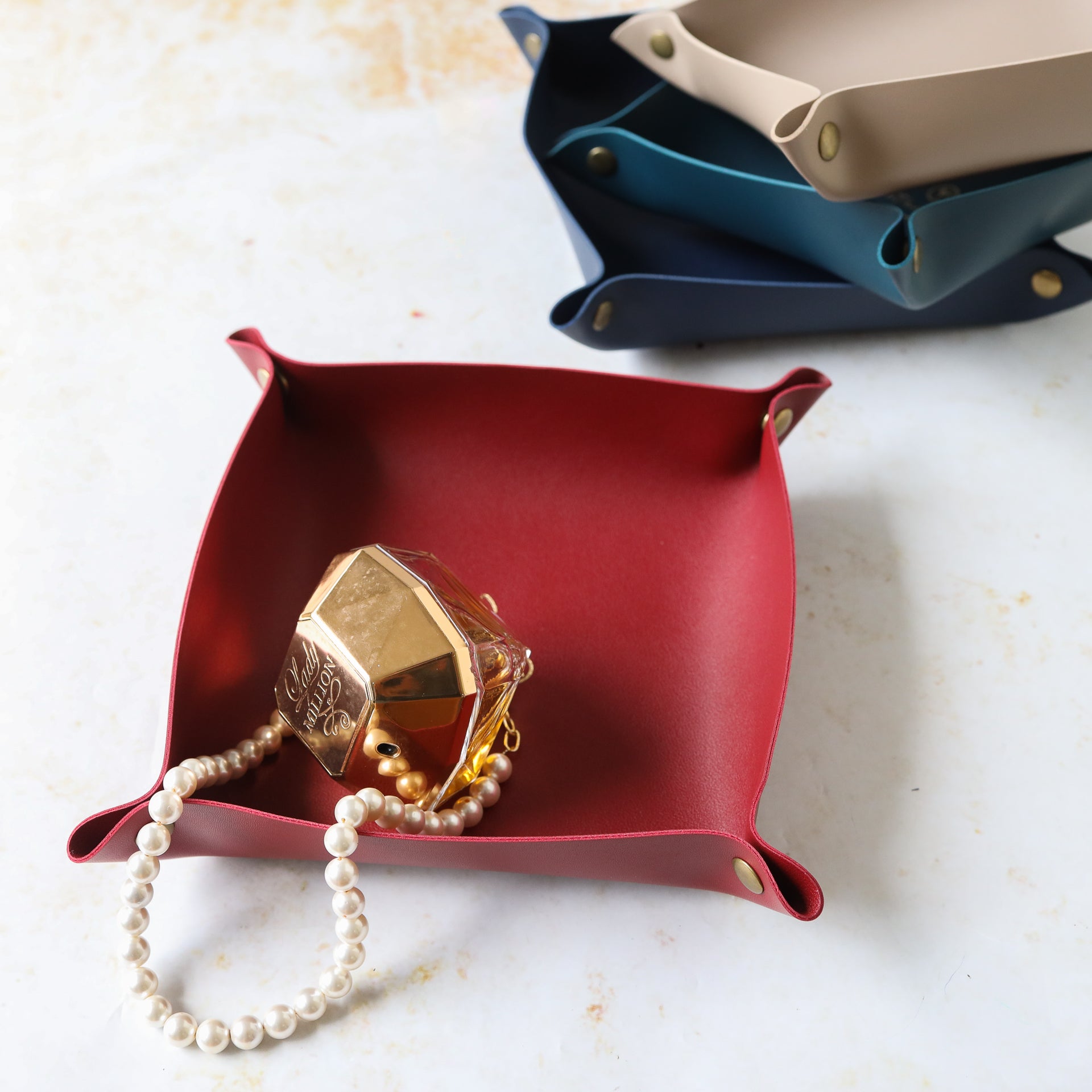 Nestip: Pair the leather tray organiser with the same colour tray in a large dimension.