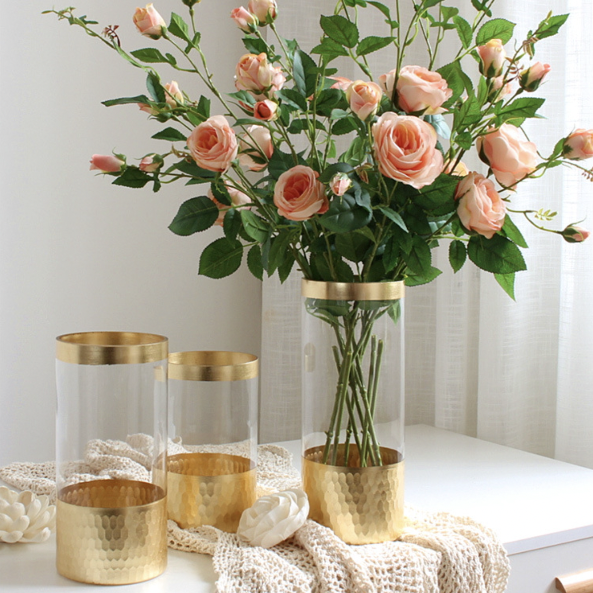 The exquisite hand-blown glass vase complements the coffee table design perfectly. In the living room or dining room, the glass vase provides a rich touch to the lovely decor and makes a stunning impression. The vase's simple lead-free substance and form make it ideal for bringing together comparable pieces of varied shapes and sizes to decorate tables and shelves. The beautiful glass vase with a gold metal rim makes a wonderful housewarming present for friends and family. For a new look, the vase is a perfect complement to any living space.