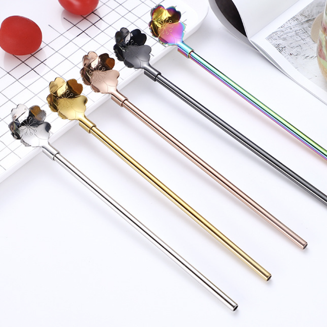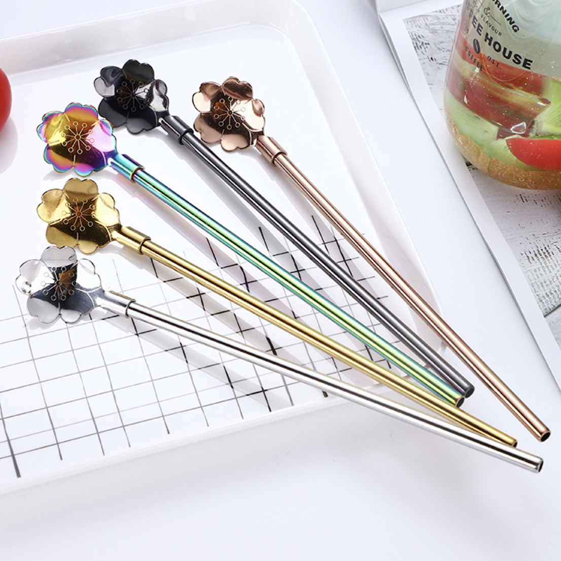 The adorable flower-shaped spoon with a welded straw, both in stainless steel, will make the perfect spoon-straw combo to dip into and sip delicious shakes and beverages. The uniquely designed spoons are perfect for stirring coffee, tea, and juice. The stirring spoons ought to make a great allurement for children who are fussy about eating food. The straw-spoon cutlery piece is lightweight which makes it easier to carry around.