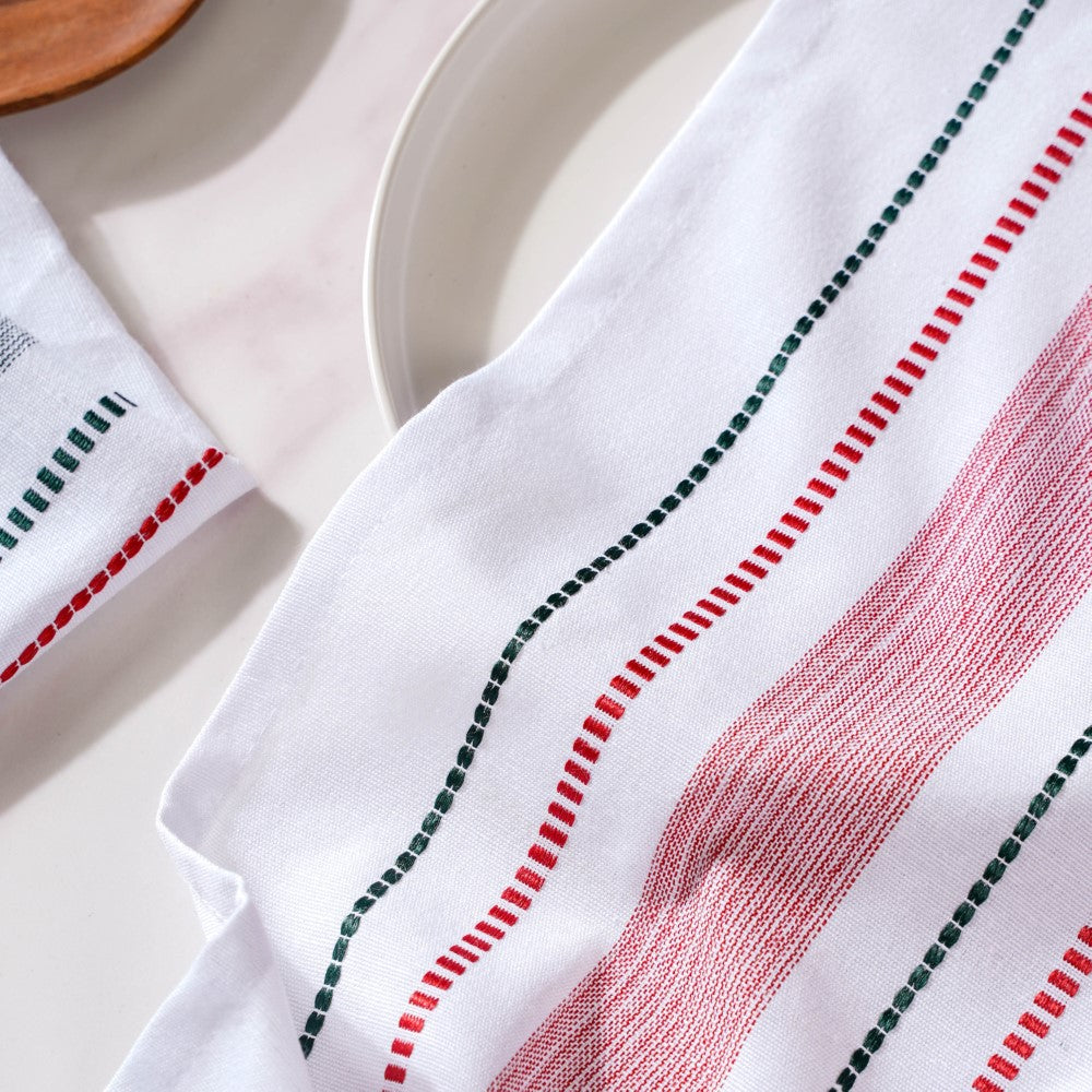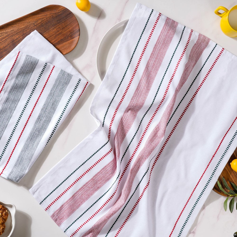 The striped hand towel set comes in a soothing colour combination of red and green that can go well with any modern kitchen or bathroom interior. The soft natural fibres of the tea towels also make them feel super-soft to the touch. Not to mention, the natural and organic cotton fibres of the hand towel set make it highly absorbent and quick drying and perfect for daily use. The lightweight and compact design of the towel set also helps to carry it conveniently while travelling.