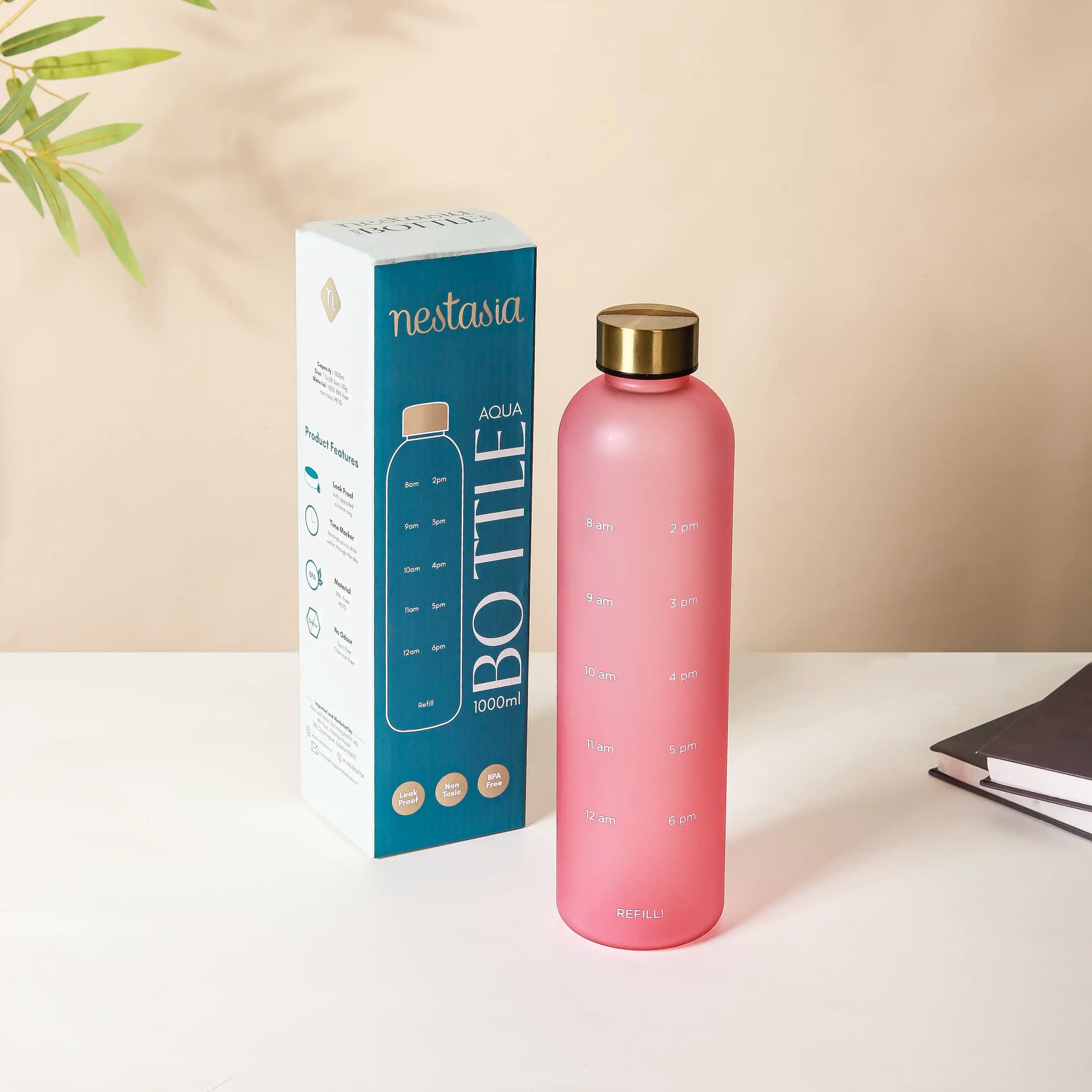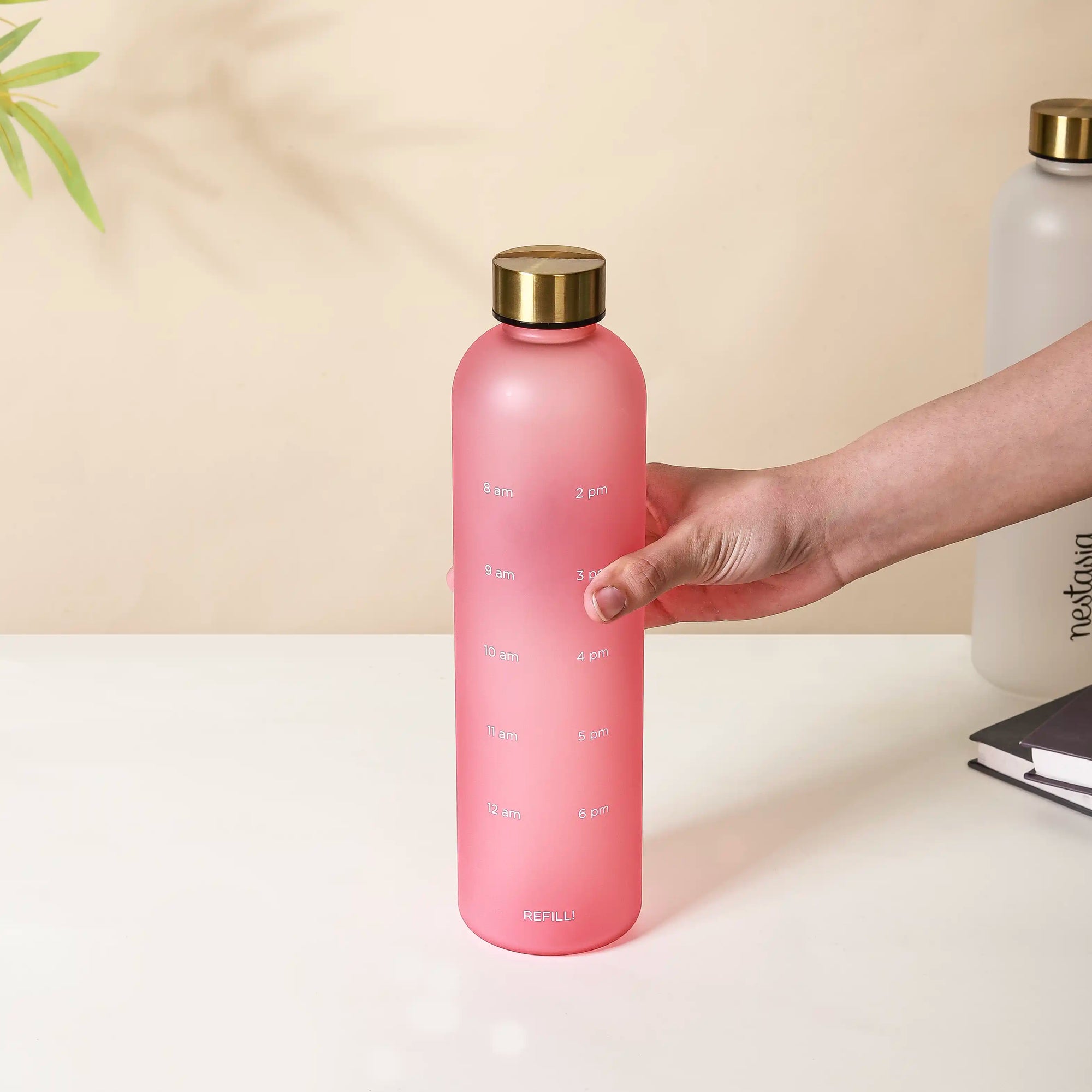 The 1-litre water bottle is where style, functionality, and mindful hydration converge. This sleek, matte white masterpiece is more than just a container; it's a lifestyle upgrade. We've carefully crafted it from BPA-free PP material to prioritize your safety. Its translucent body adorned with printed time markers is your constant companion in achieving daily hydration goals. With a stainless steel lid that keeps your beverages fresh and a generous 1-litre capacity that reduces the need for frequent refills, we invite you to experience the world of effortless elegance and precision hydration.