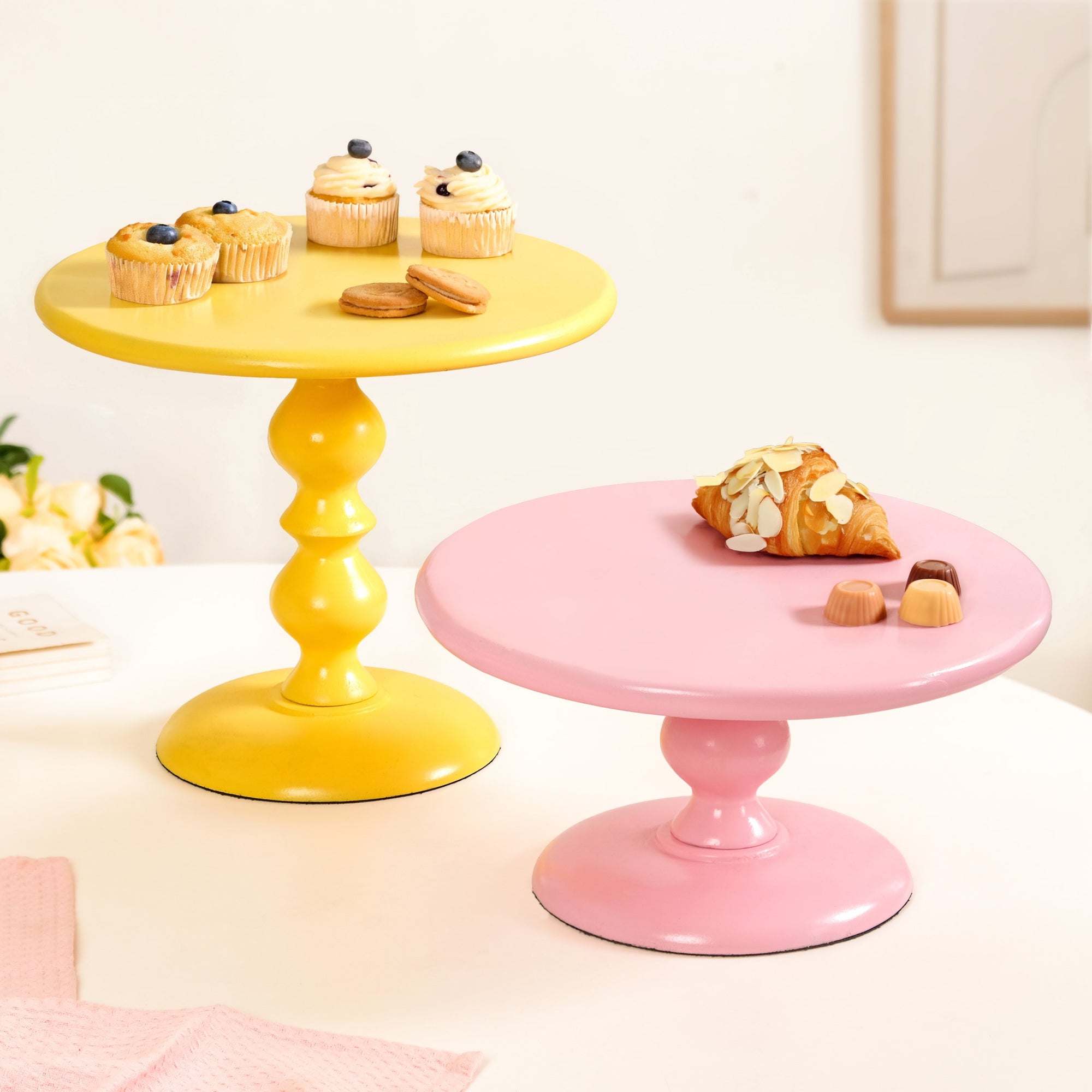 Sugar Pop Round Cake Stand Set Of 2 Pink And Yellow