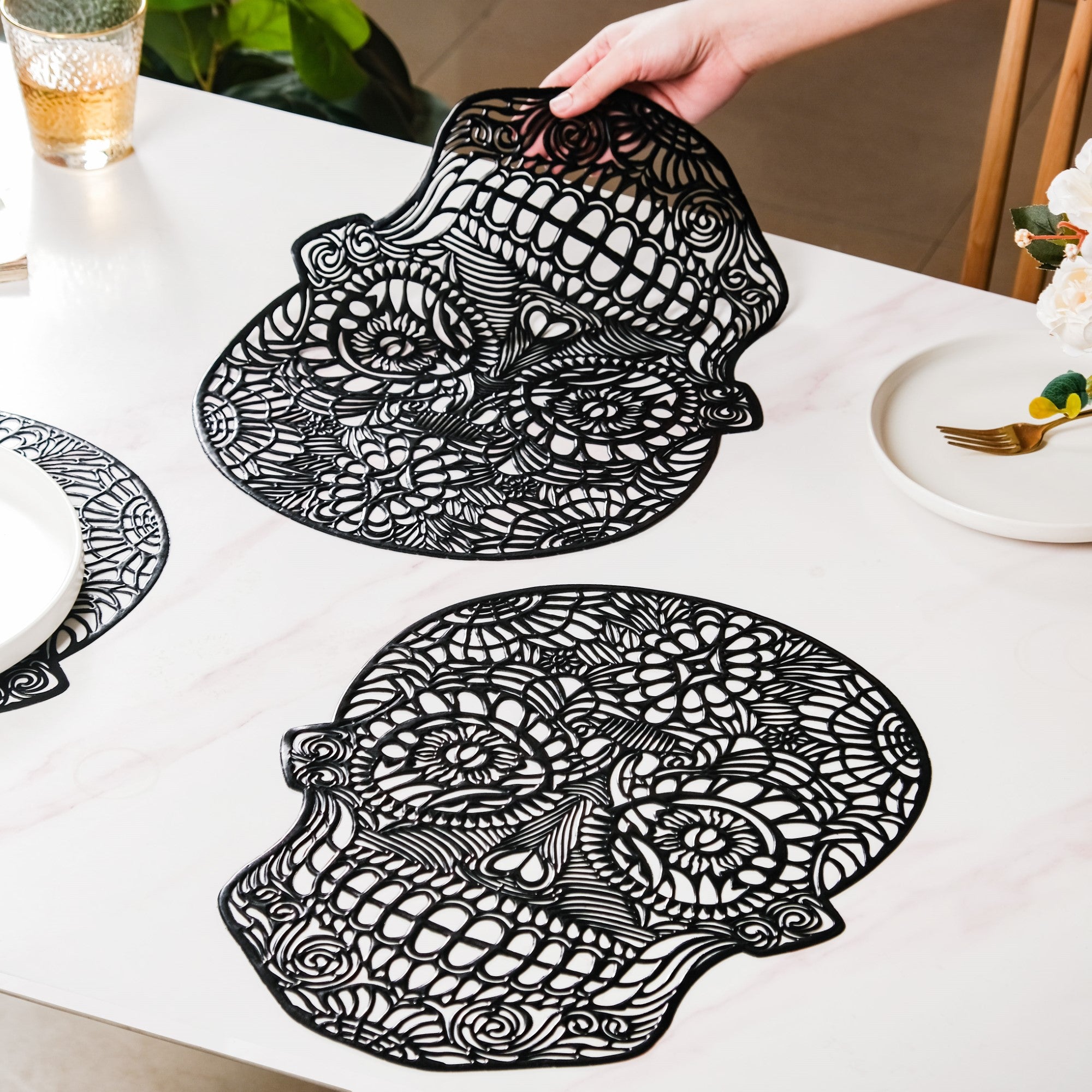 Precisely crafted, our skull-shaped table mats boast intricate patterns and dark designs that echo the essence of Gothic aesthetics. Each mat is a unique piece of art, contributing to a dining experience that is as visually stunning as it is practical.