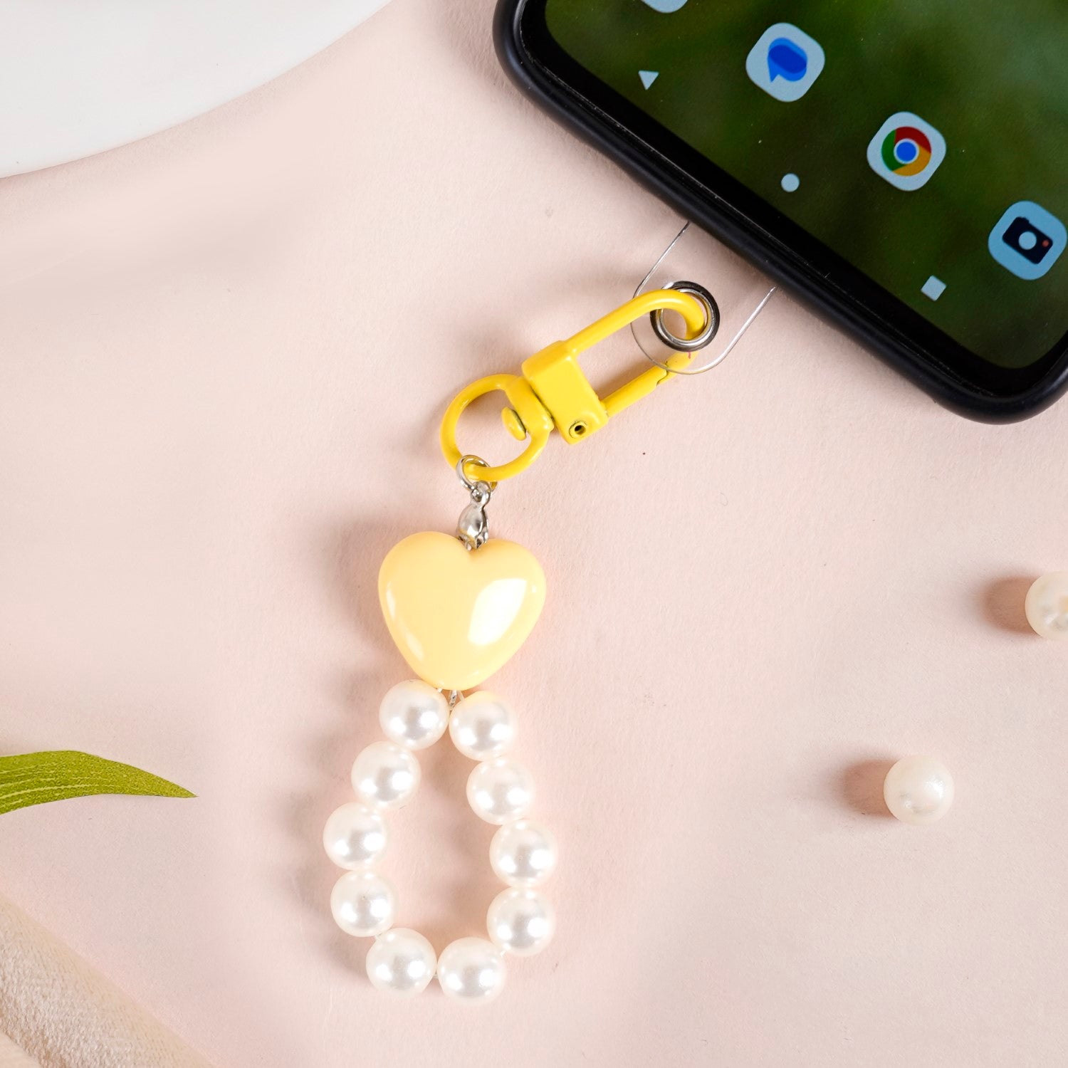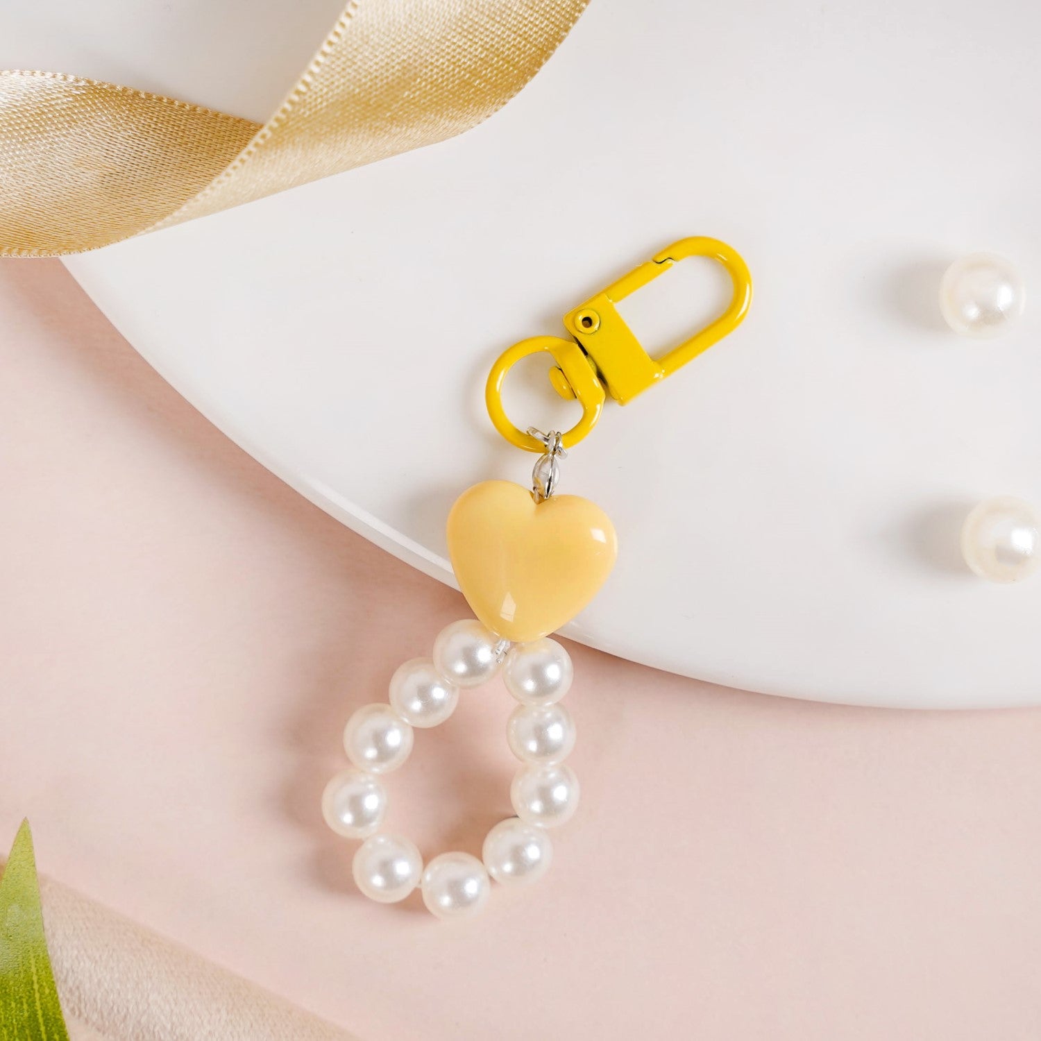 Keep your keys company with a burst of sunshine! This cute little yellow heart keychain is all about good vibes, featuring a radiant heart charm, a dainty white pearl dangler for a hint of glam, and a sturdy yellow metal lobster clasp hook to keep everything in place.