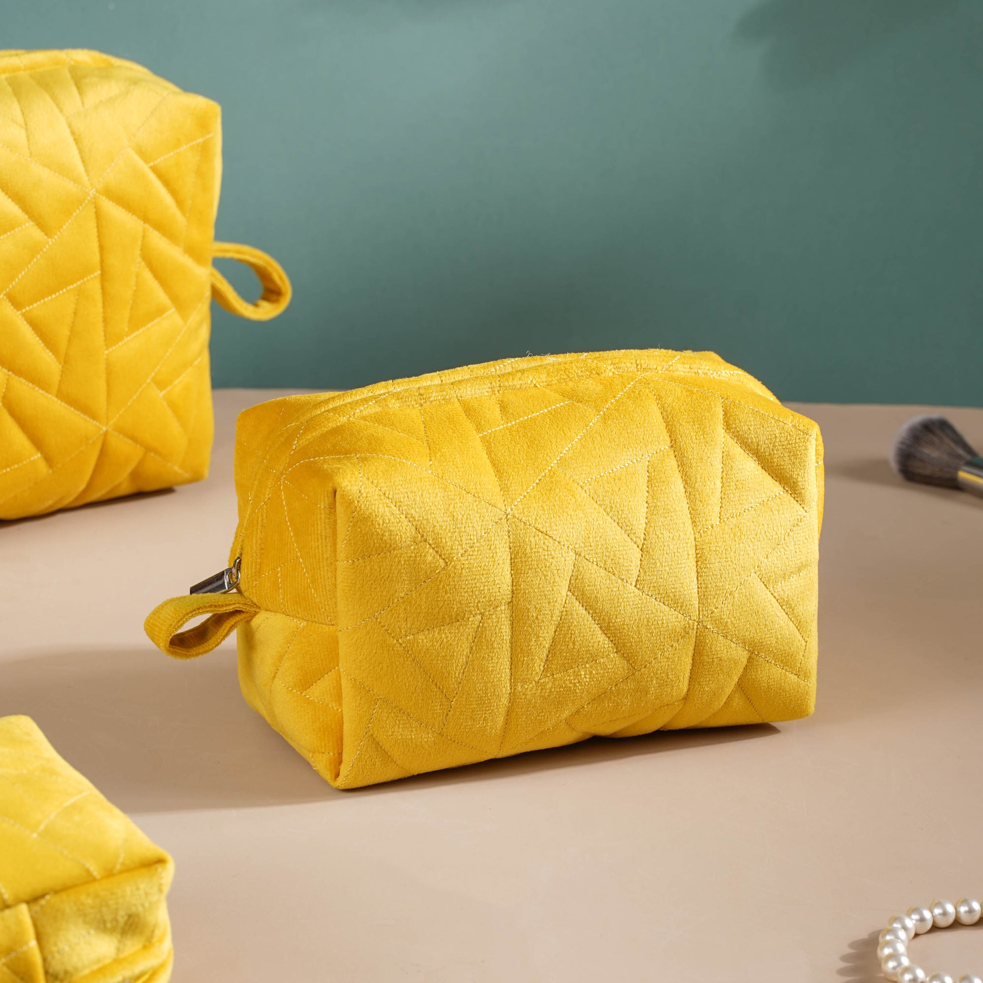 Sleek and stylish, the set of 3 pouches in luxurious velvet is the perfect organizing partner. The pouches feature a zip closure for easier functionality and a waterproof lining to keep one's essentials in the pouches dry and safe. Do you wish to keep your space neat and tidy? The multipurpose bag set is all you need to pack and keep your essentials in one place, reducing the clutter and the chances of missing an item when it’s required.
