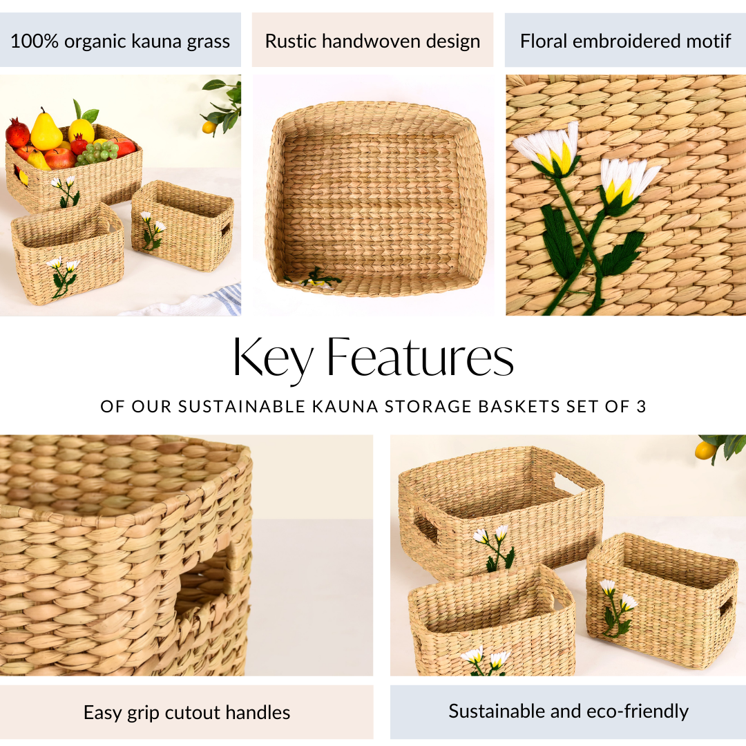 Yes, these baskets are made from 100% organic kauna, a natural and eco-friendly material that is durable and sustainable.