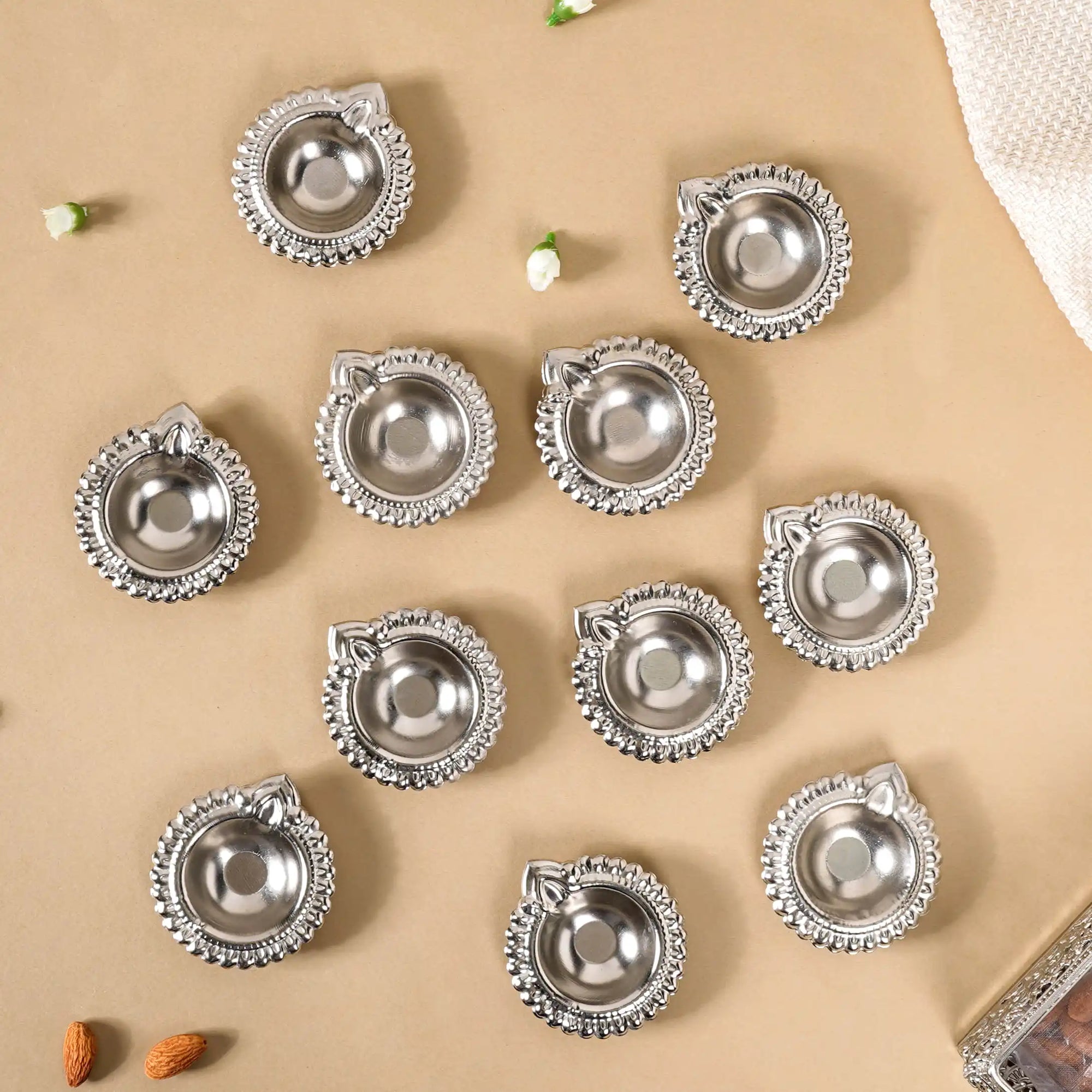 These tea light holders are versatile and can accommodate both regular tea light candles and LED lights. Their traditional design and premium quality make them suitable for various types of tea lights. You have the flexibility to choose between the warm, flickering glow of traditional candles or the hassle-free, long-lasting illumination of LED lights, depending on your preference and the atmosphere you want to create. Whether you opt for candles or LED lights, these holders will beautifully complement your decor with their high-sheen silver finish and traditional design.