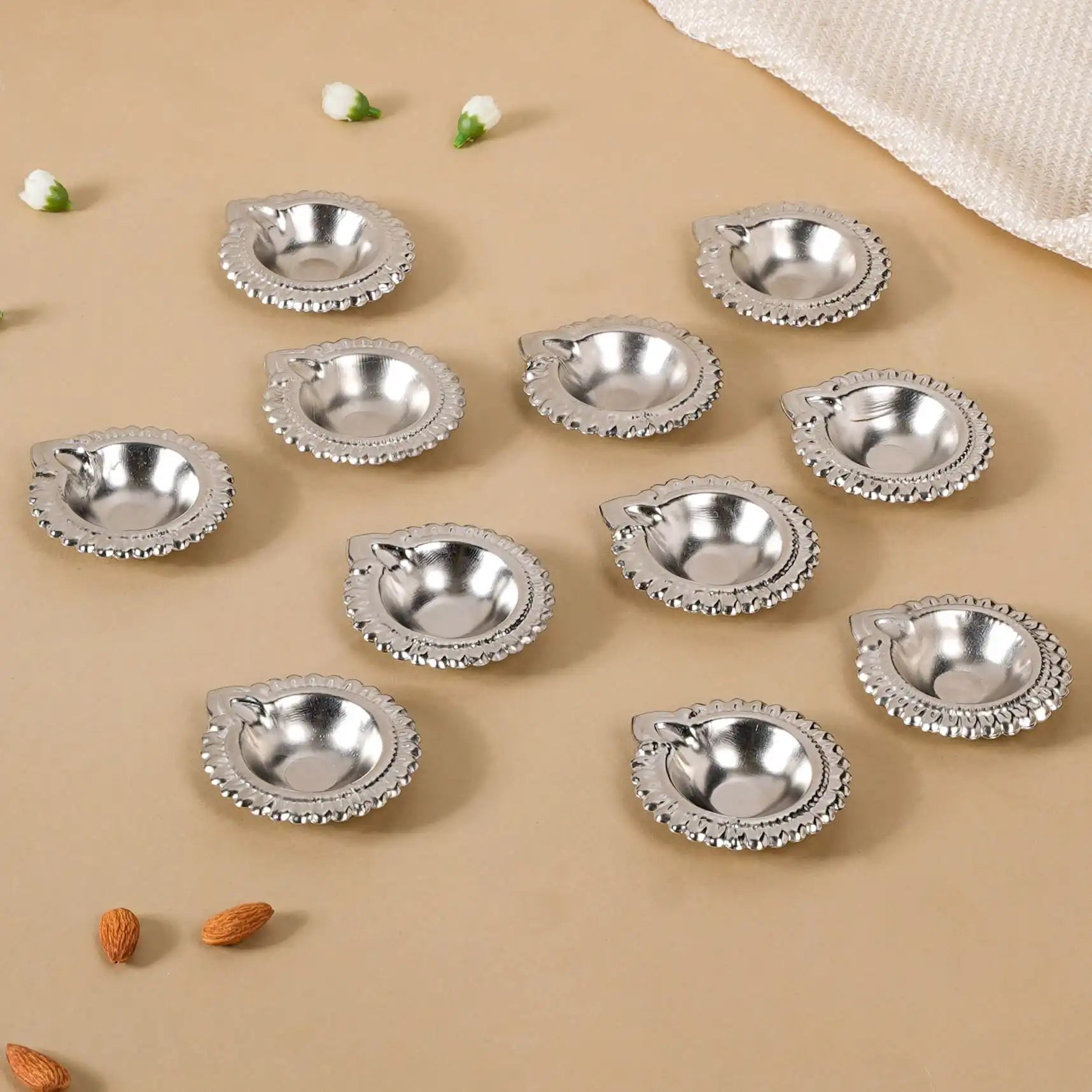 Certainly, these tea light holders can be a versatile addition to your home decor. With their set of 12 premium quality holders, traditional design, and high-sheen silver finish, they blend seamlessly with various home decor items and centerpieces. Whether you want to create an elegant centerpiece for your dining table or accentuate other decorative elements in your home, these tea light holders complement a wide range of styles and themes. You can place them alongside flowers, on mantels, or as part of a larger decor arrangement to enhance the overall aesthetics of your living space. Their durability and rust-resistant nature ensure that they can be used harmoniously with other home decor items to create a cohesive and inviting atmosphere.