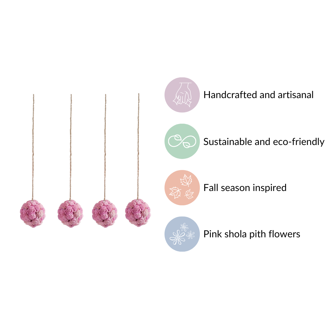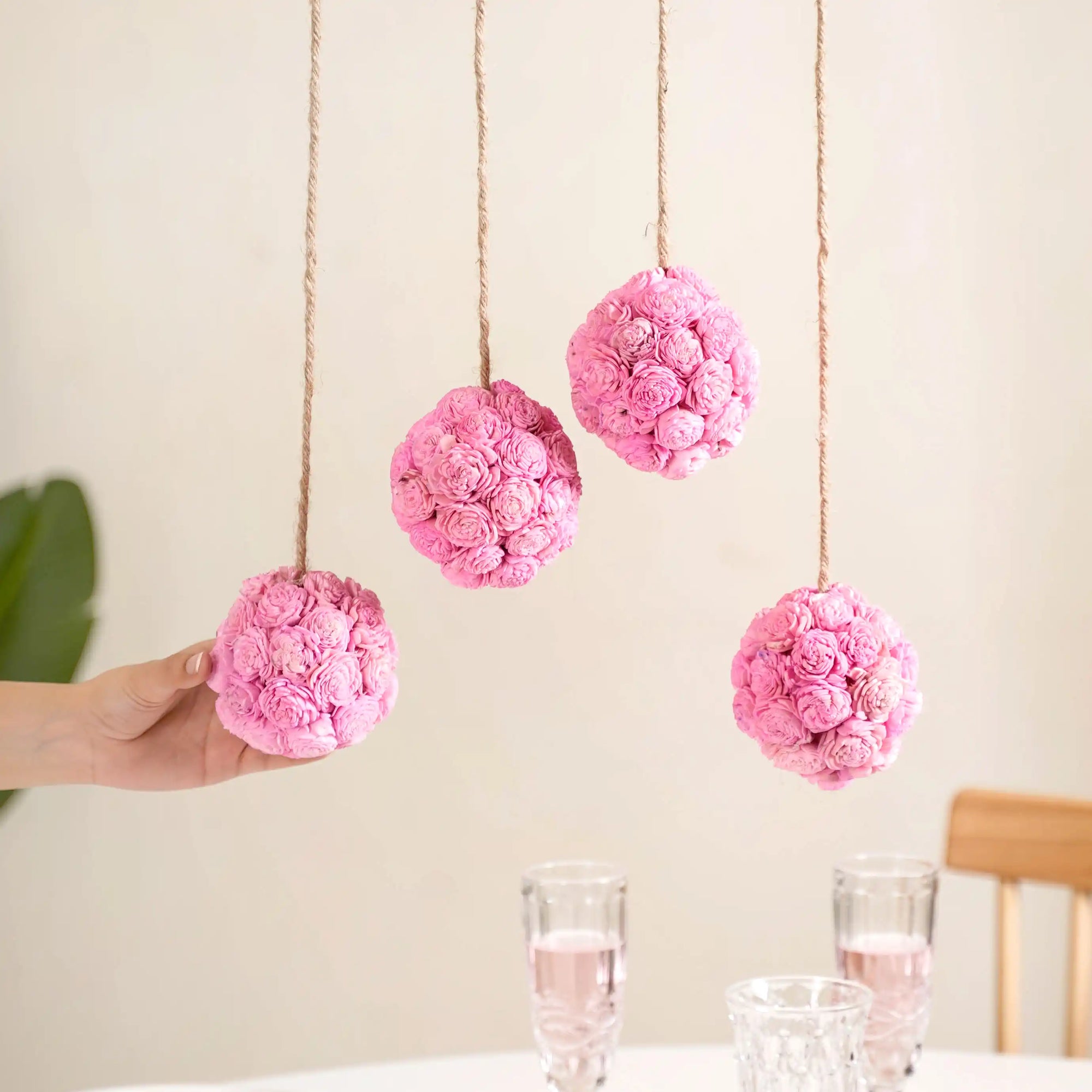 The atmosphere in different rooms of your house can be improved by strategically using these floral ball hangings. With their vivid pink color, they welcome visitors to the entranceway with a warm and pleasant welcome. They bring a splash of color and charm to the living area and help to create a warm and welcoming ambiance. While their adorable design offers cheer to nurseries or children's rooms, they add a sense of romance and tranquillity to bedrooms. They also make for beautiful and dynamic backdrops for family get-togethers in dining rooms. Last but not least, in home offices, these floral accents add life and inspiration to your workplace.