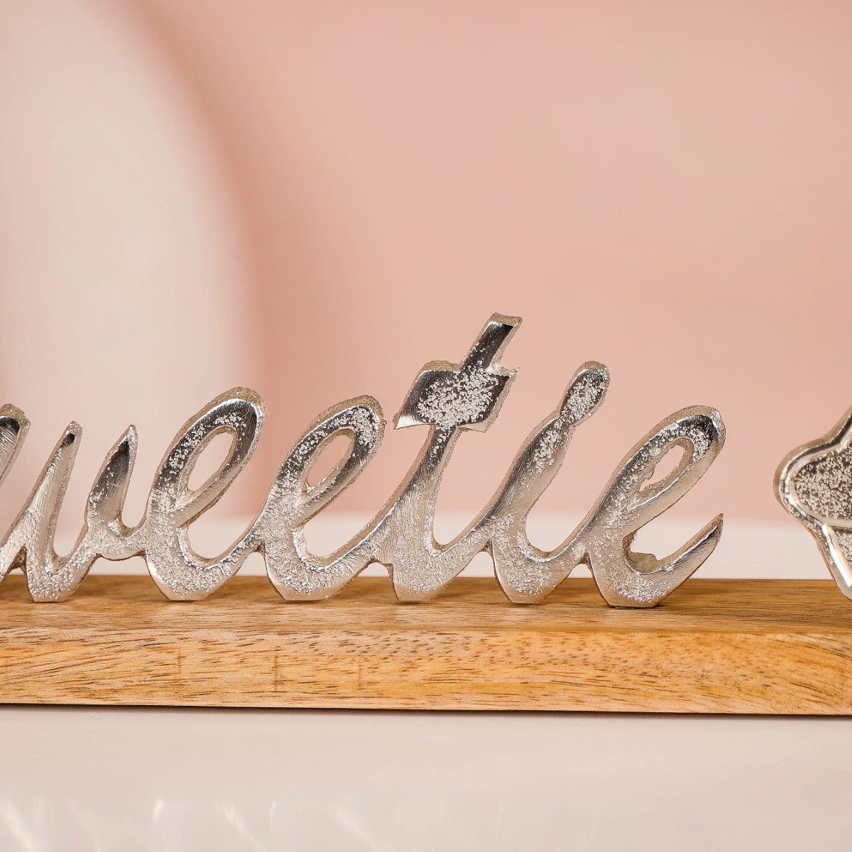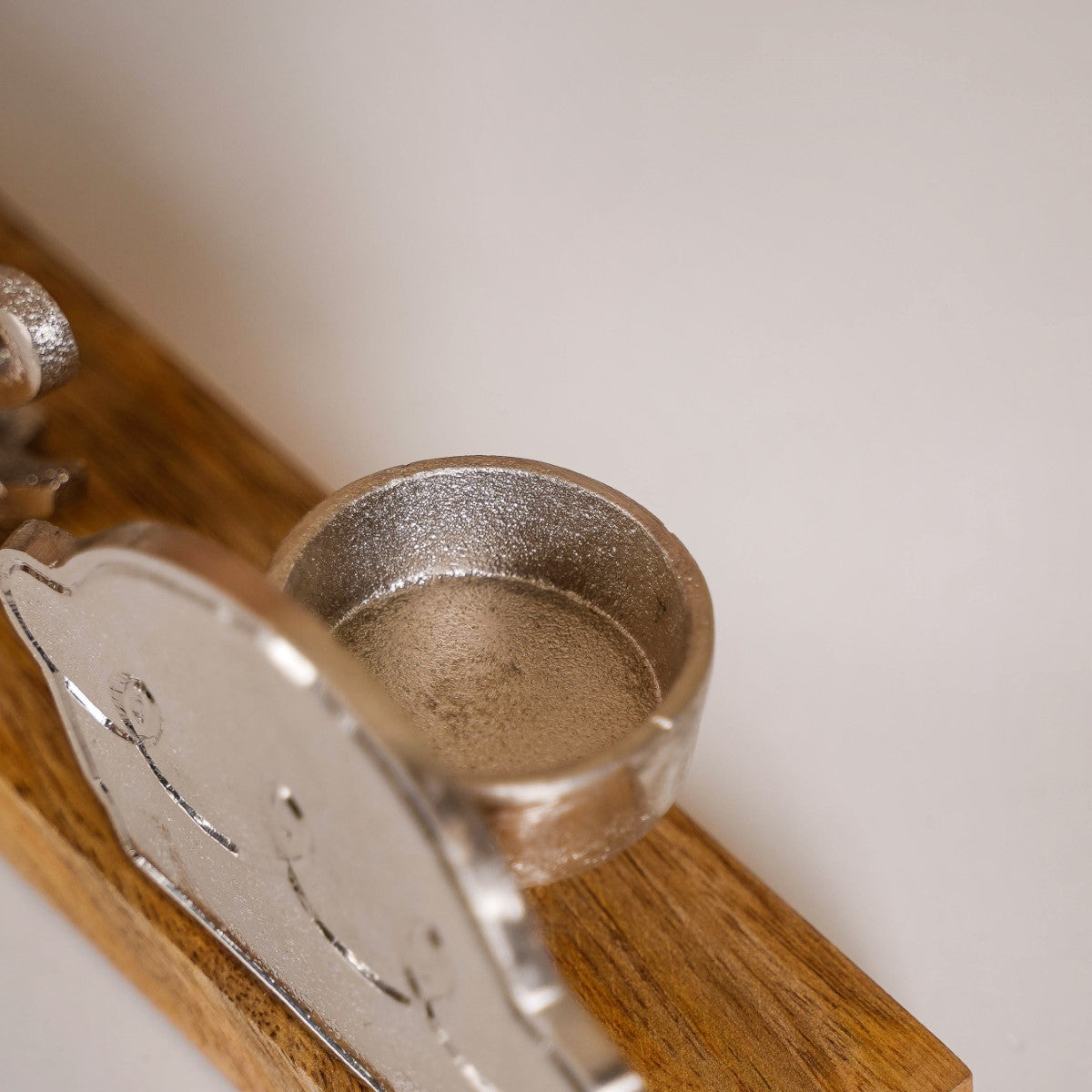 Our tealight holder is a splendid display of exquisite craftsmanship and elegance. The high-sheen silver finish casts a radiant glow, creating an enchanting atmosphere for your Valentine's Day celebrations. The high-quality and sturdy mango wood base, adorned with a unique letters design, adds a charming touch to your decor. Fitted with anti-skid furniture pads, this holder ensures both stability and ease of maintenance. With two tealight holders, it becomes a beacon of love, perfect for illuminating your romantic moments. Thoughtful in design and ideal for gifting, this piece effortlessly combines beauty and functionality, making it a must-have for your Valentine's Day festivities.