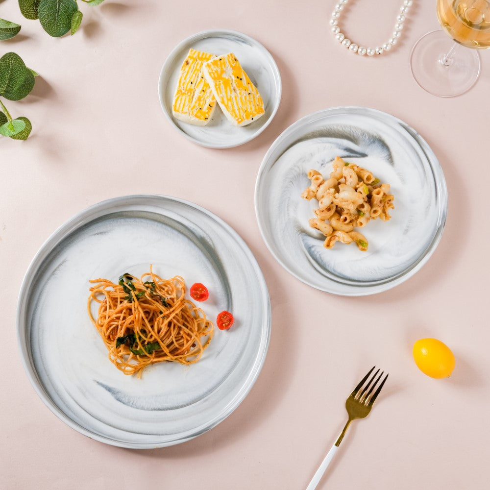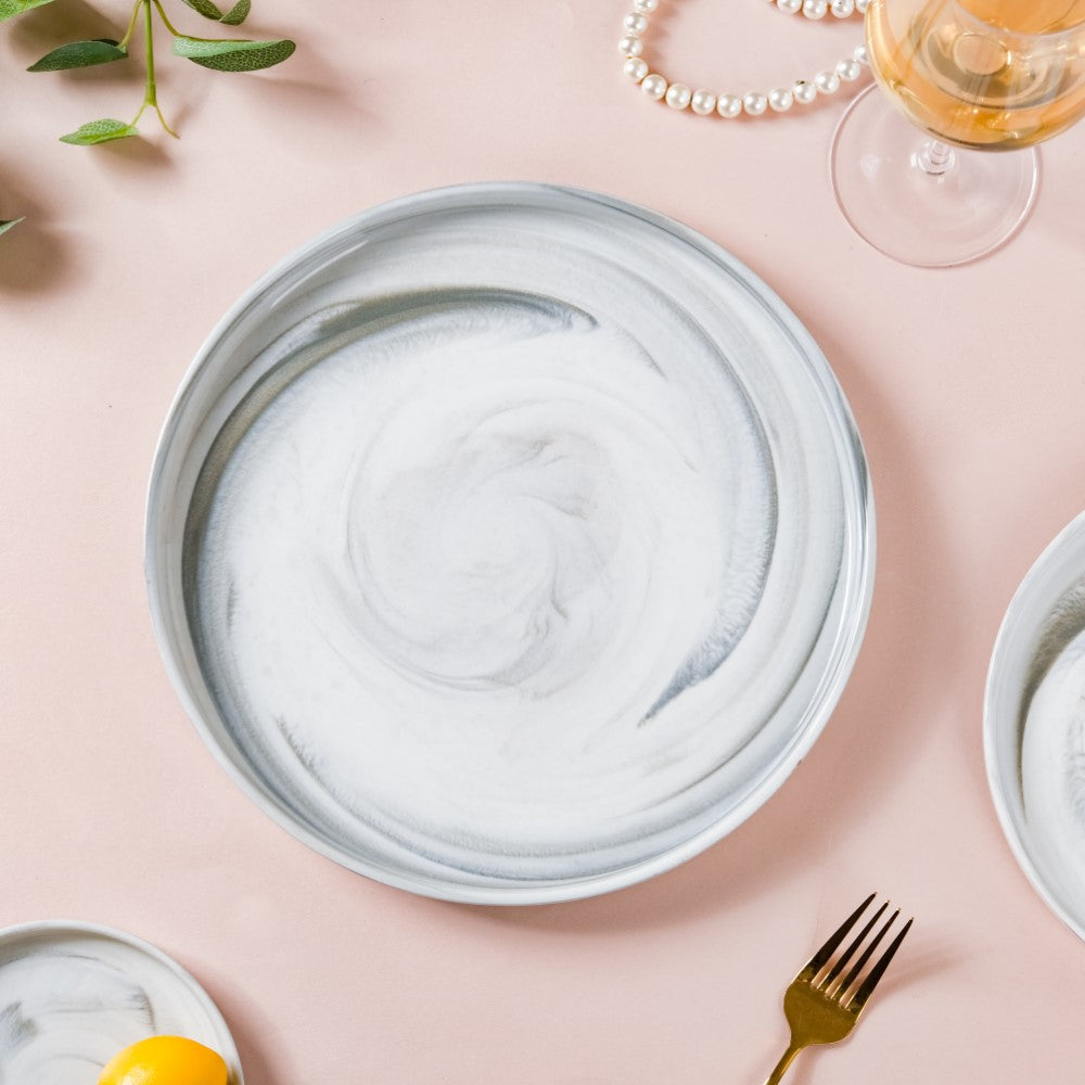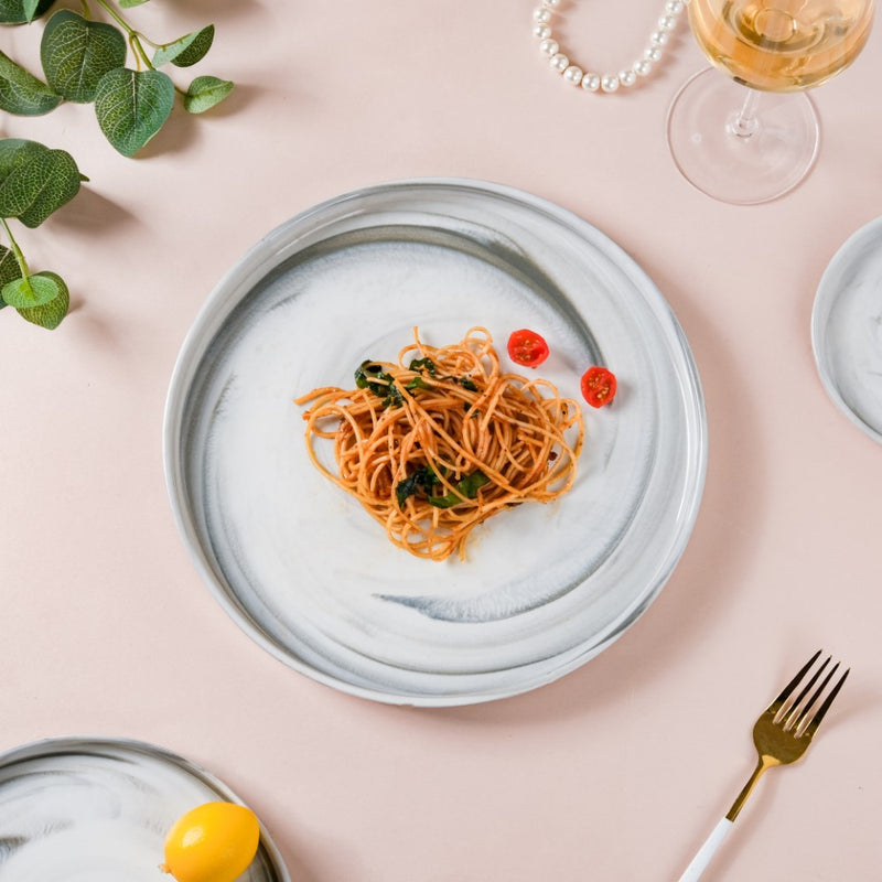Set the table tastefully and fashionably with the ceramic swirl patterned dinner plate. The stoneware ceramic dinner plate features with a slight depth which makes them apt for being used as pasta plates, noodle plates as well as for serving rice and other dishes with gravies. The high-quality dinner plate adds a modern contemporary element to the table setup.