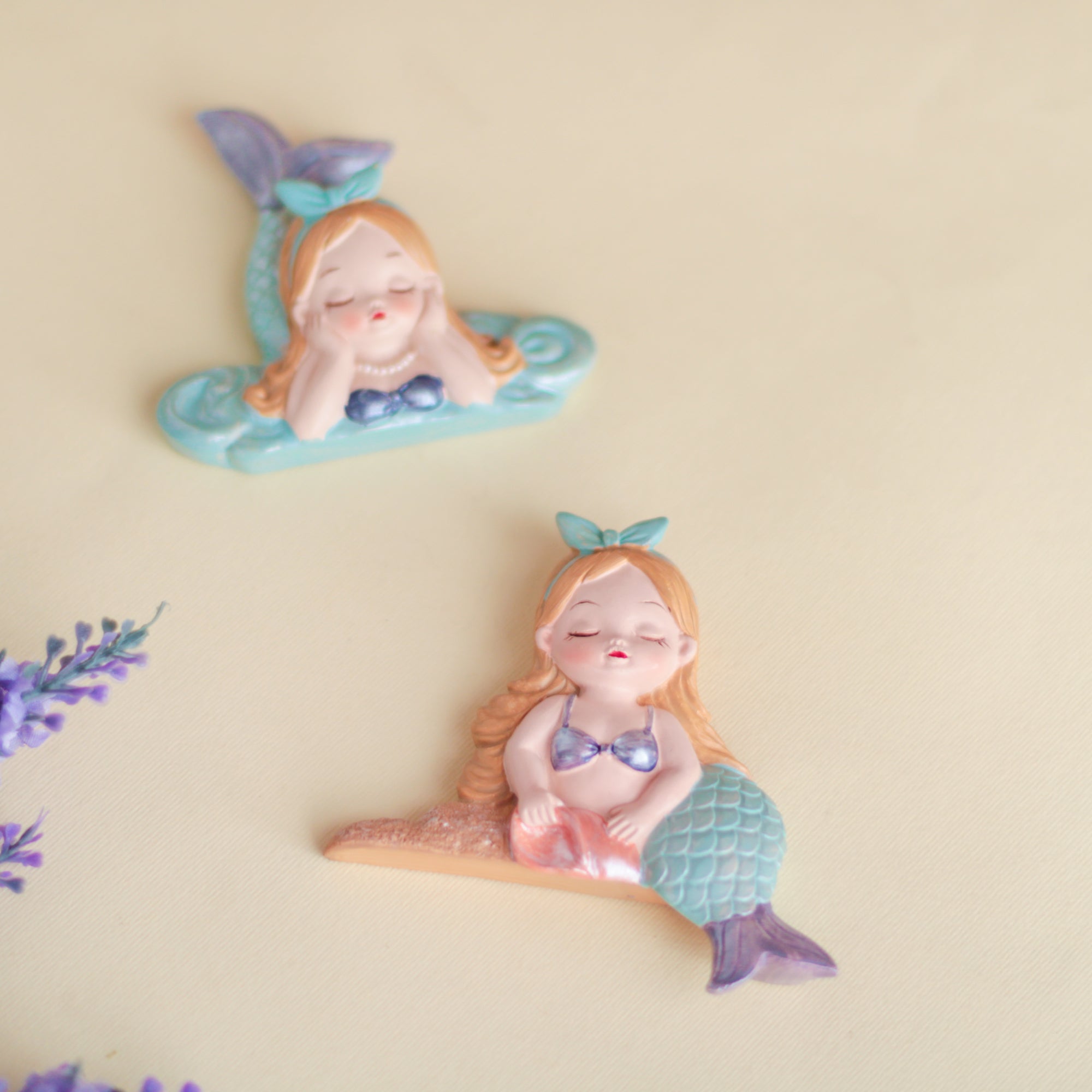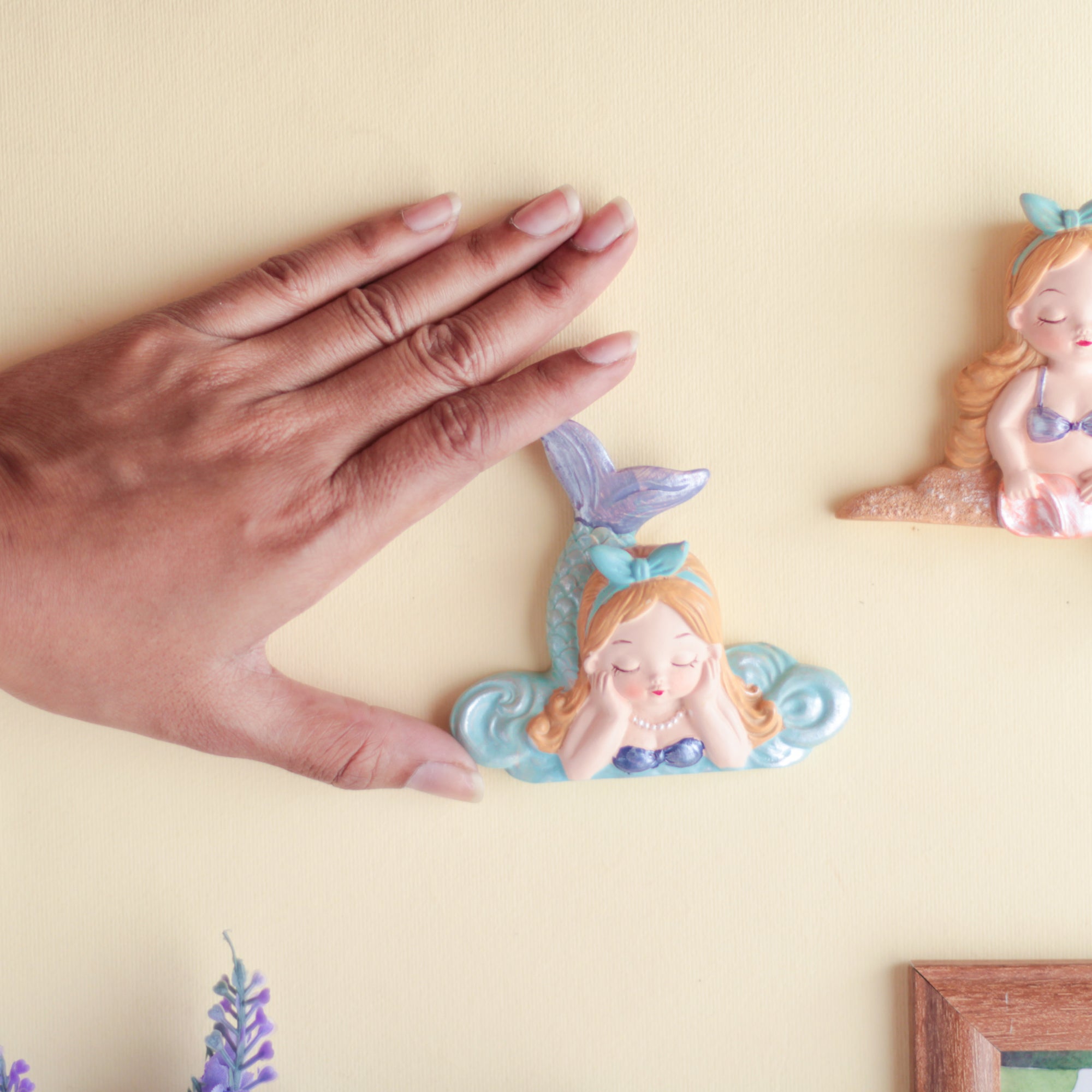 Switch board stickers in the design of sleeping mermaids that are made in resin. The switchboard stickers can add element to a boring wall and add a touch of art to the switch panel. The mermaid stickers are best suited for the kids room that can also be stuck on to a wall board or used as a showpiece.