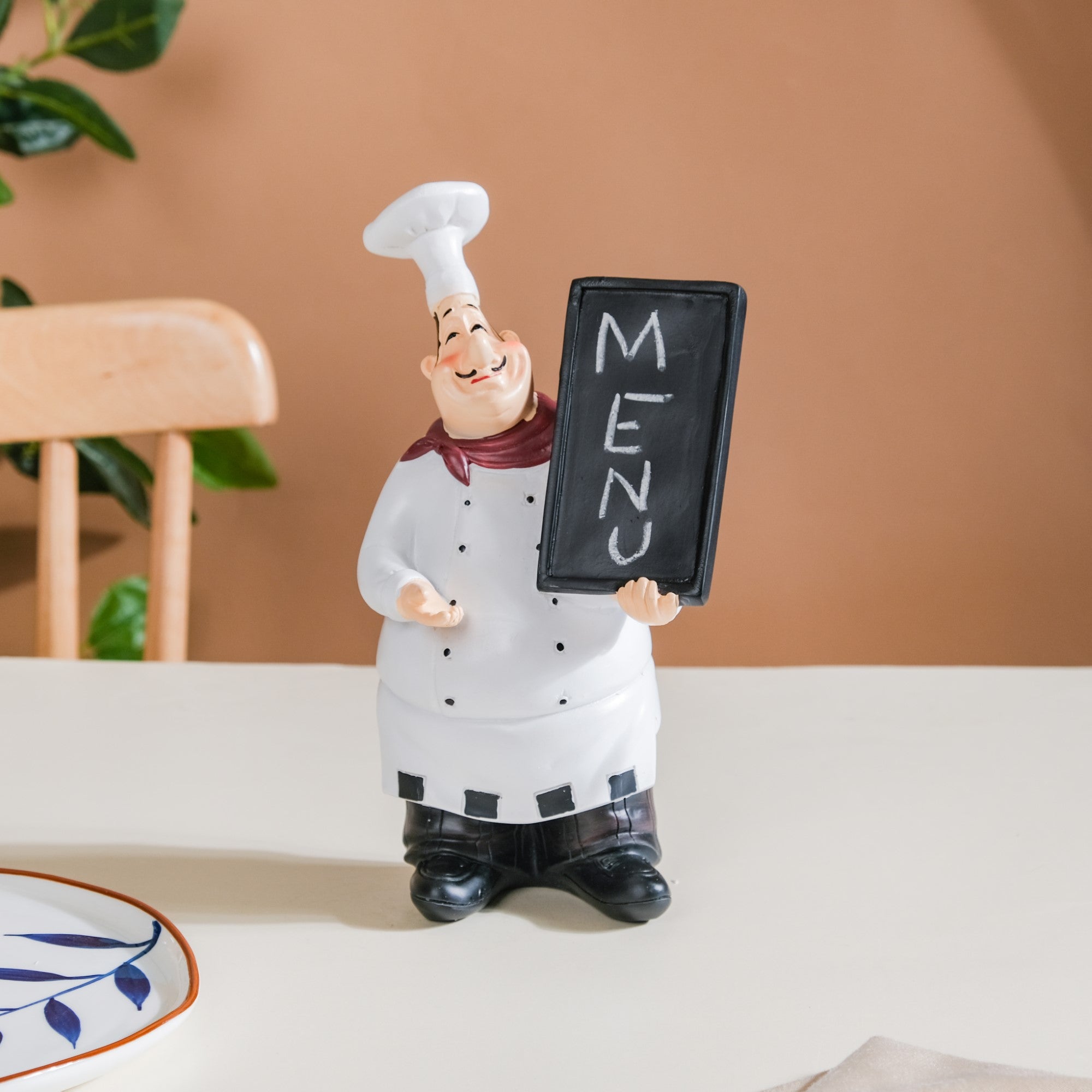 Chefs are the ones who serve us the delights of paradise with their own twist and magic. So, having a little chef at home will undoubtedly enhance the dining experience. Our table chef decor collection comes with innovative and quirky designs to add a fun and charming element to your existing kitchen or table decor setup. Sculpted from resin, the chef decor figurines from our collection can be placed on a kitchen shelf as well as the dining table, to create a pleasant ambience in the presence of friends and family.