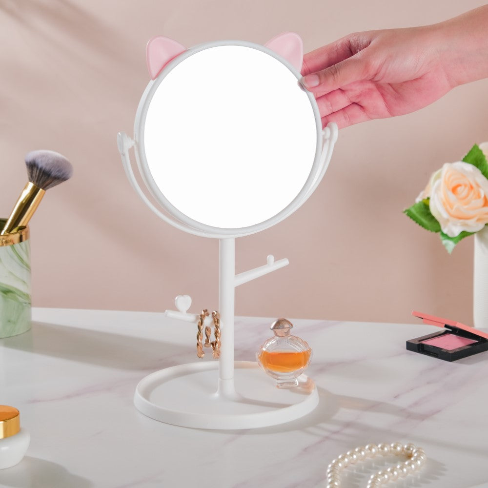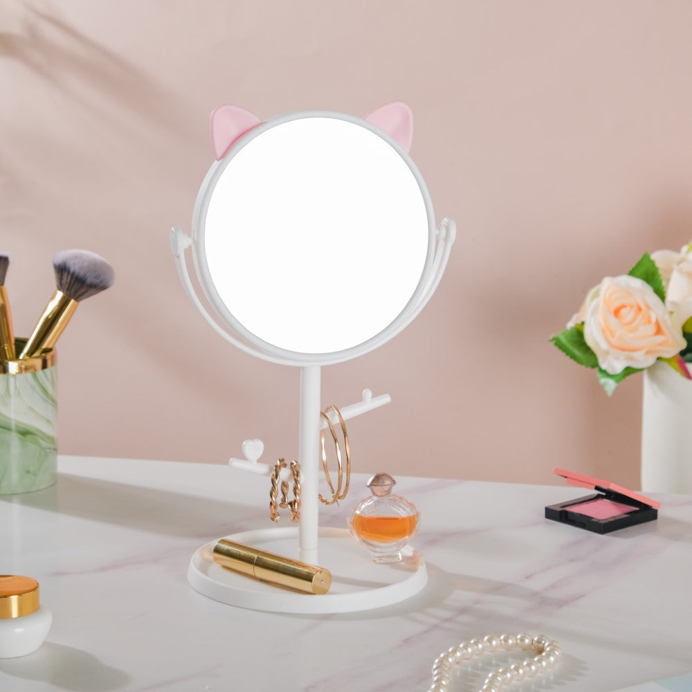 Tabletop Vanity Cat Mirror With Organizer White