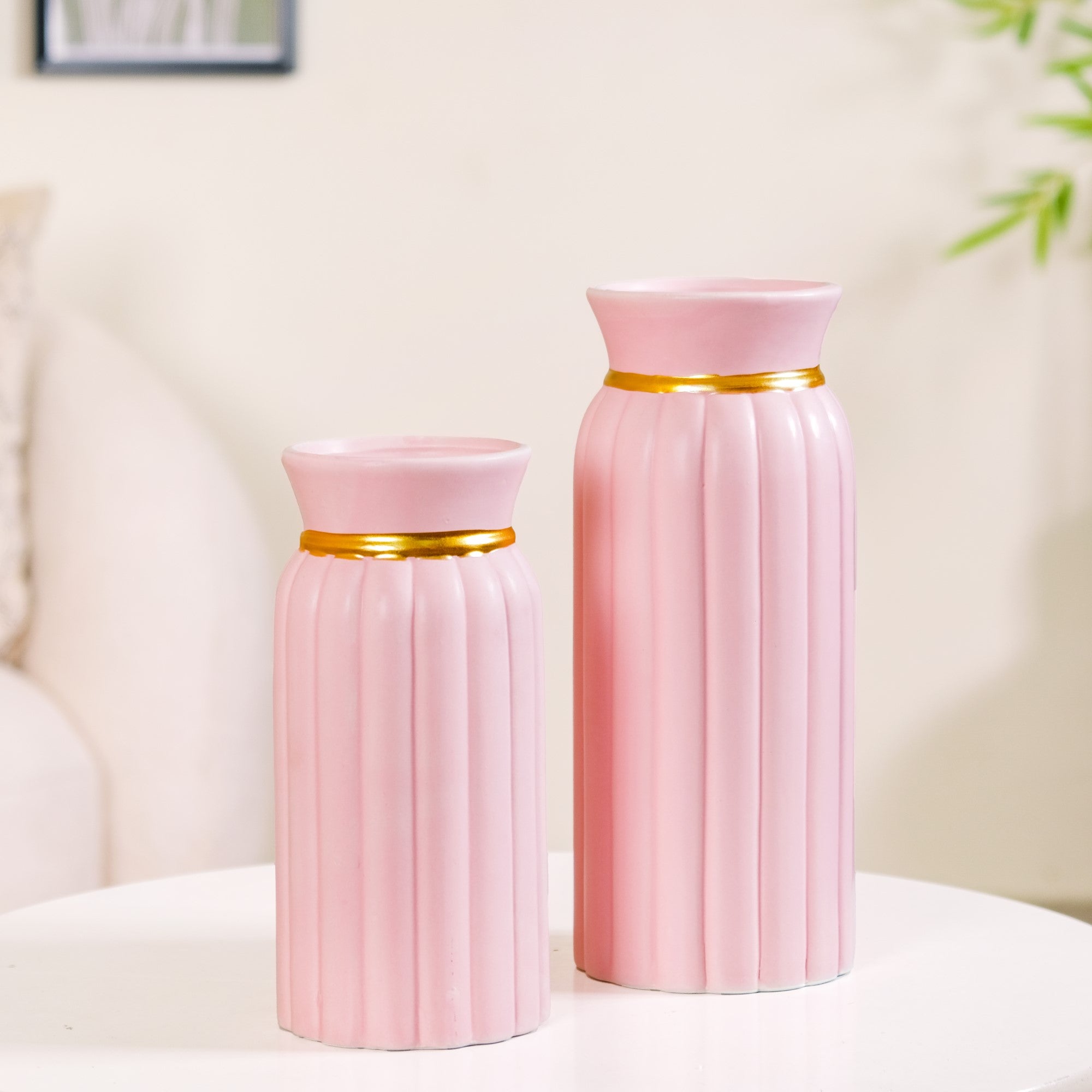 Yes, the versatile design of this vase allows it to seamlessly complement a variety of decor styles, including both modern and traditional themes. Its subtle pink shade, ribbed textures, and golden embellishment make it an adaptable and charming accent, enhancing the aesthetic of any space with timeless elegance.