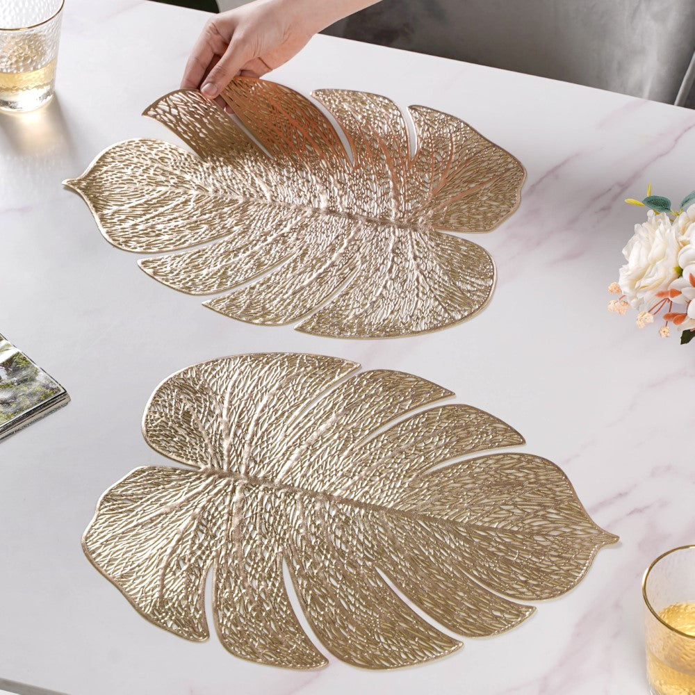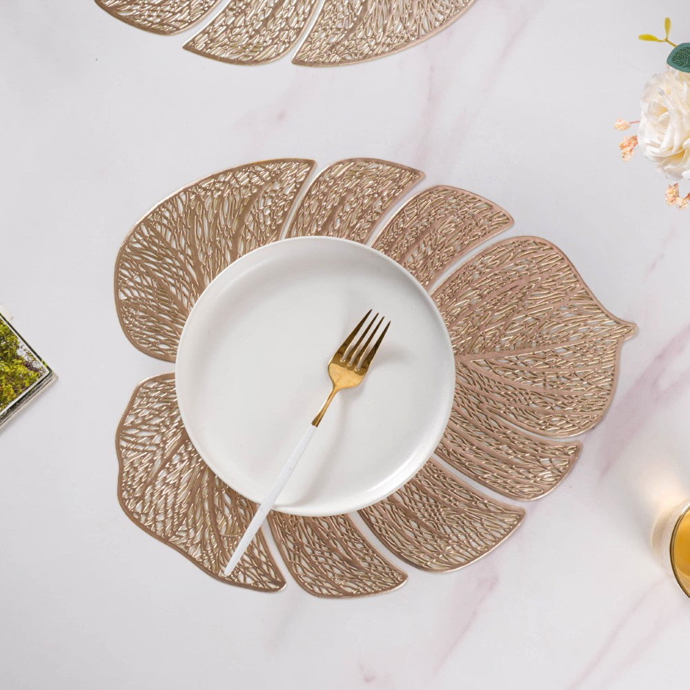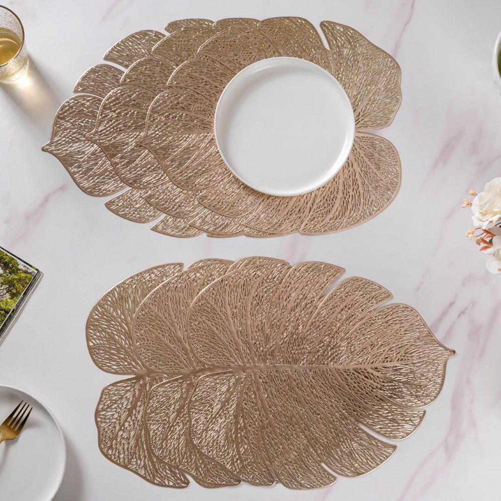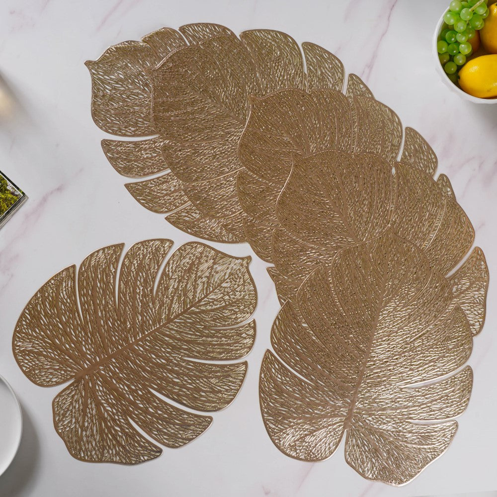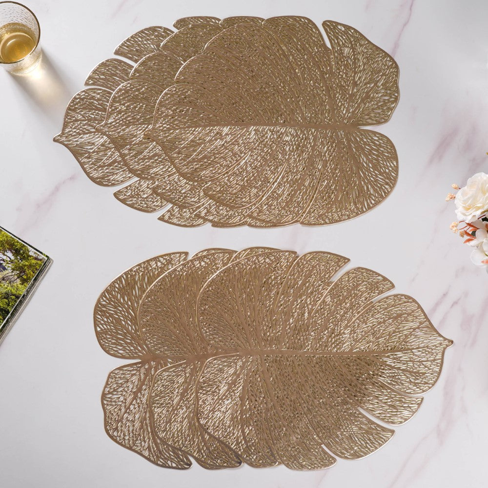 Sumana reddy Taro Leaves Placemat Set of 6 Gold 15x12 Inch
