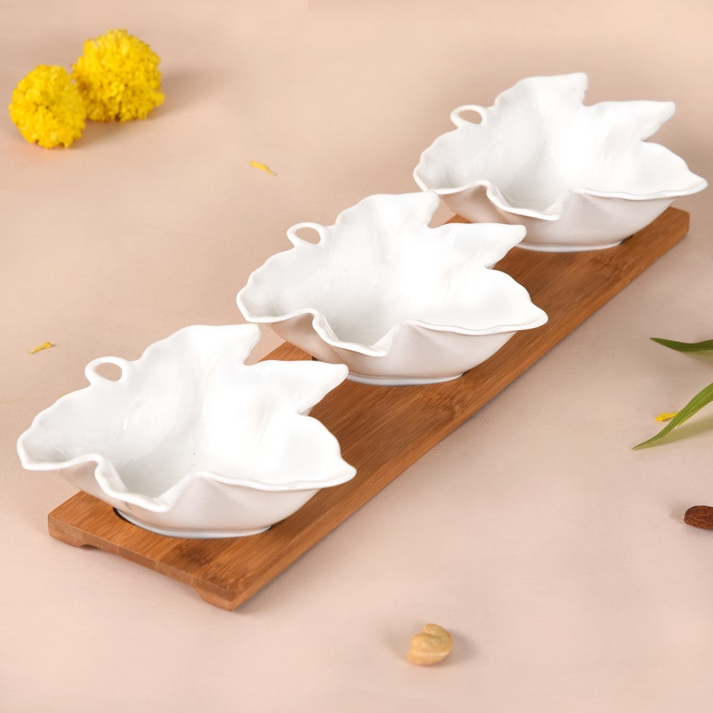 Set Of 3 Maple Leaf Ceramic Bowls With Tray 200ml |