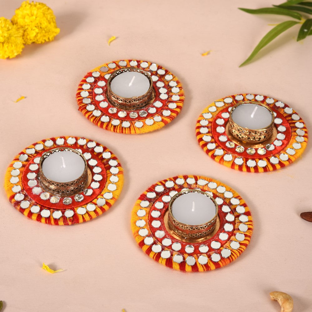 Tealight Candle Holders With Thread And Mirrorwork Set Of 4 |